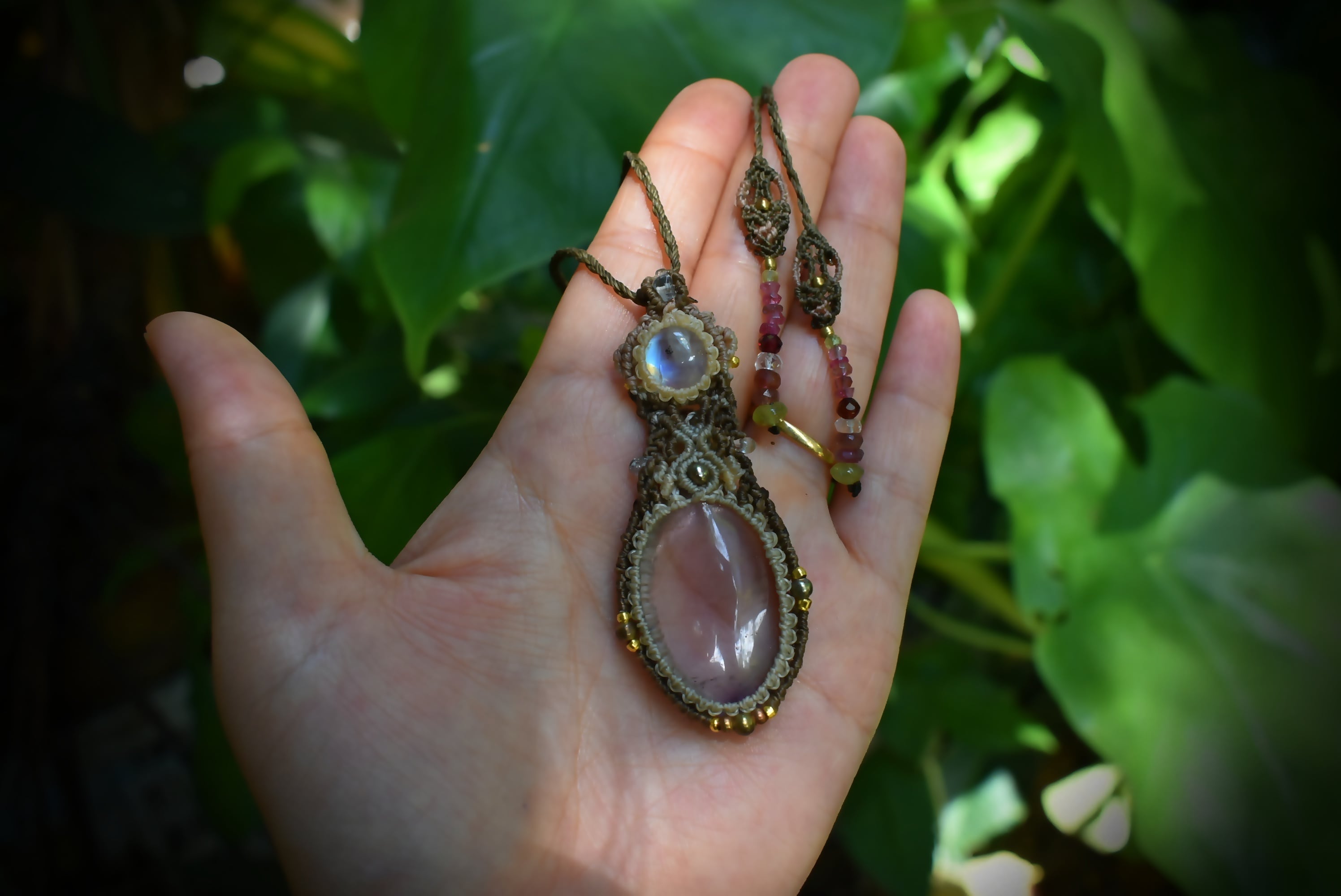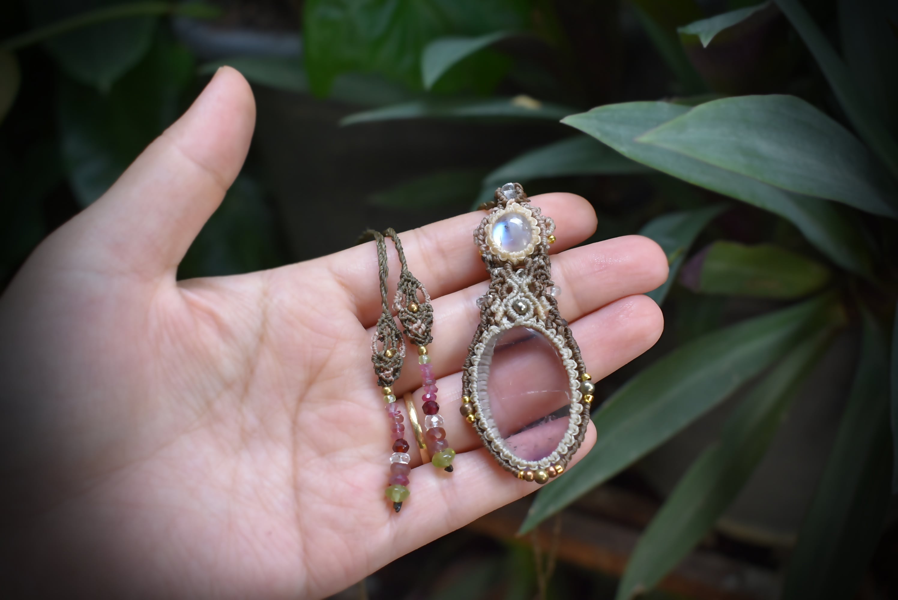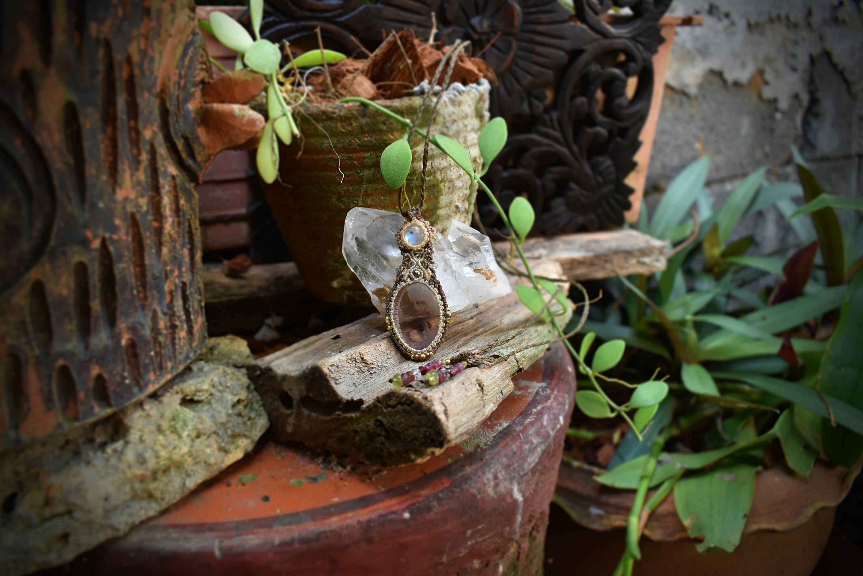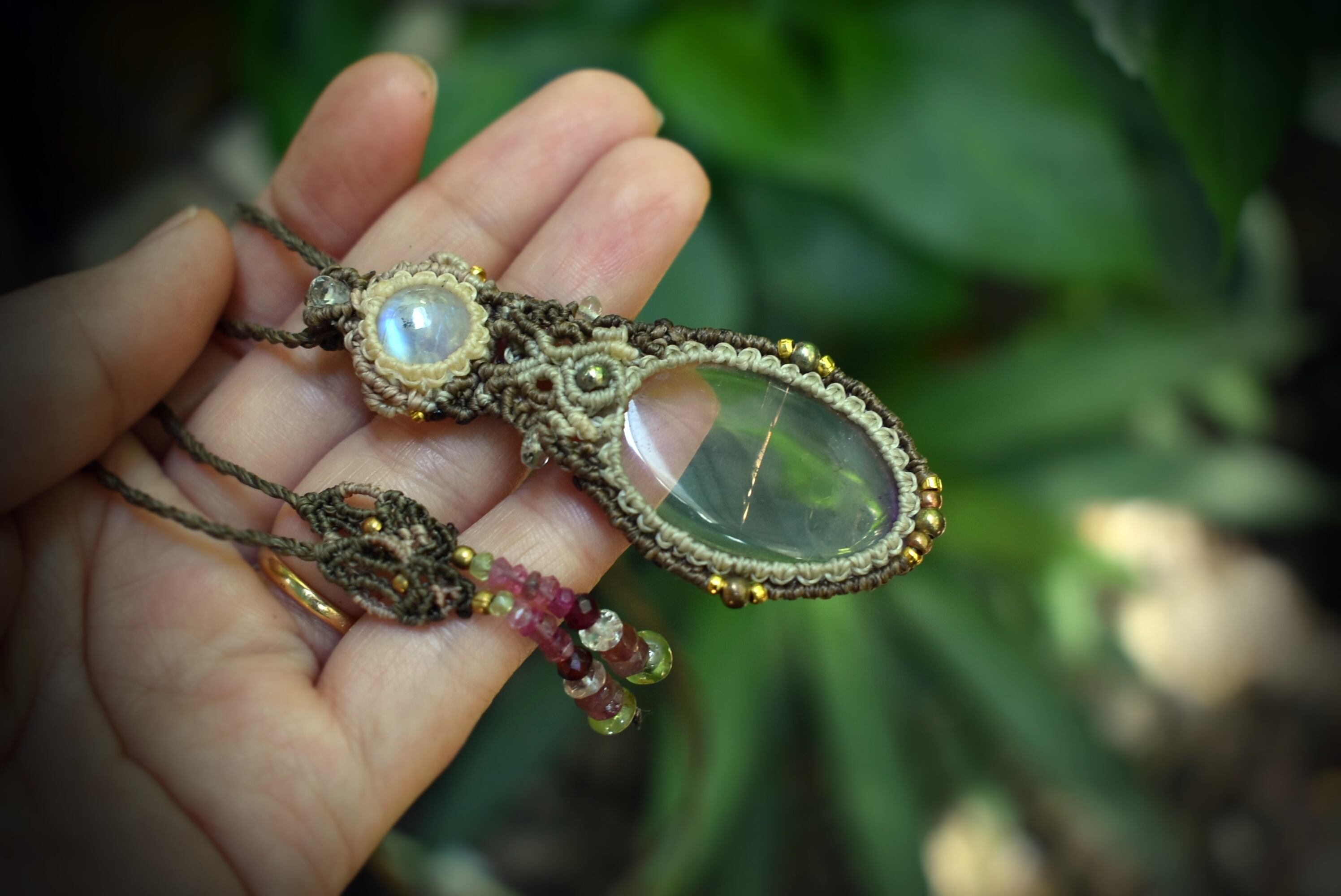 虹と透明感★艶めくアメトリンとムーンストーン マクラメペンダントmoon002