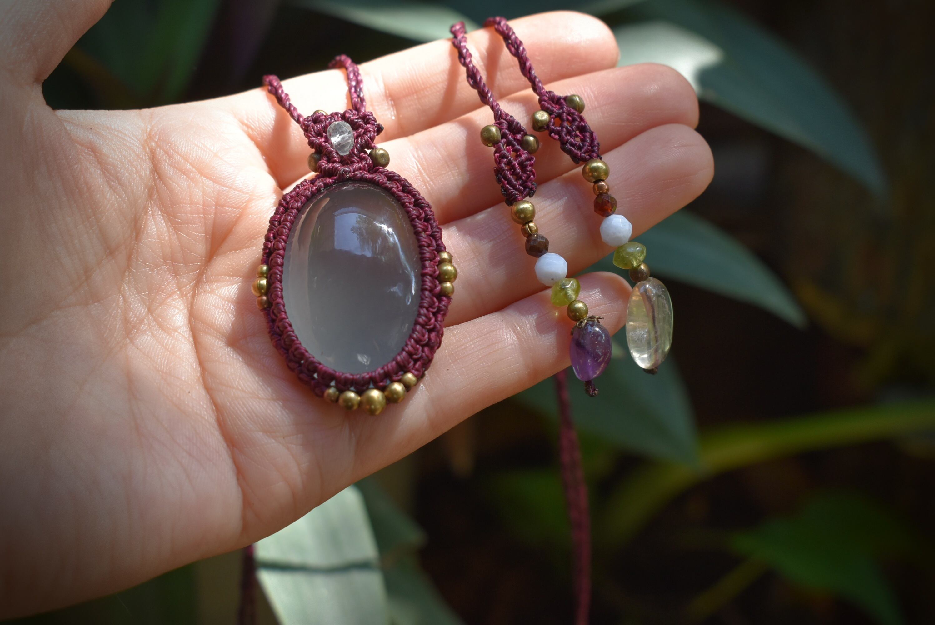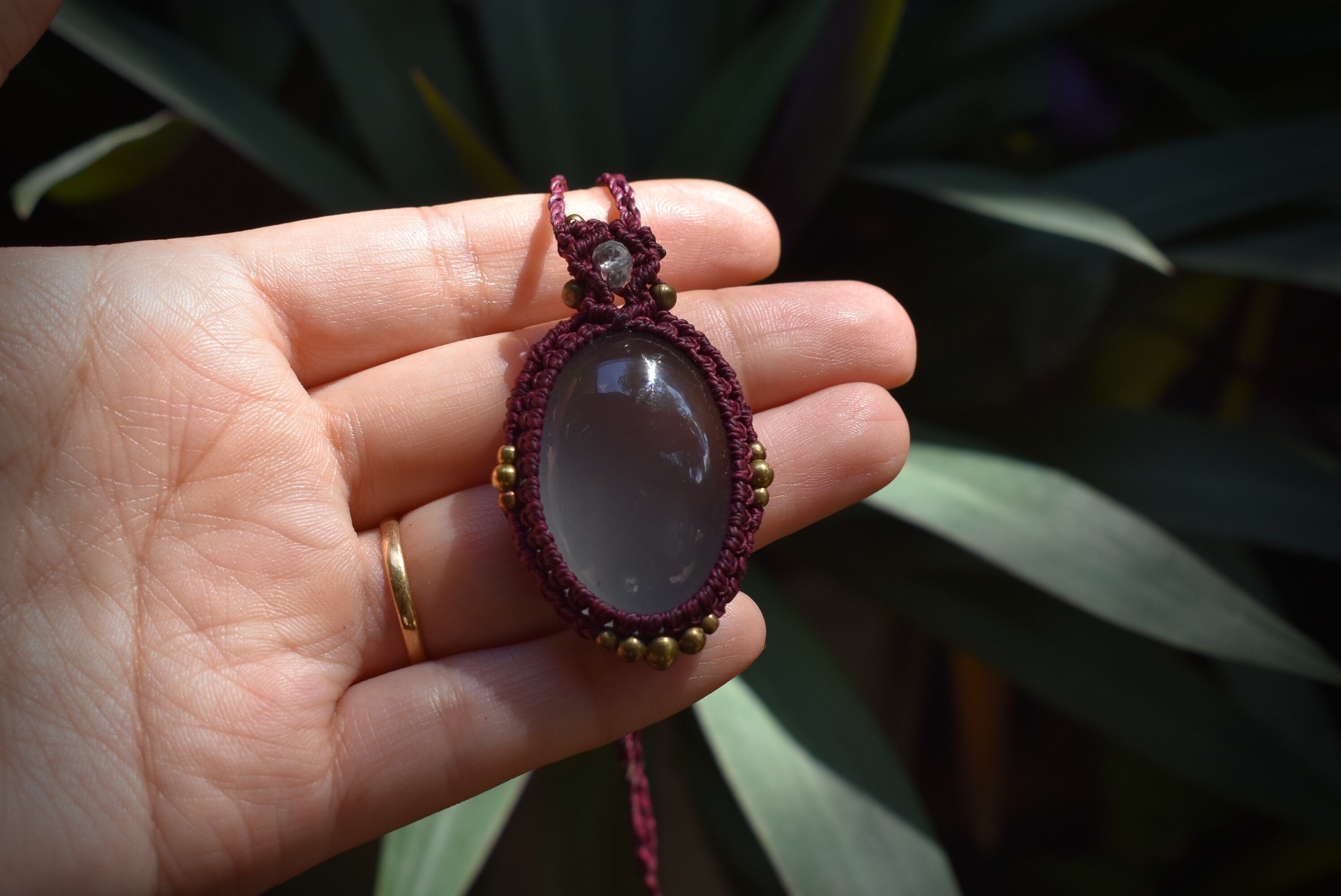 ブラックスモーキー★ガーデンクォーツ マクラメペンダントgarm072