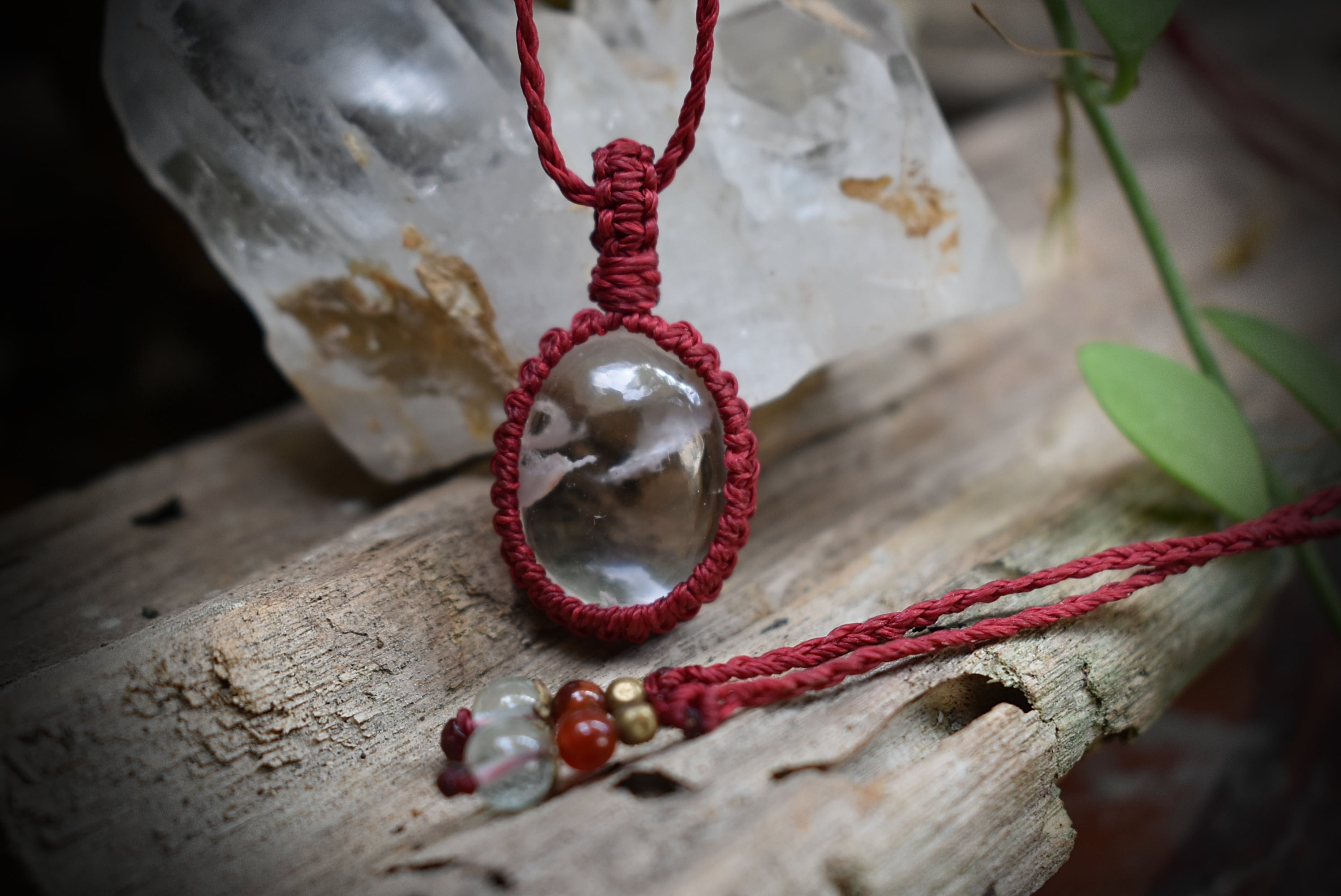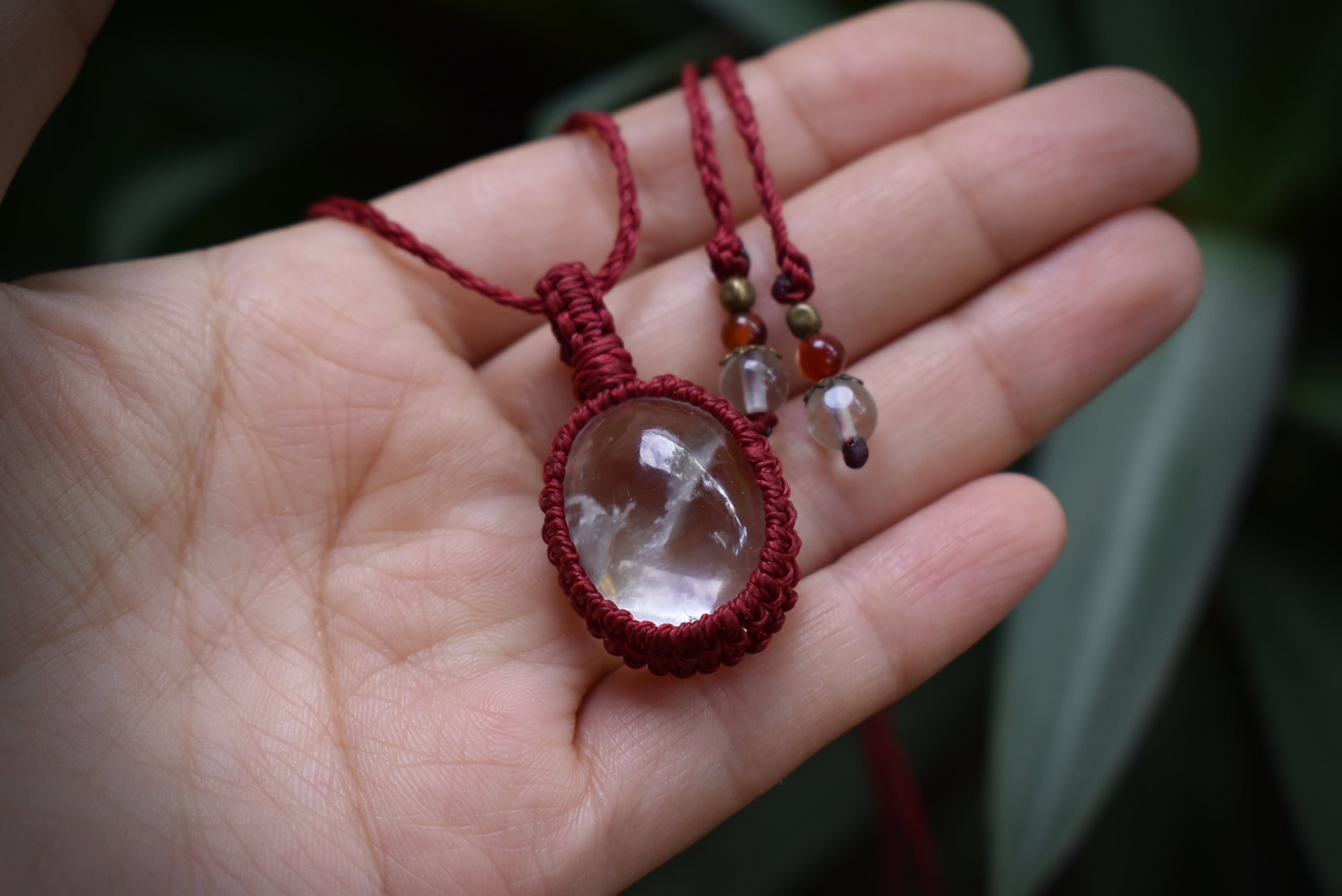 白い奇跡のライン★minホワイトiガーデンクォーツ シンプルマクラメペンダント