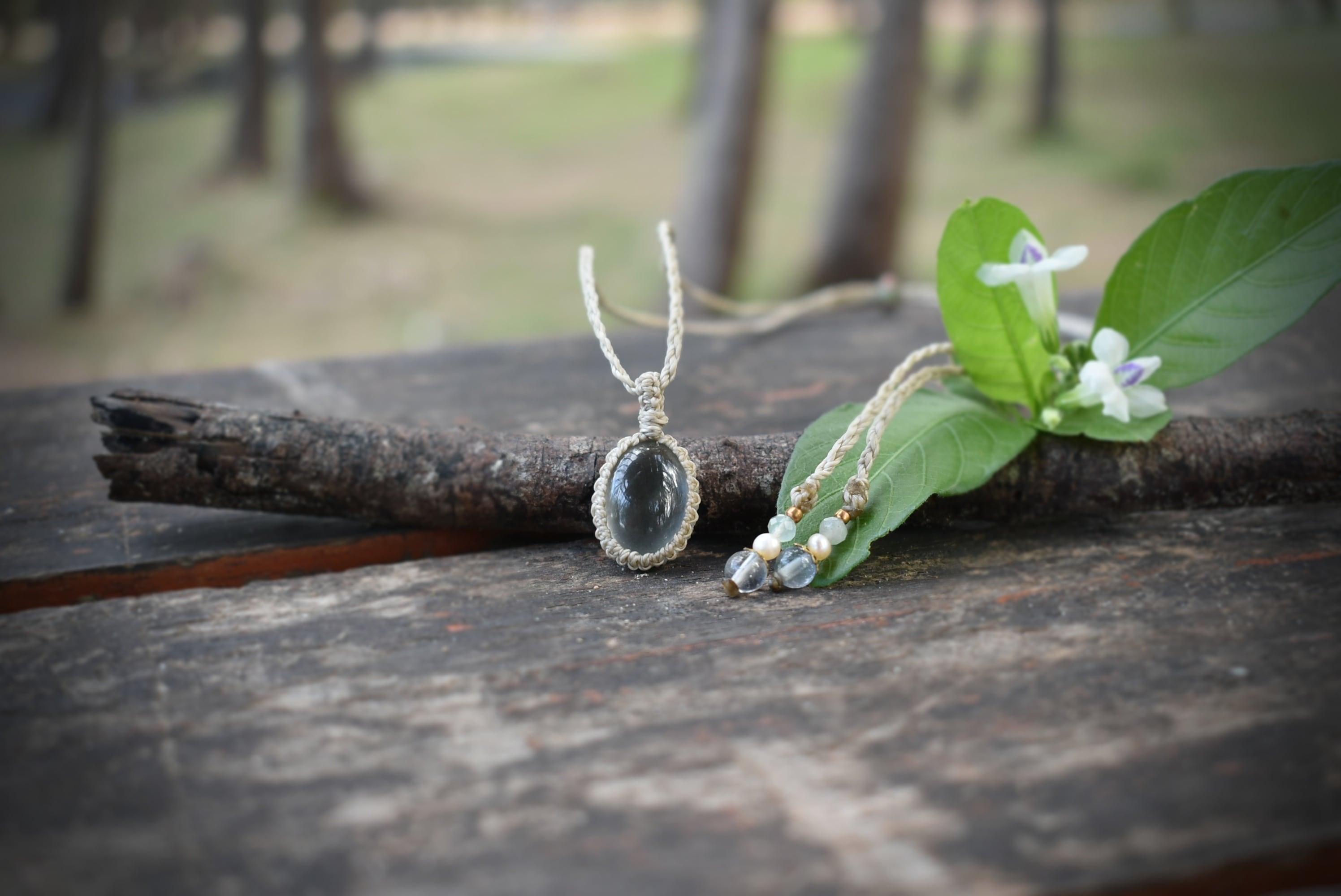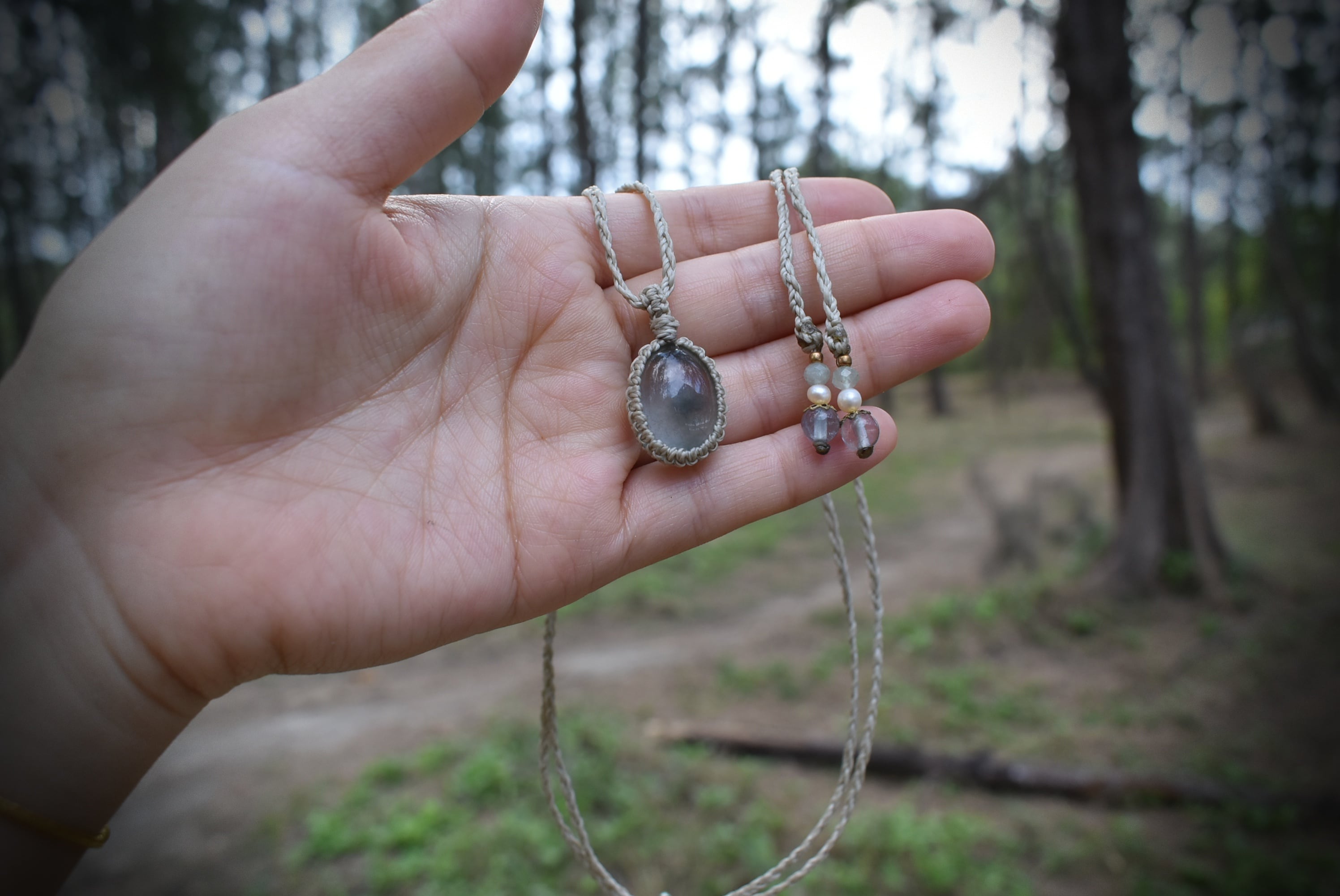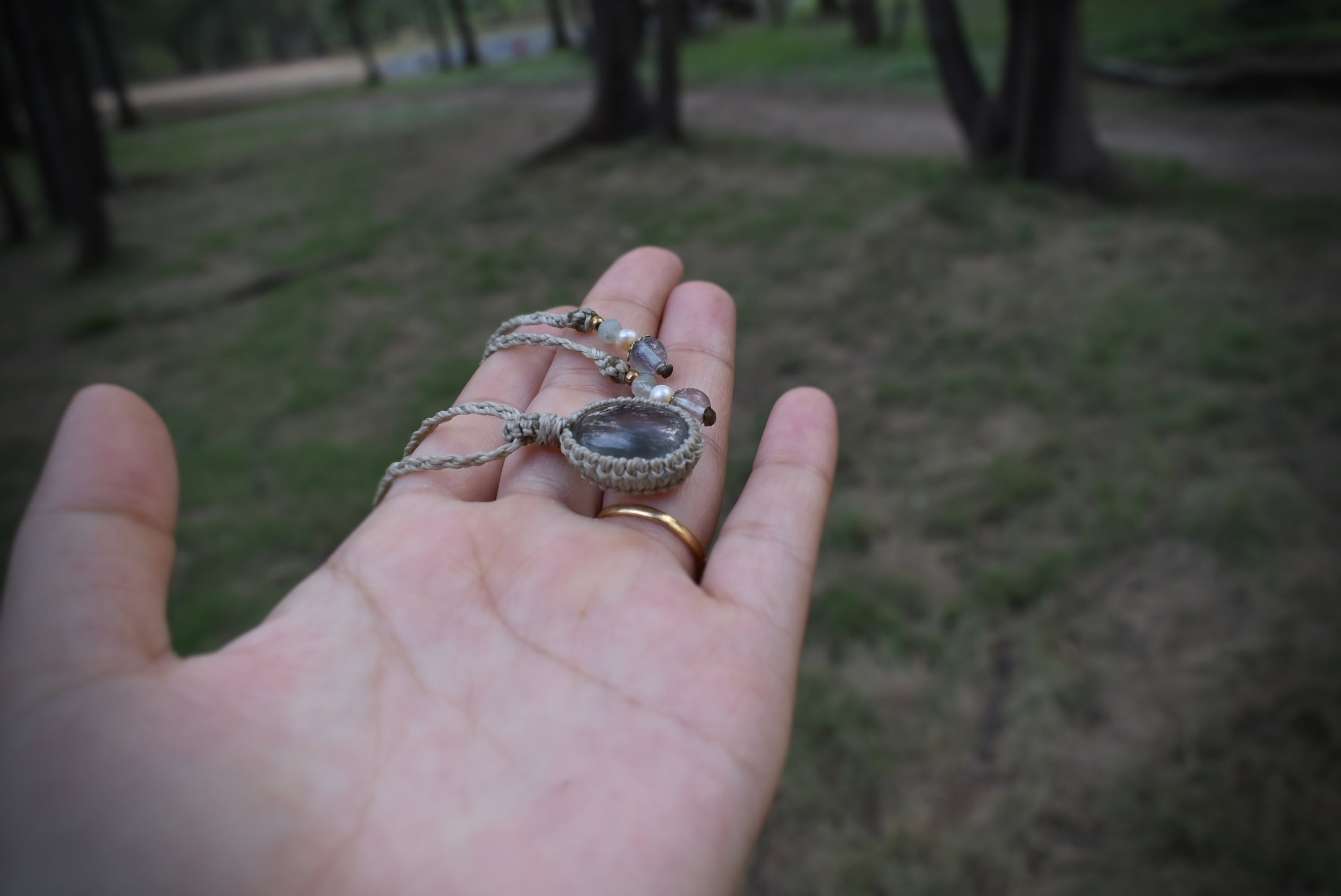 この石をシンプルにマクラメ編み装飾を施し、身につけられるようペンダントに仕上げました。