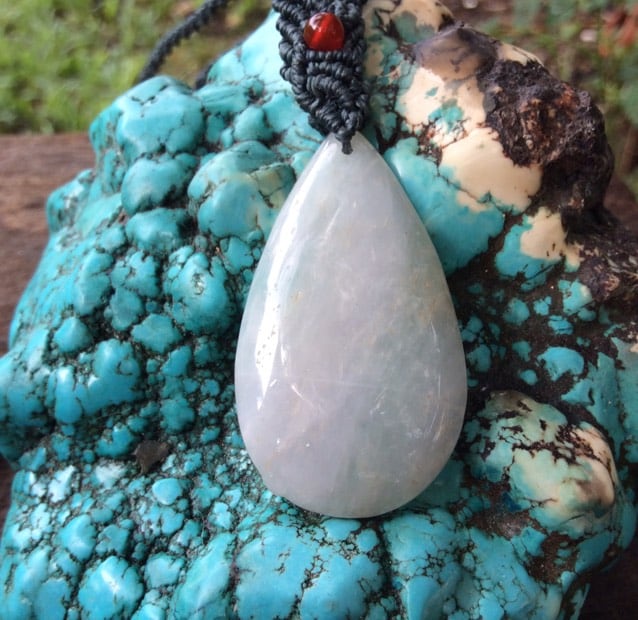 薄い色の翡翠(ジェイド)を体にフィットするようにペンダントにしました。