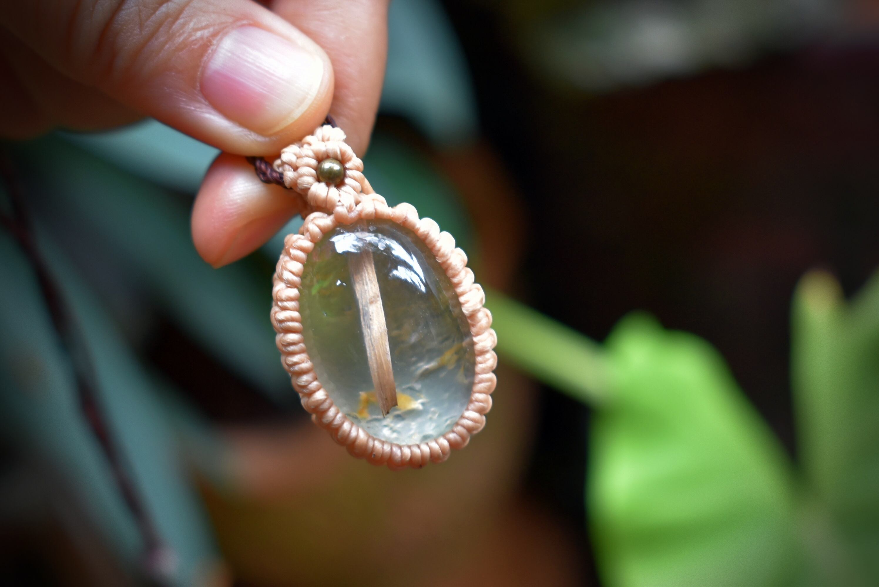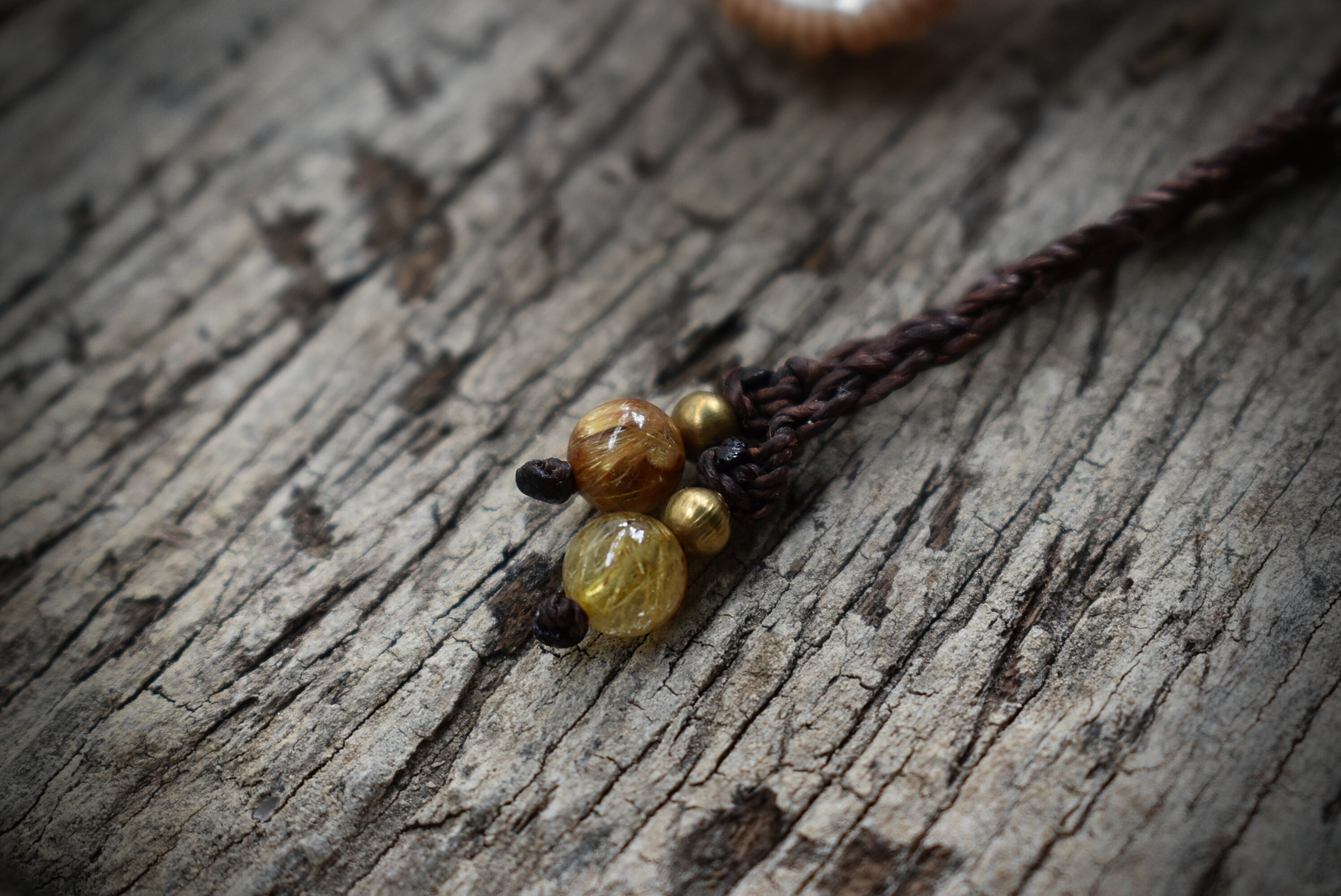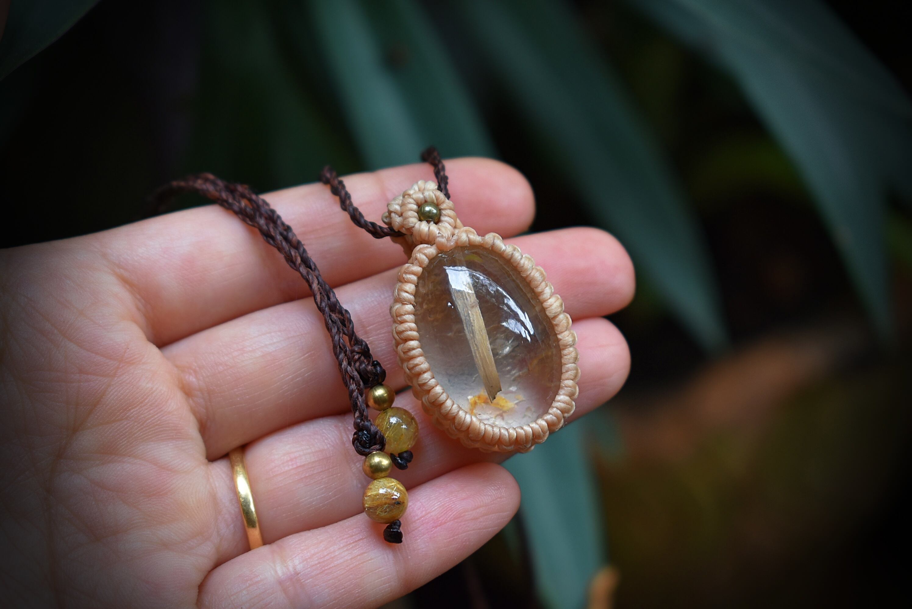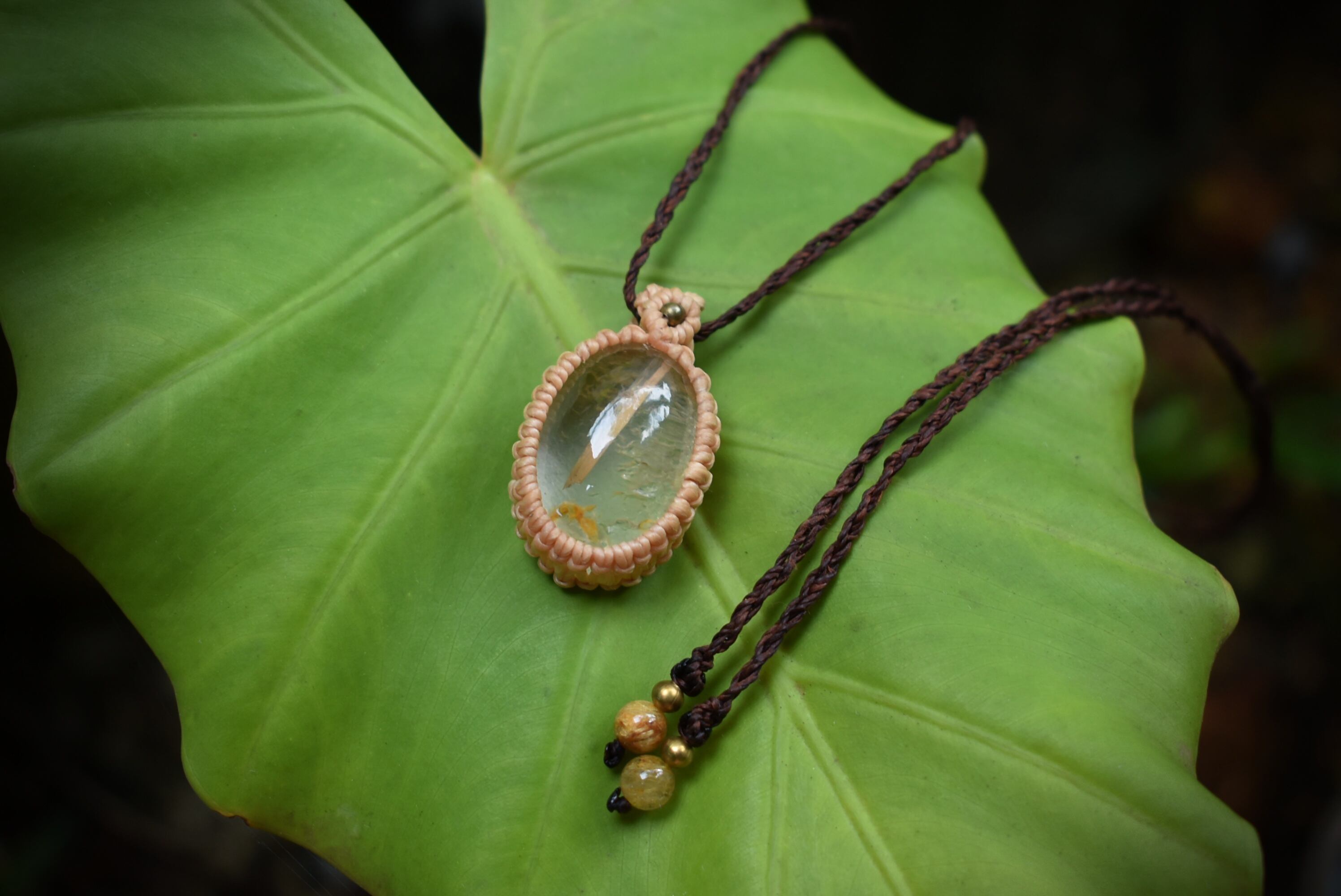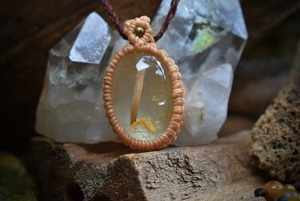 元気と金運の石★イエローガーデンルチル水晶 マクラメペンダントgarm058