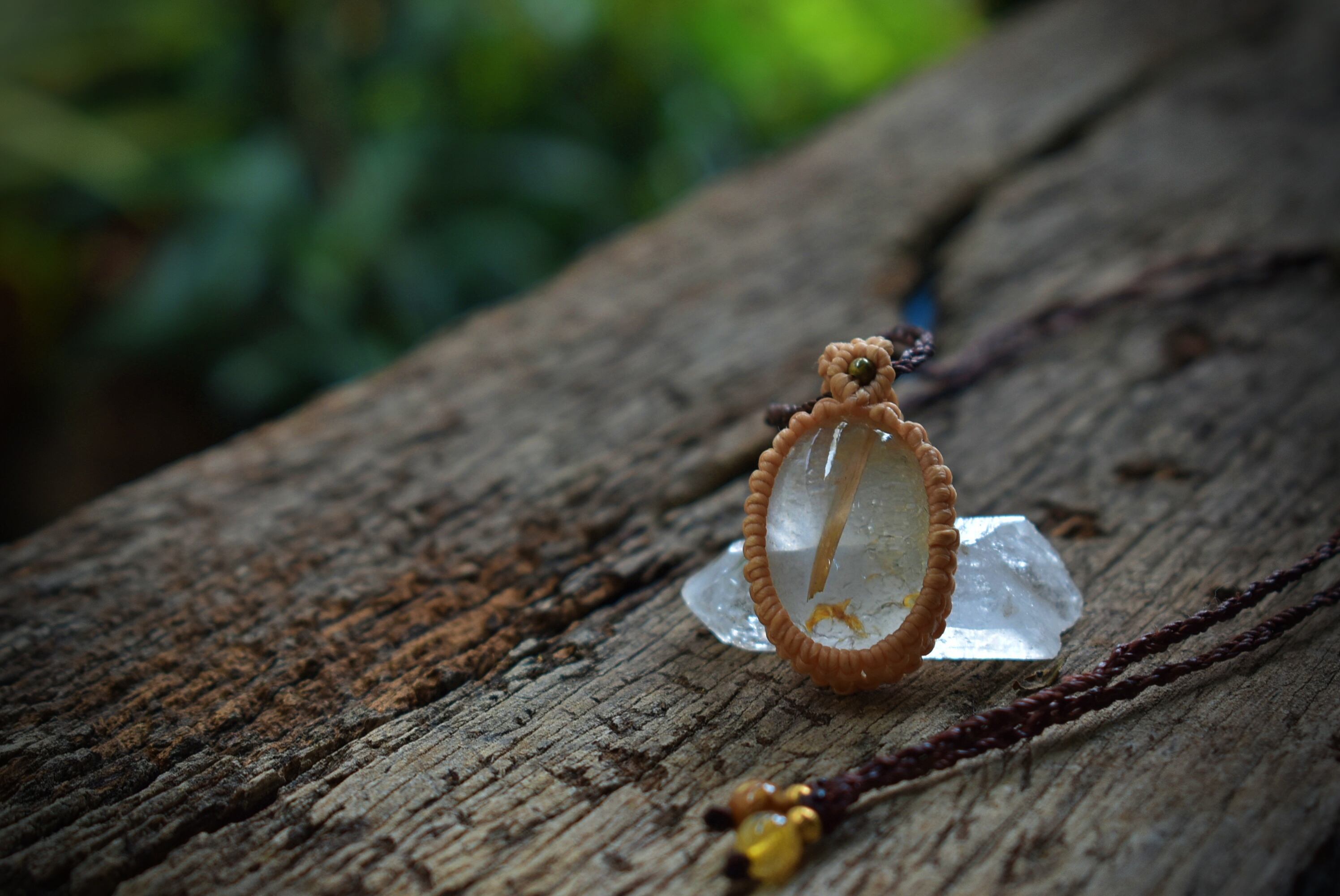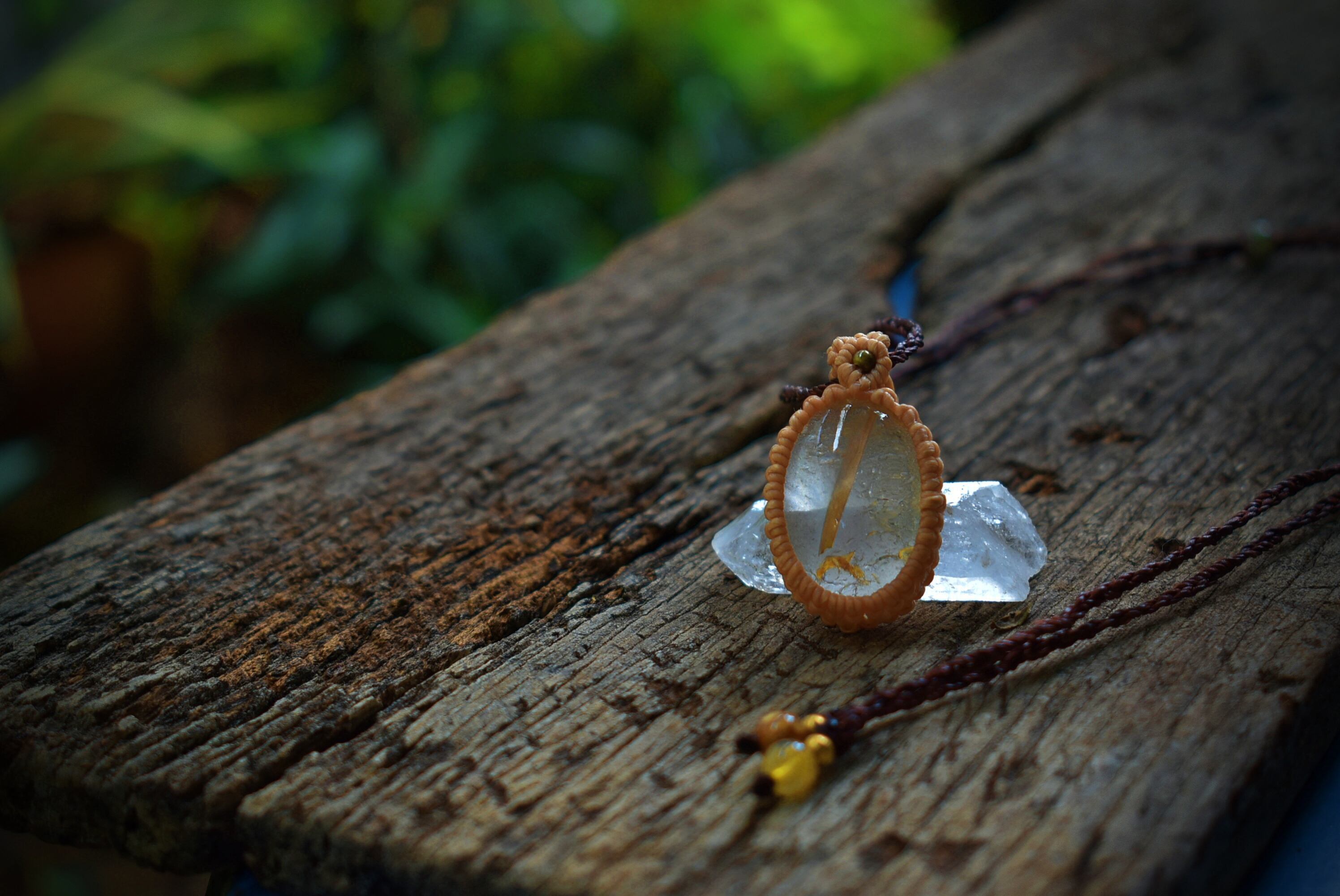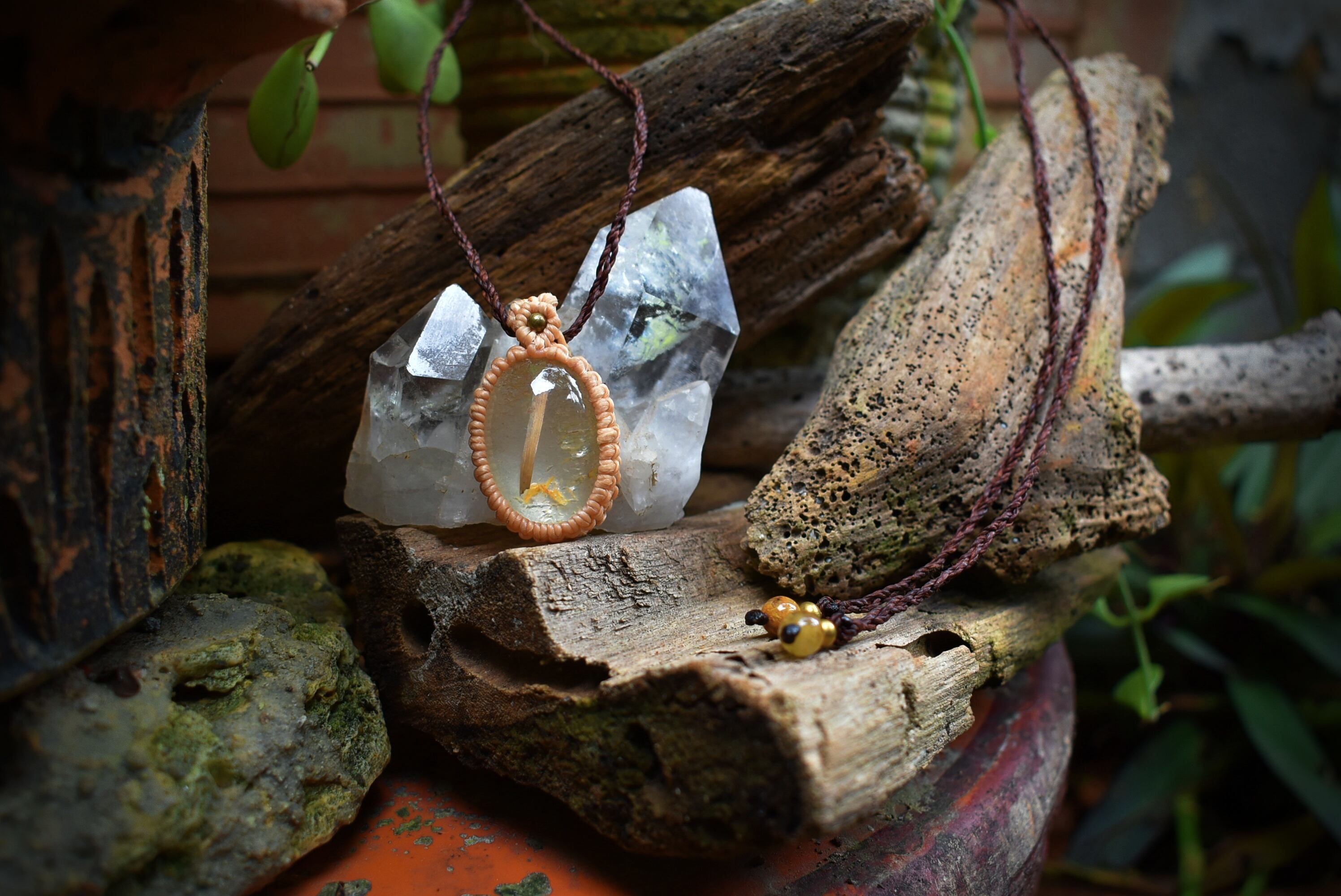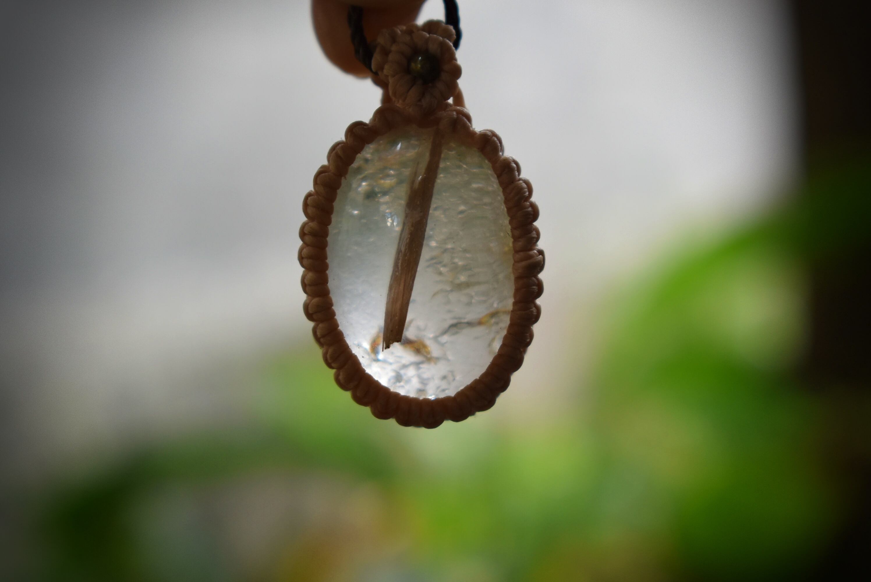 元気と金運の石★イエローガーデンルチル水晶 マクラメペンダントgarm058