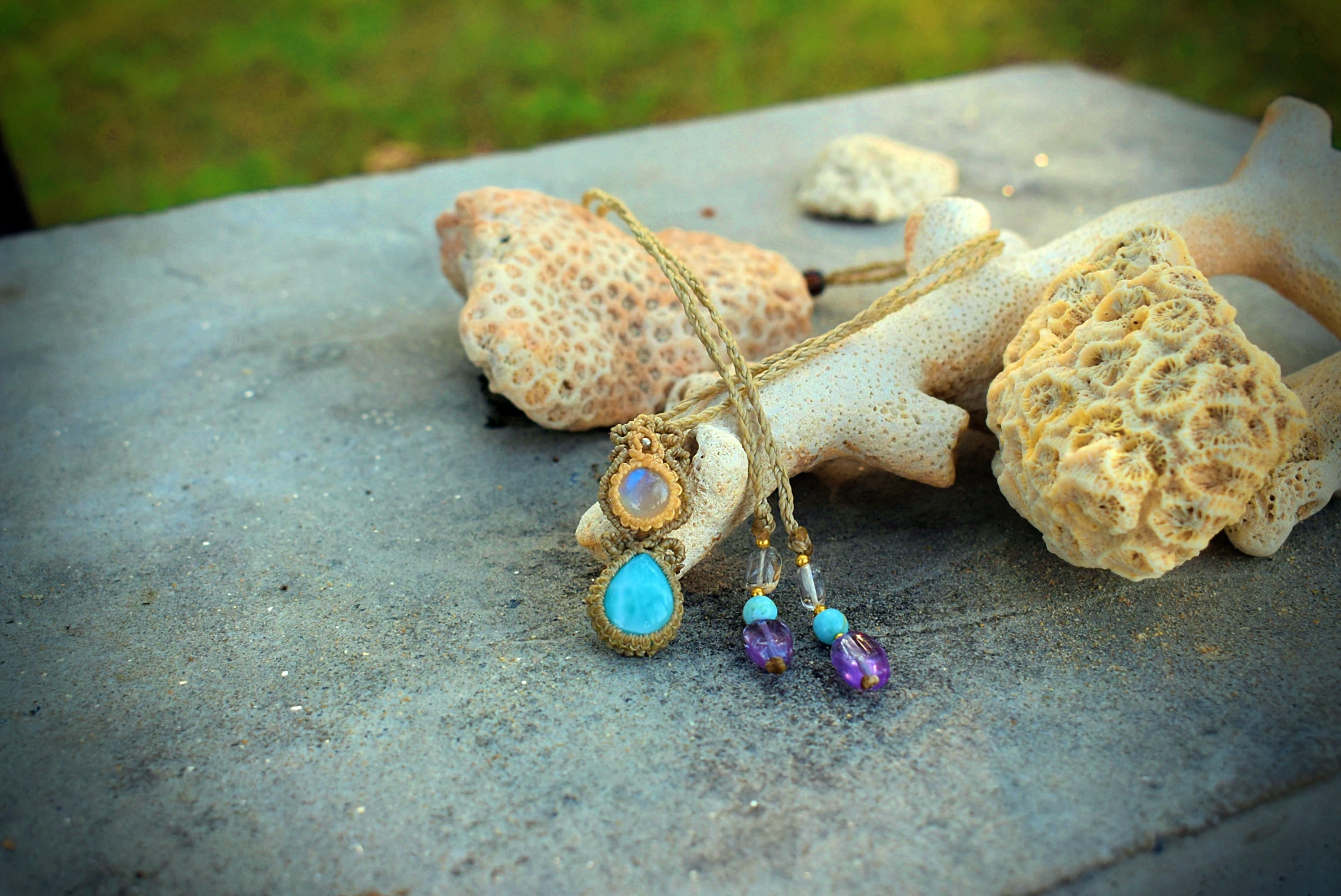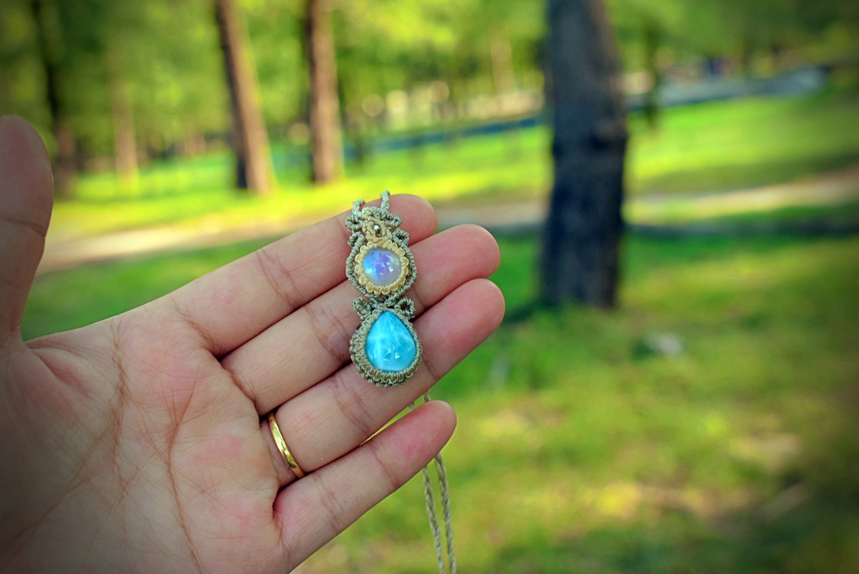 小粒★高品質★ラリマーとホワイトラブラドライト マクラメペンダント