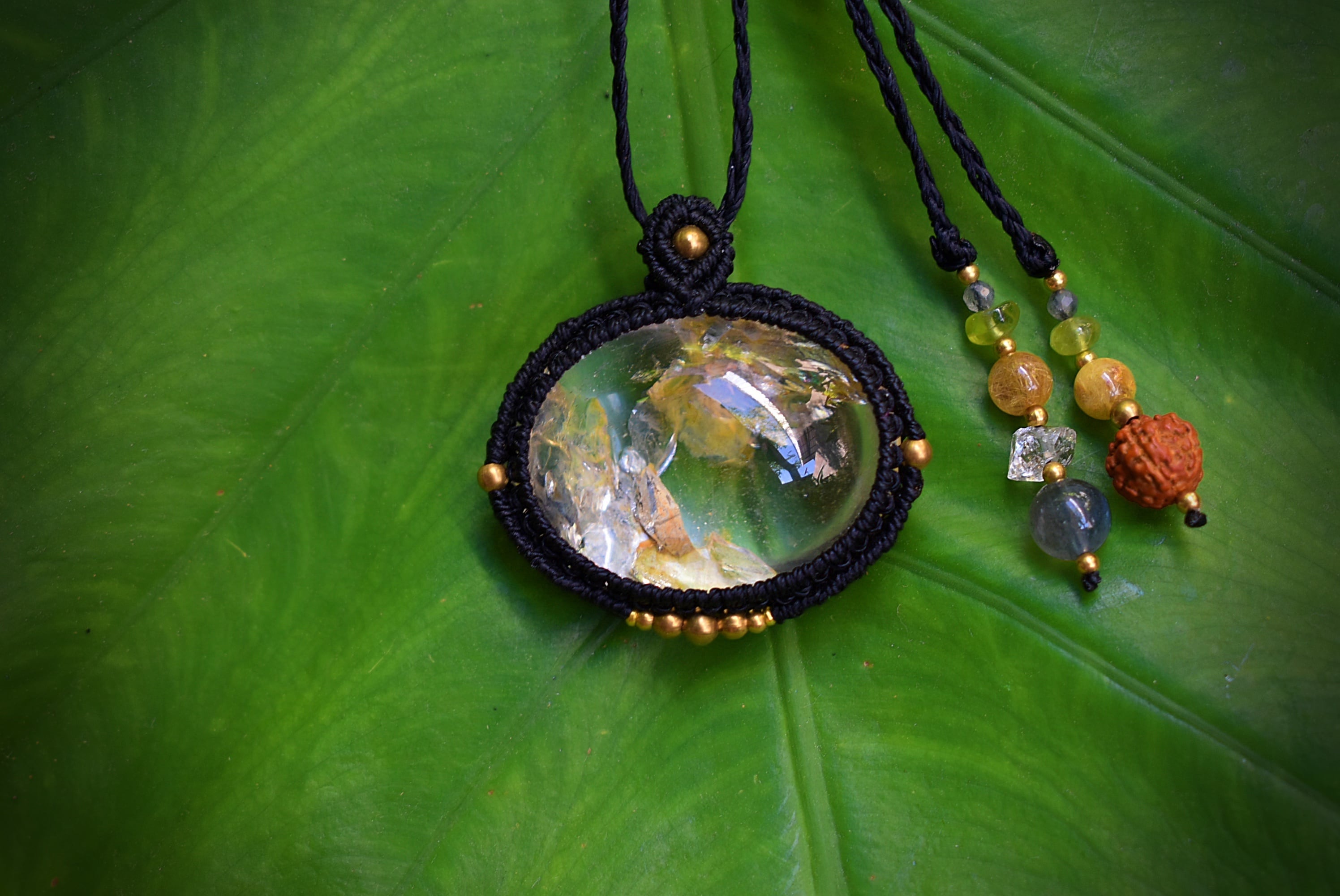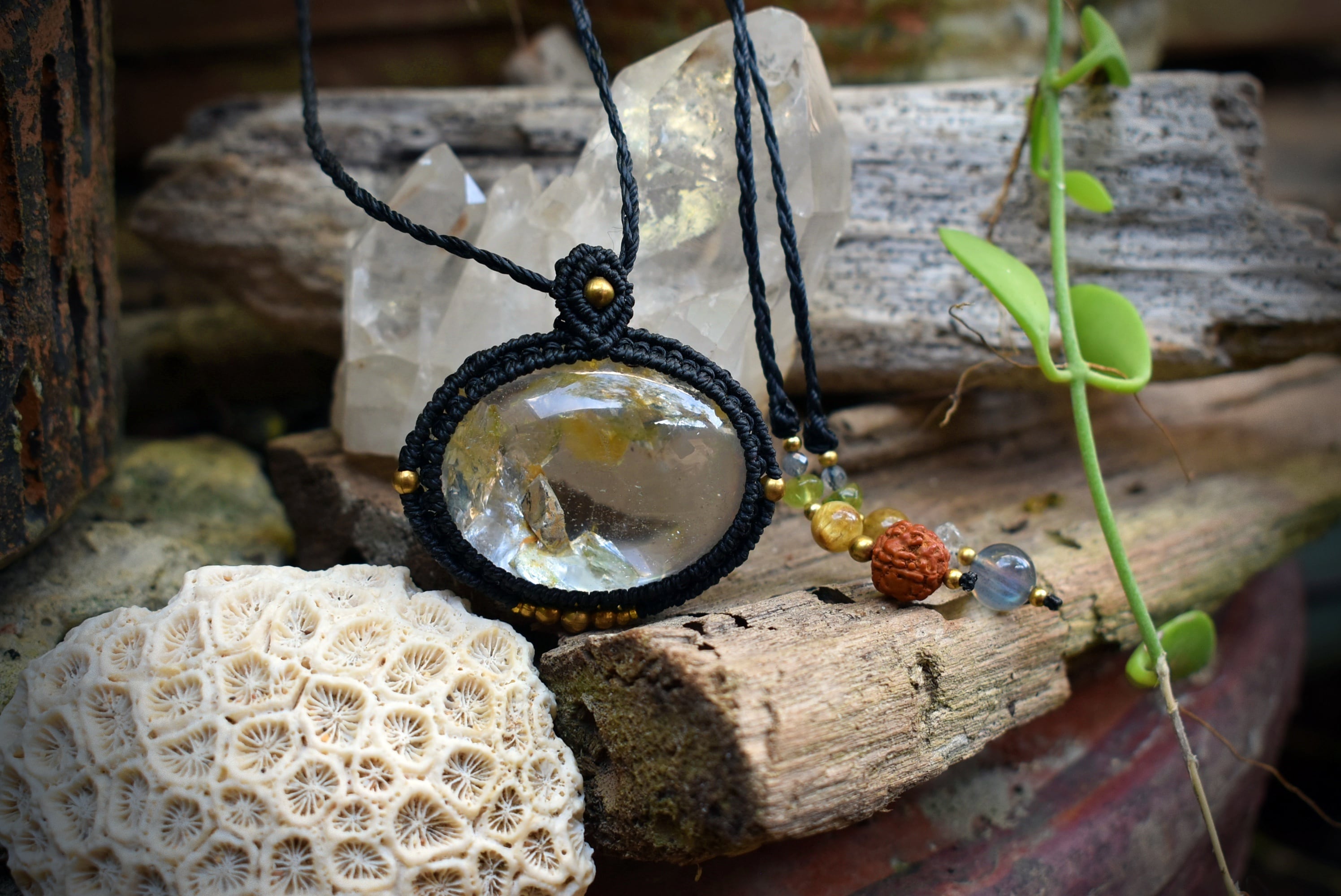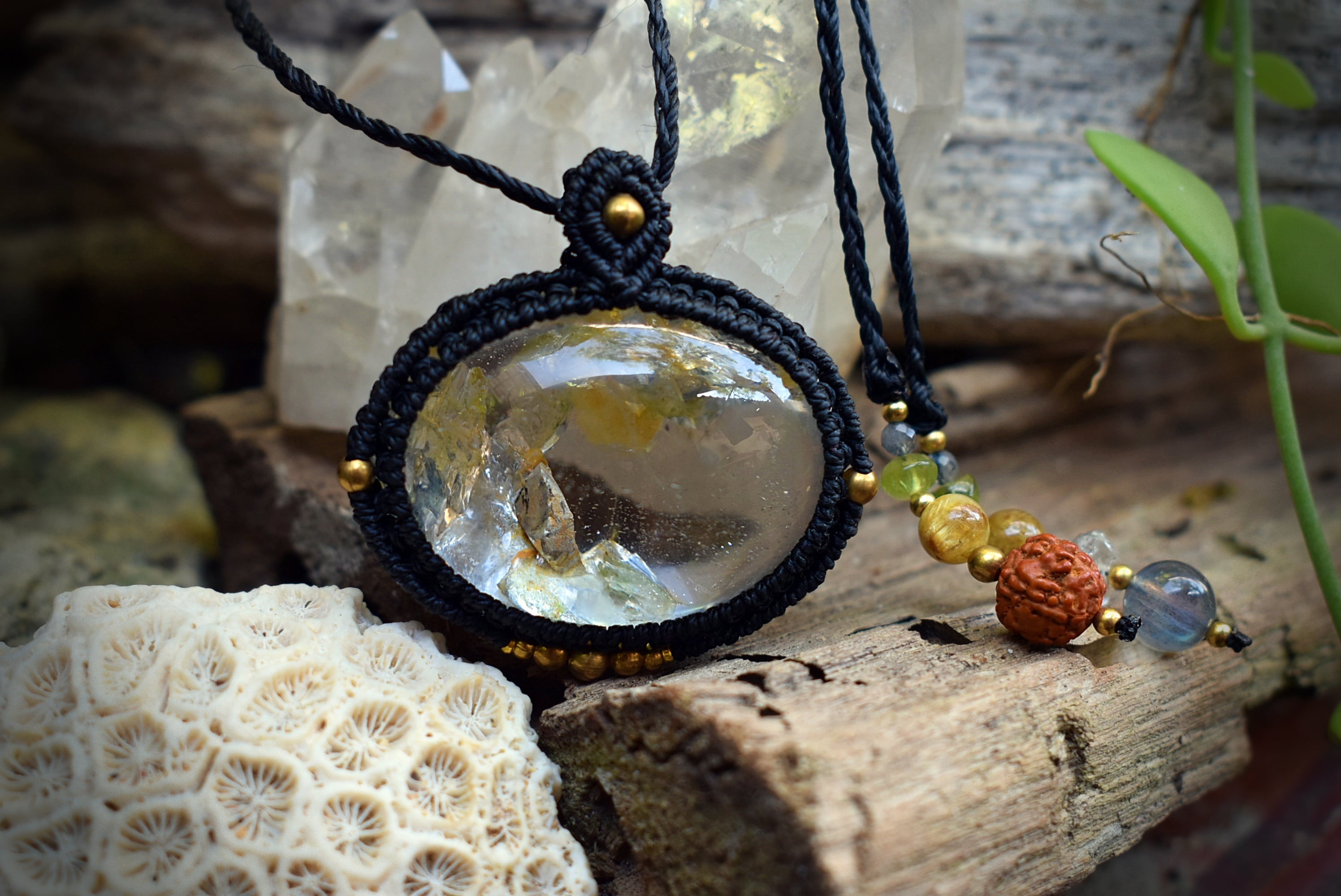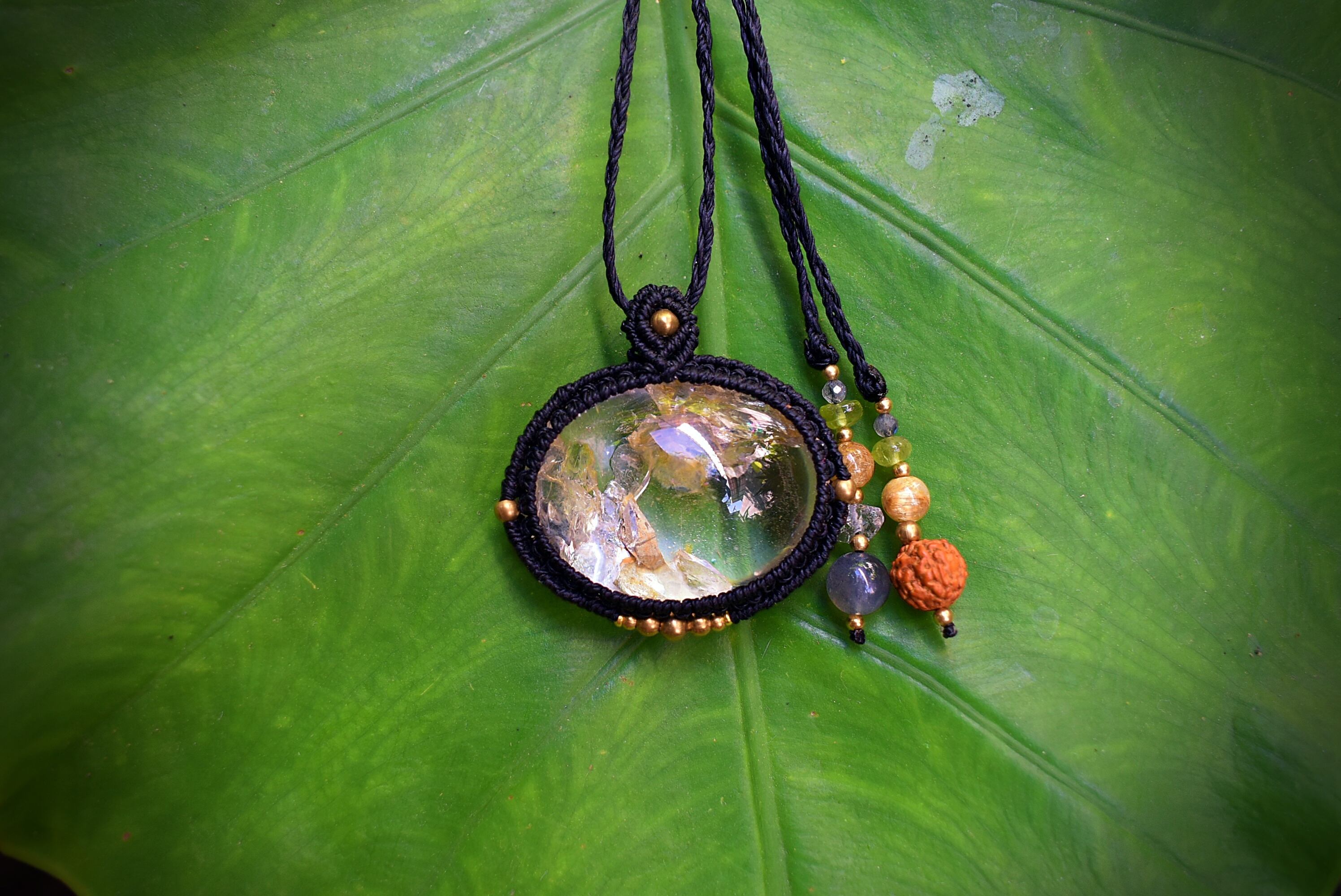 虹と鉱物山脈★クォーツインクォーツ マクラメペンダントgarm027