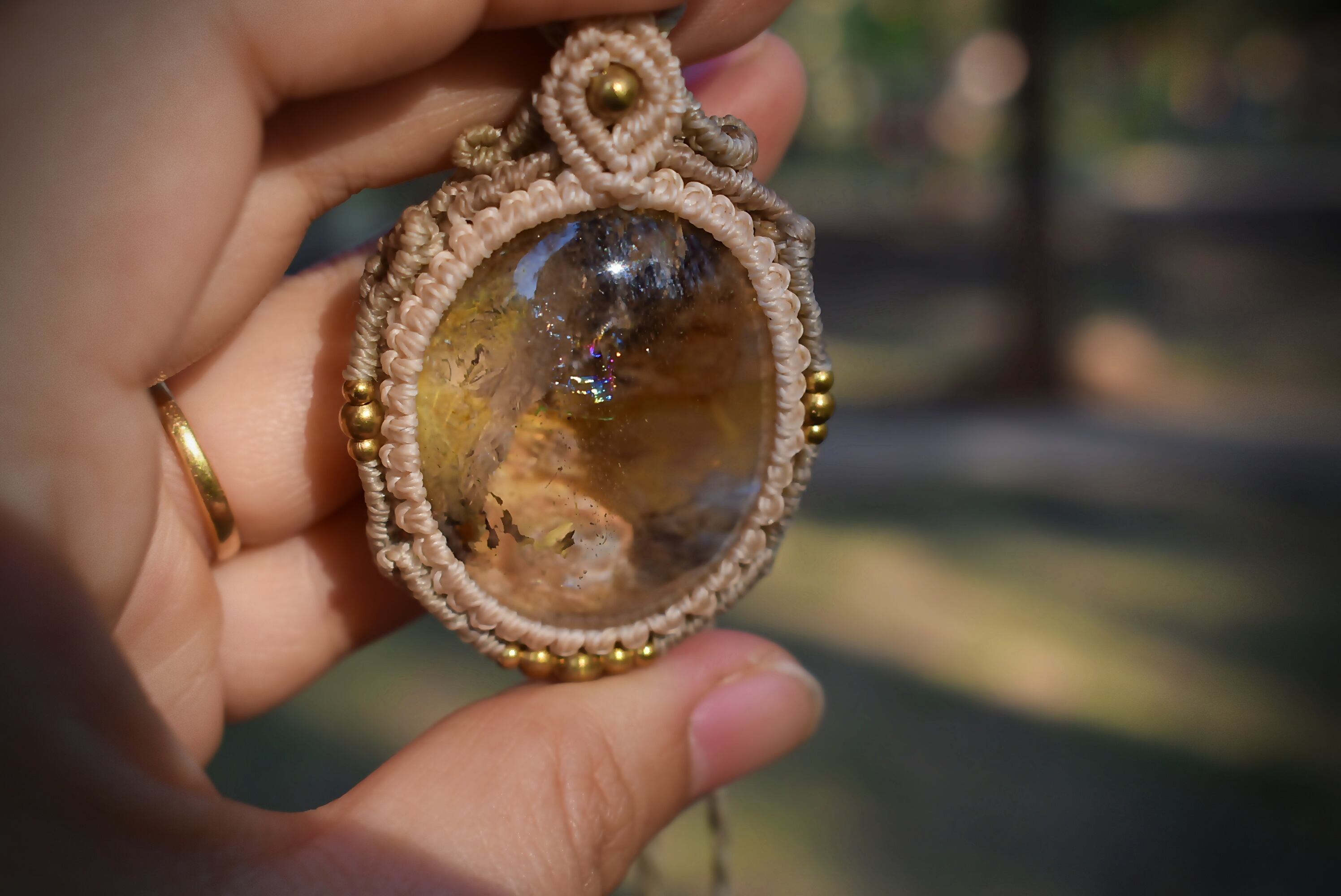虹と深い森★レインボーガーデン水晶 マクラメペンダントgarm035