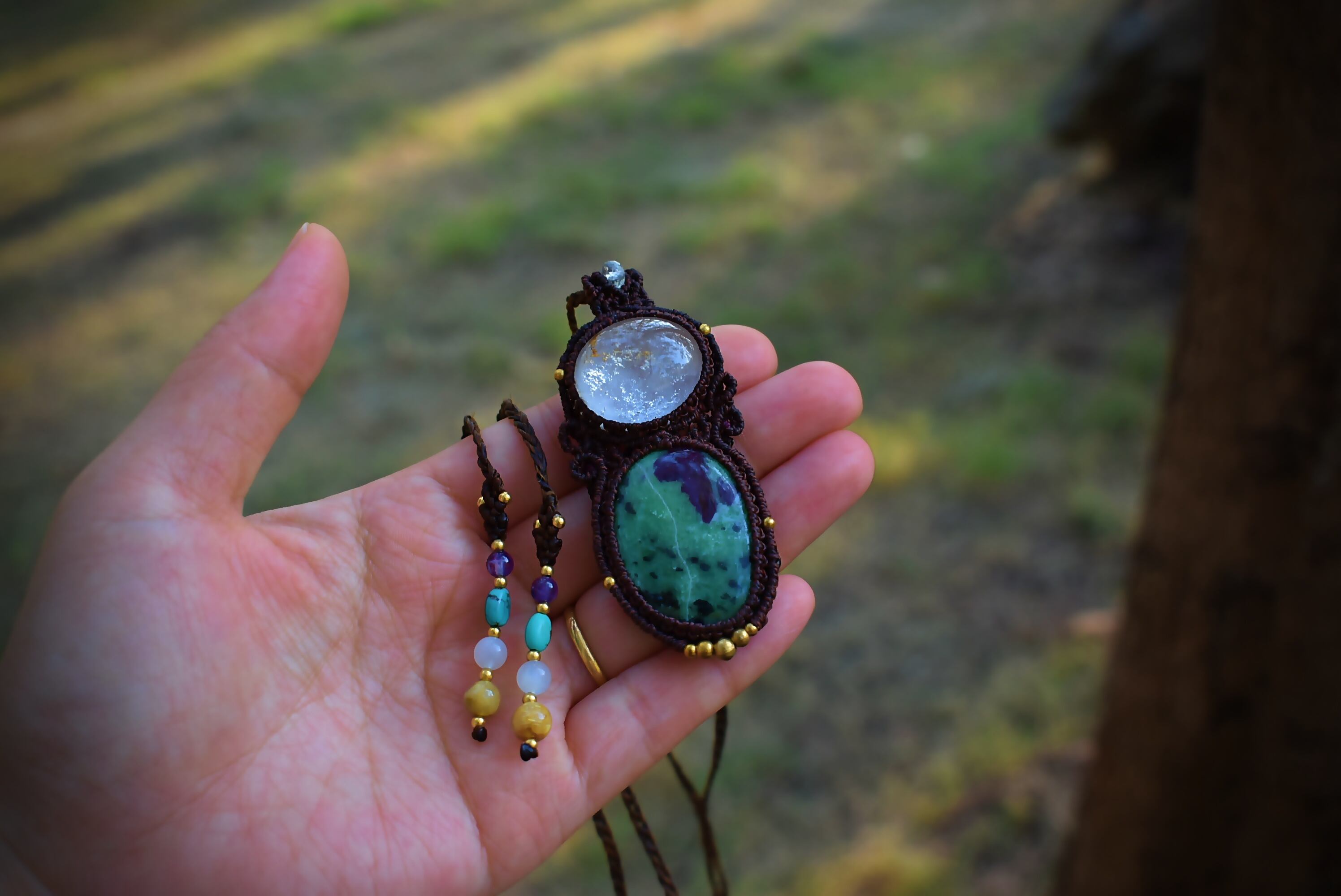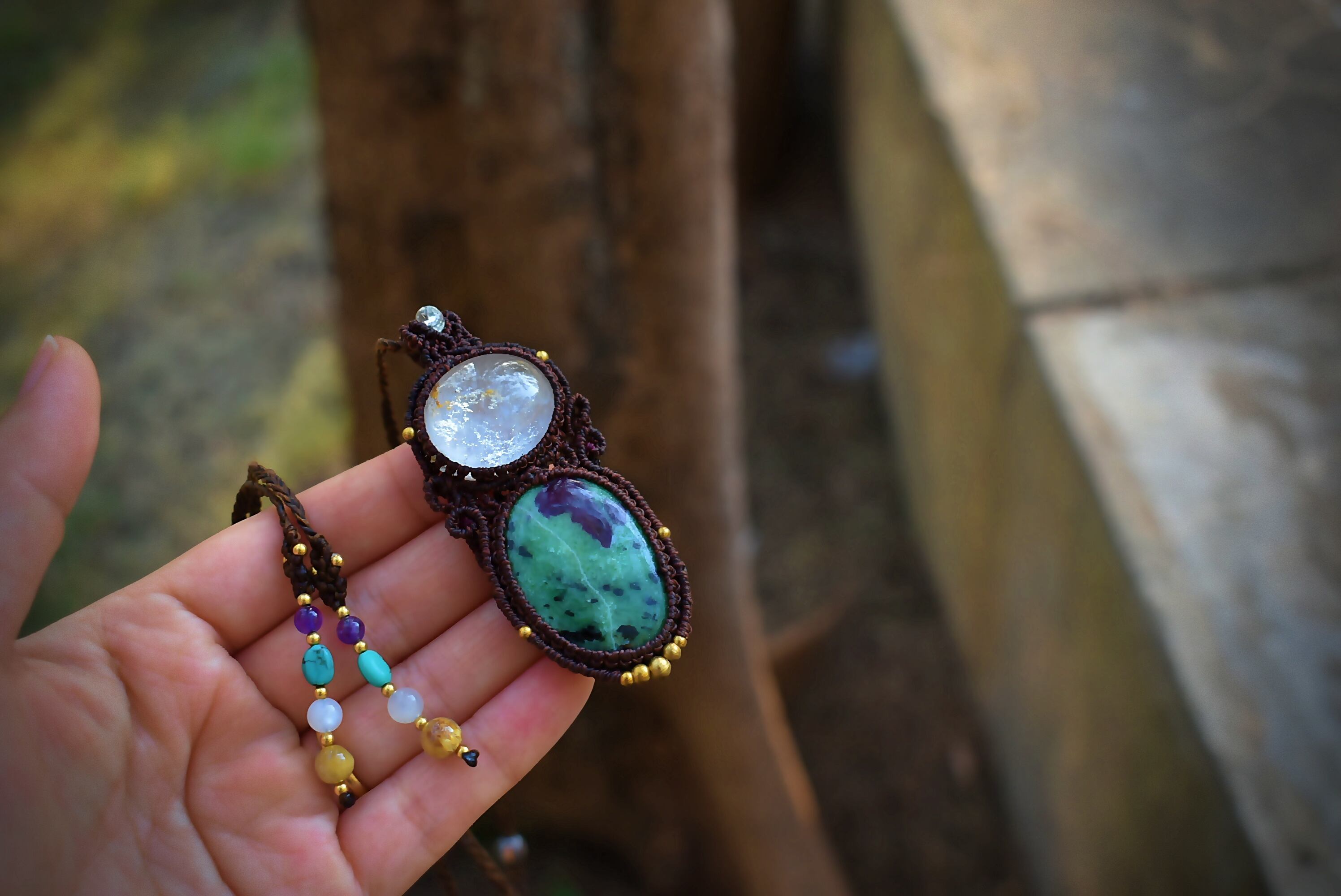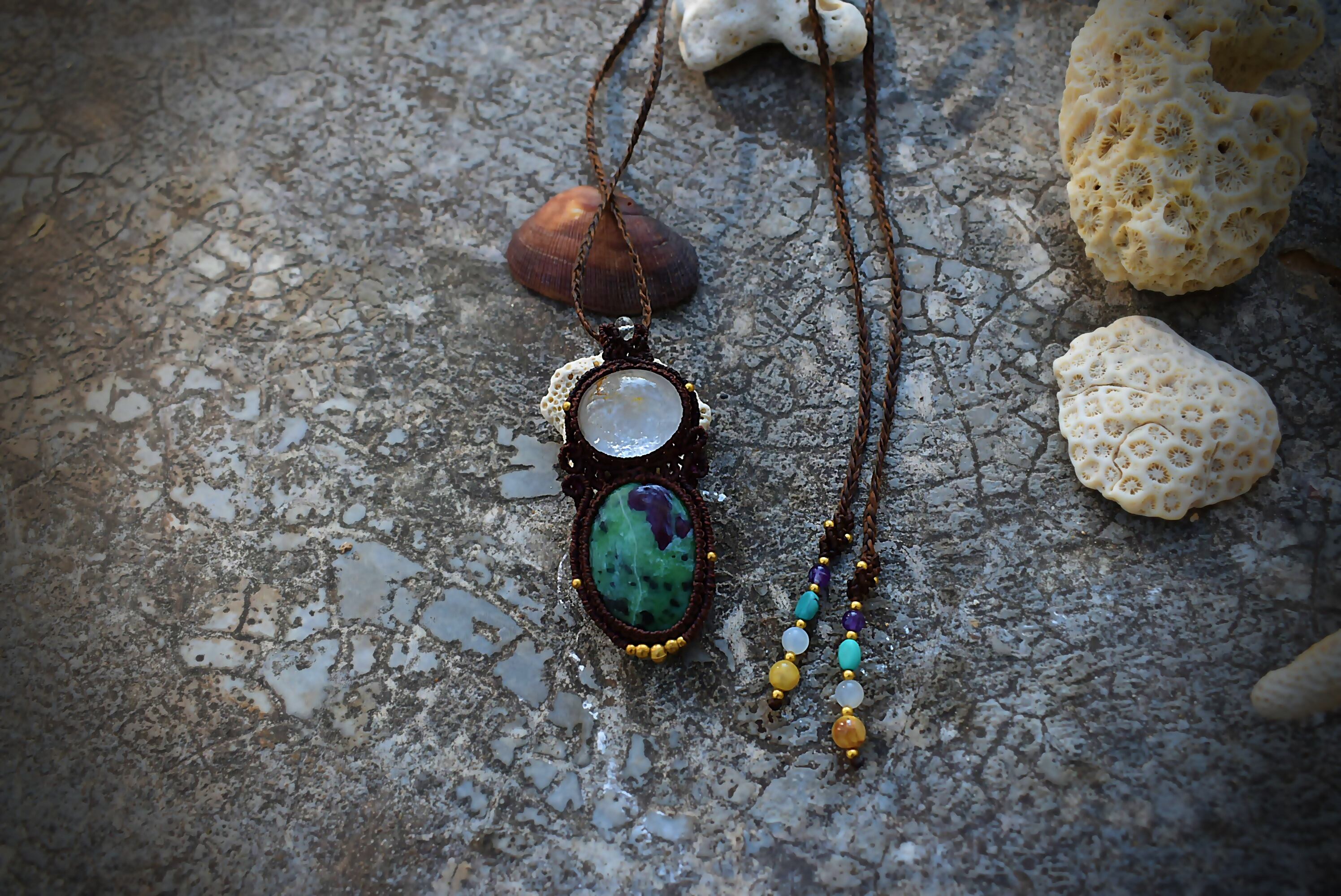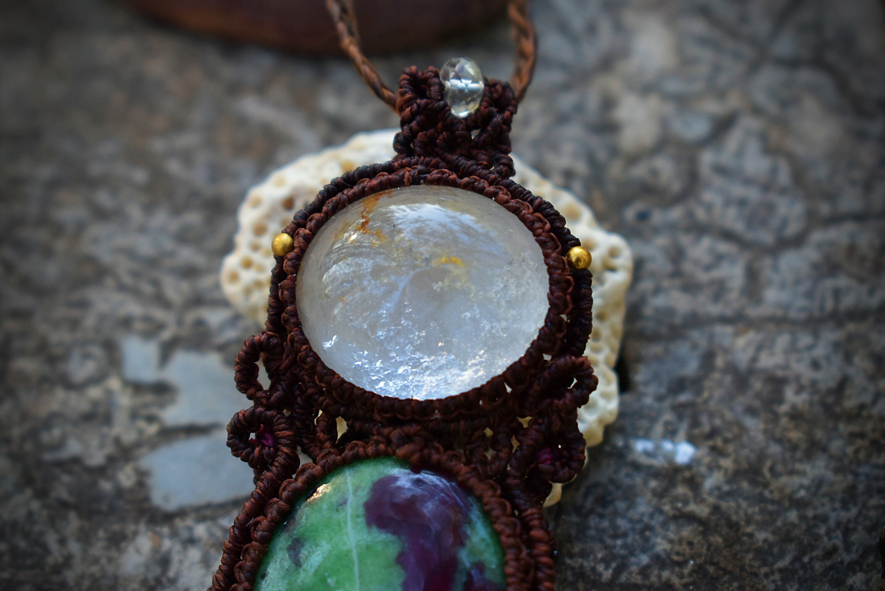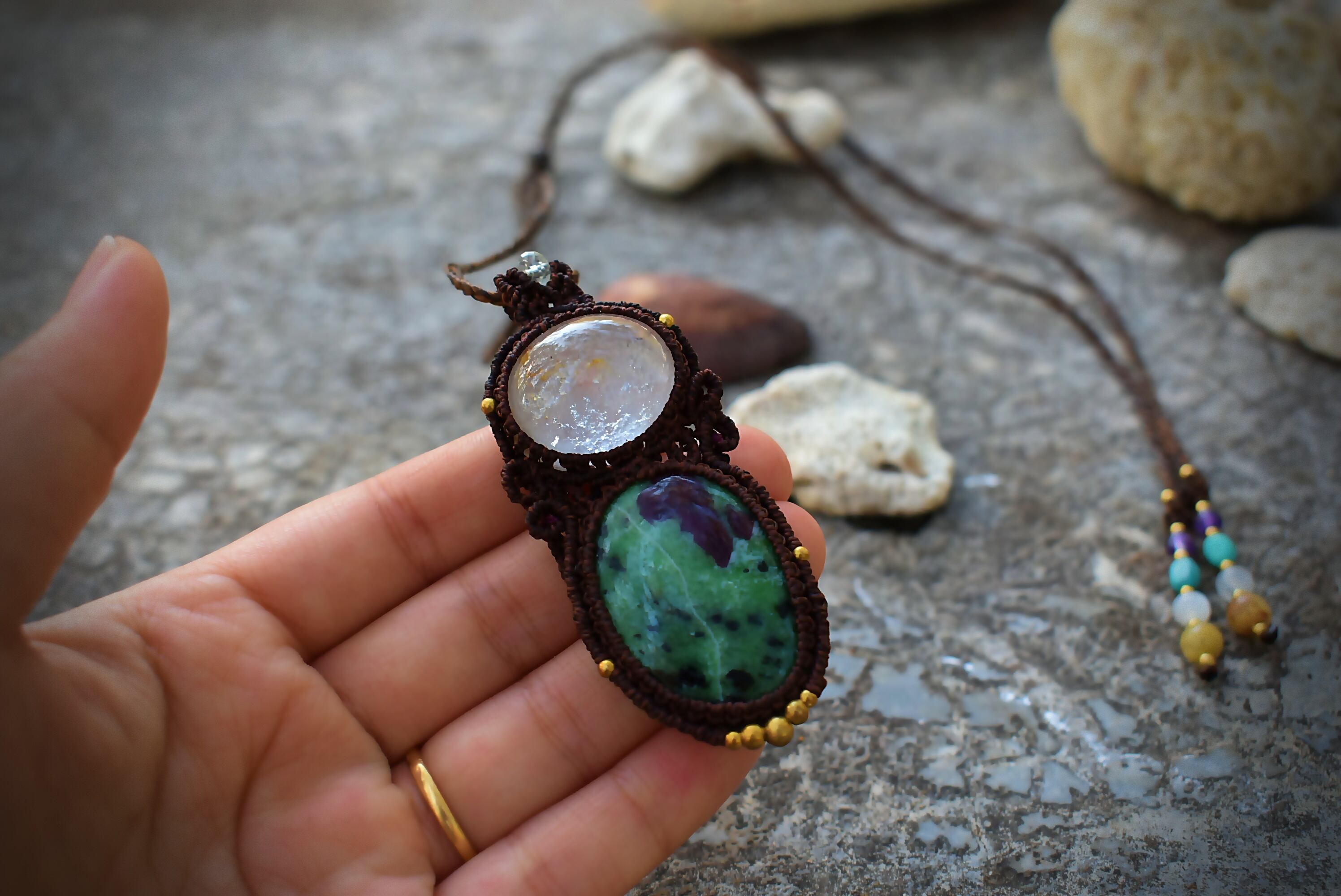 ルビーと白い奇跡★ホワイトガーデンとルビーインゾイサイト マクラメペンダント