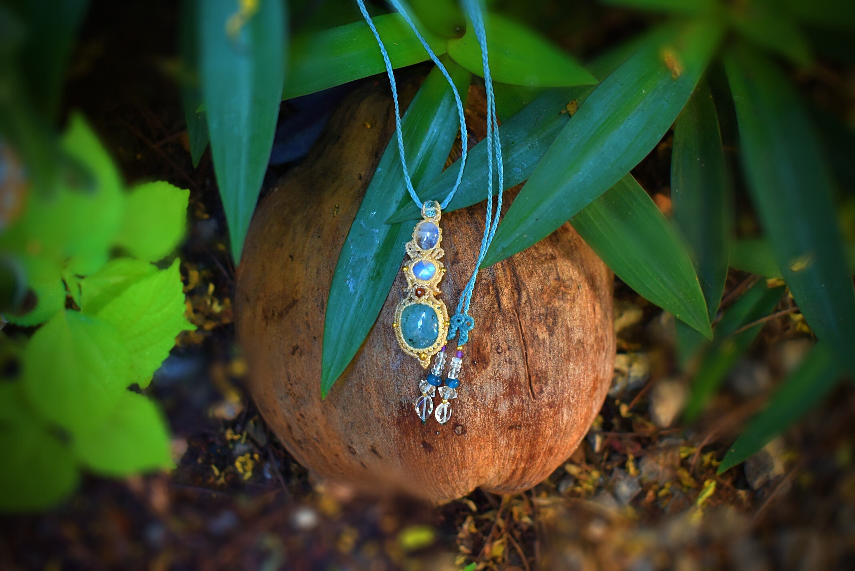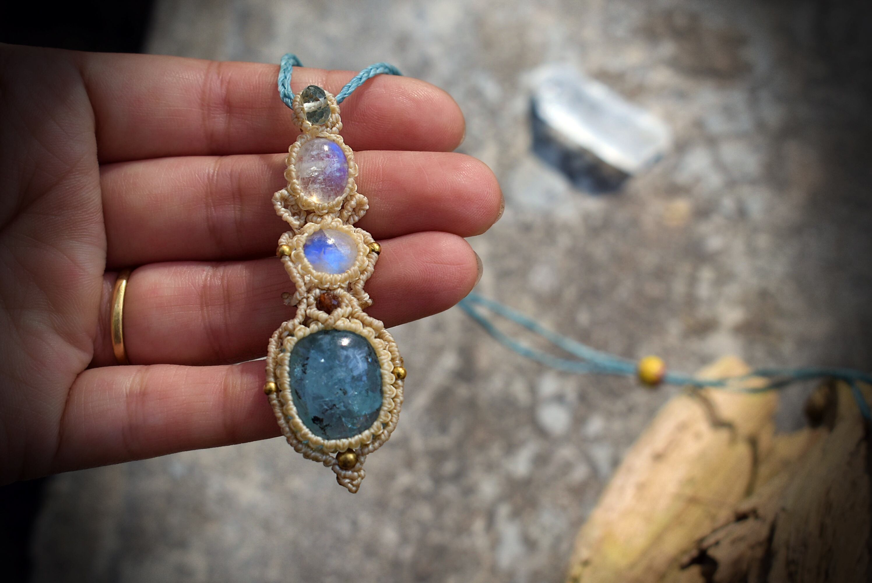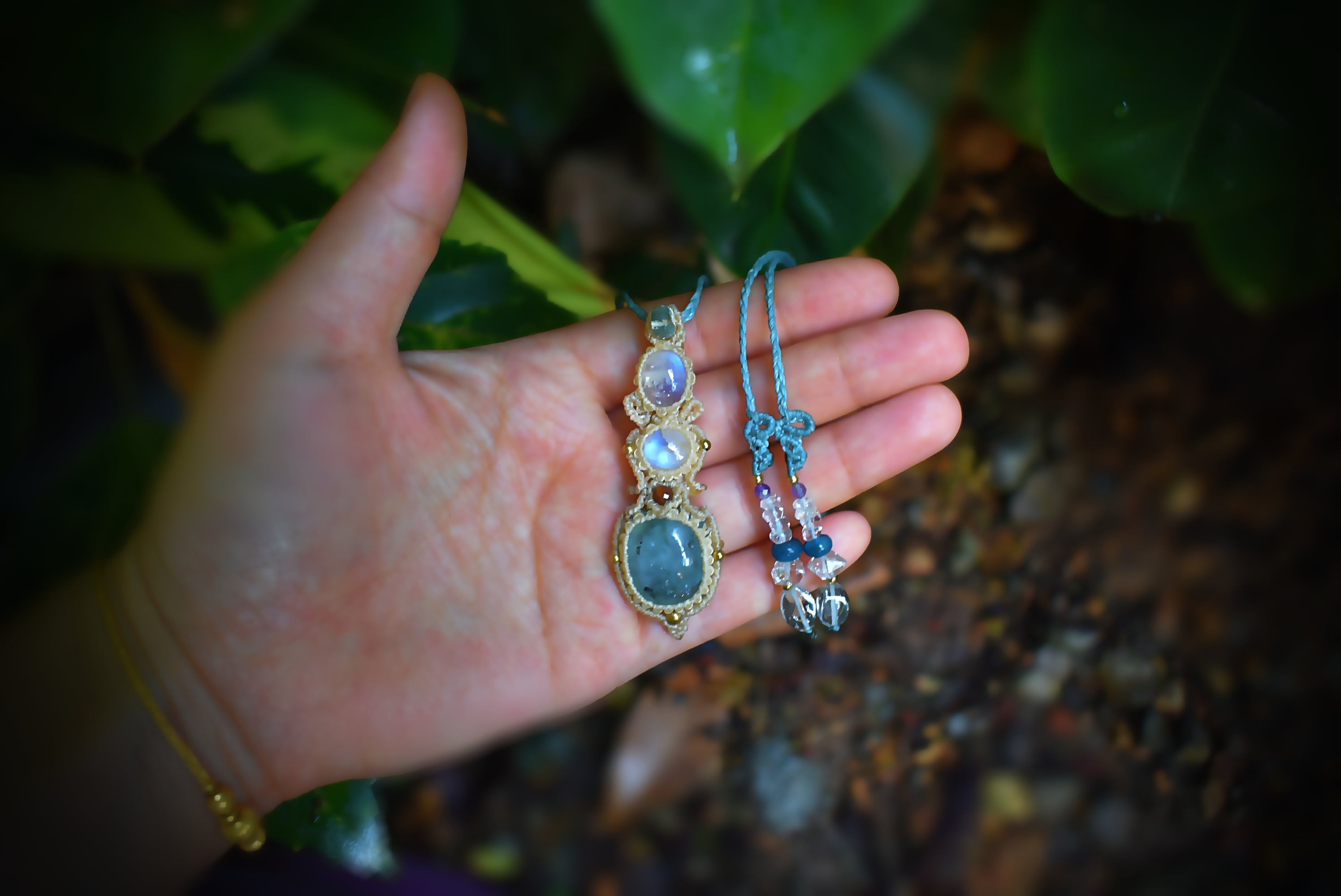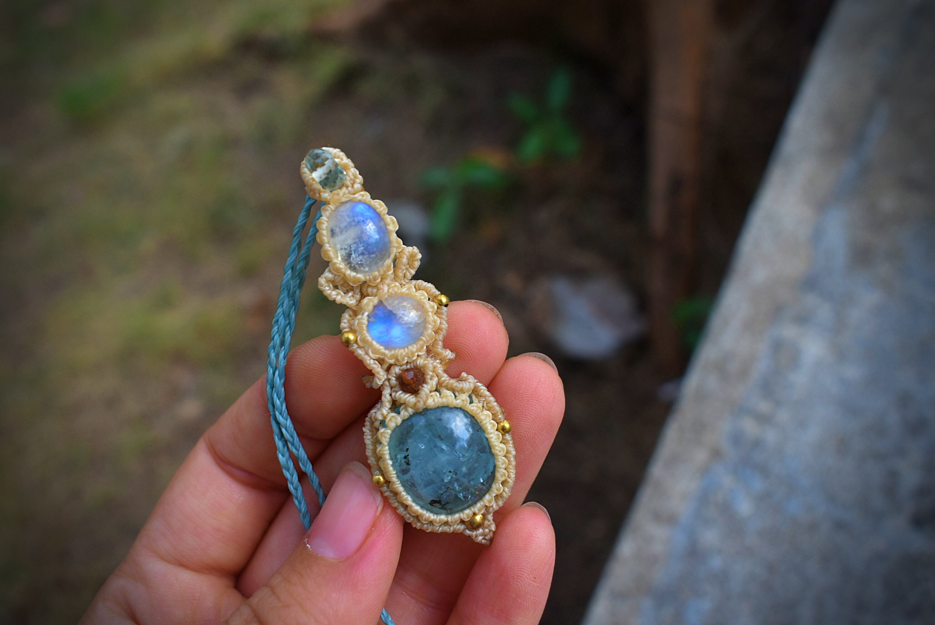希少ブルー★健やかアクアマリンマクラメペンダント