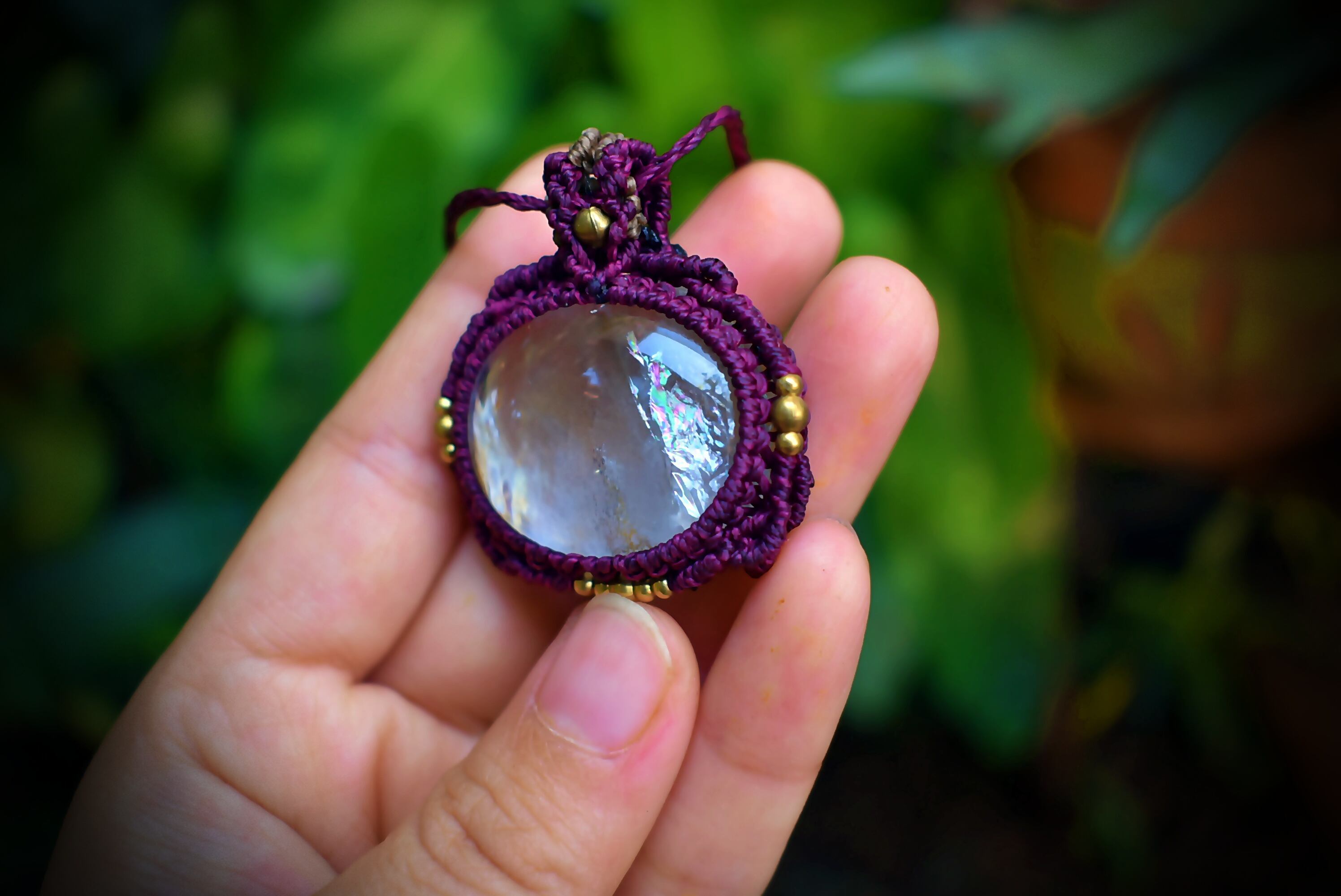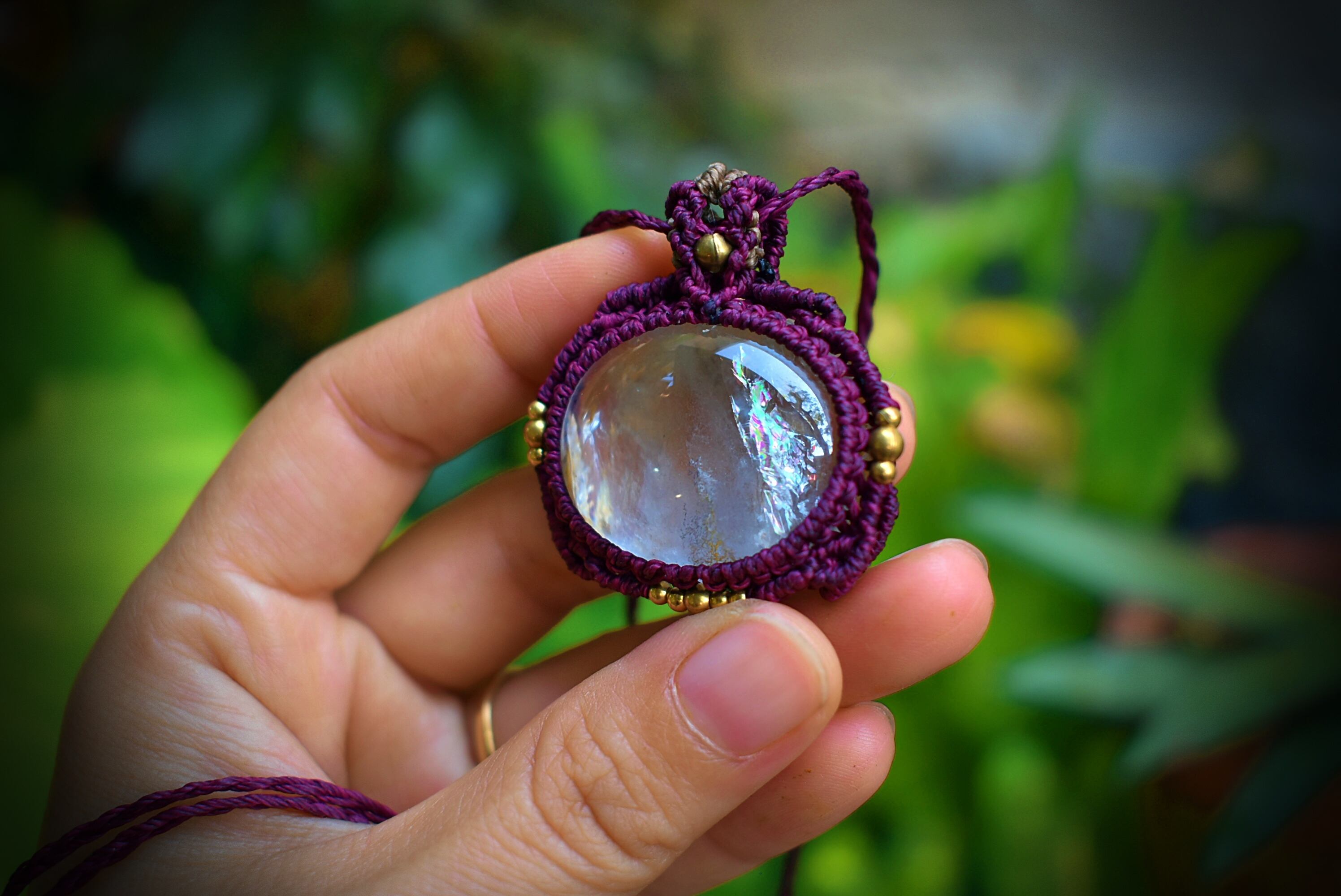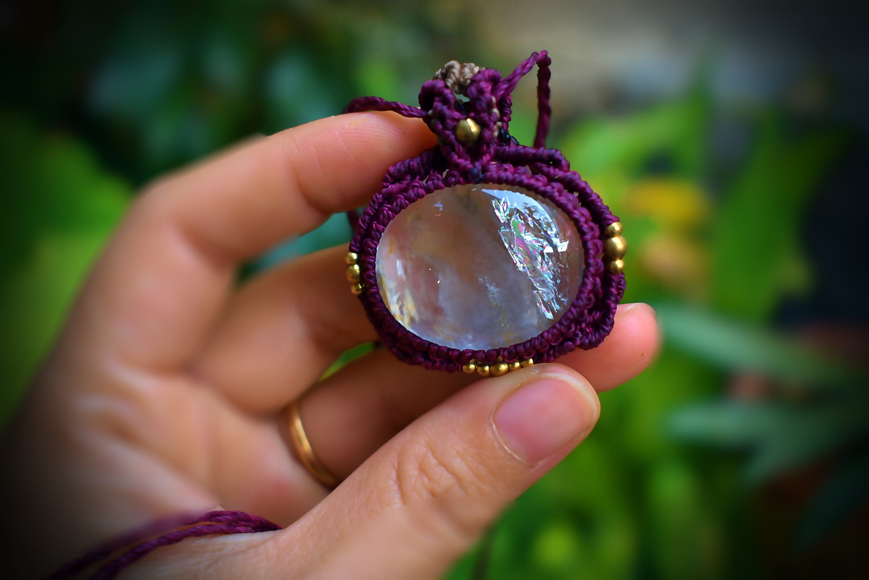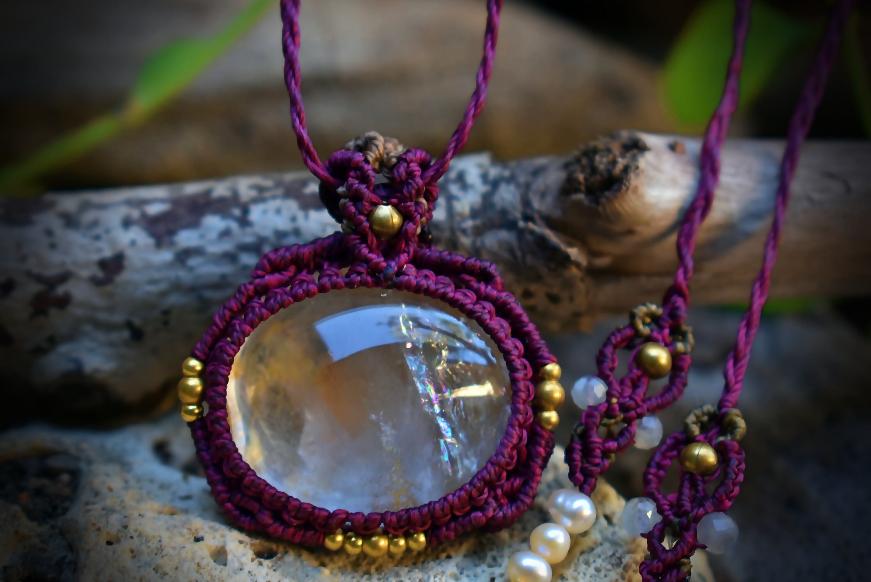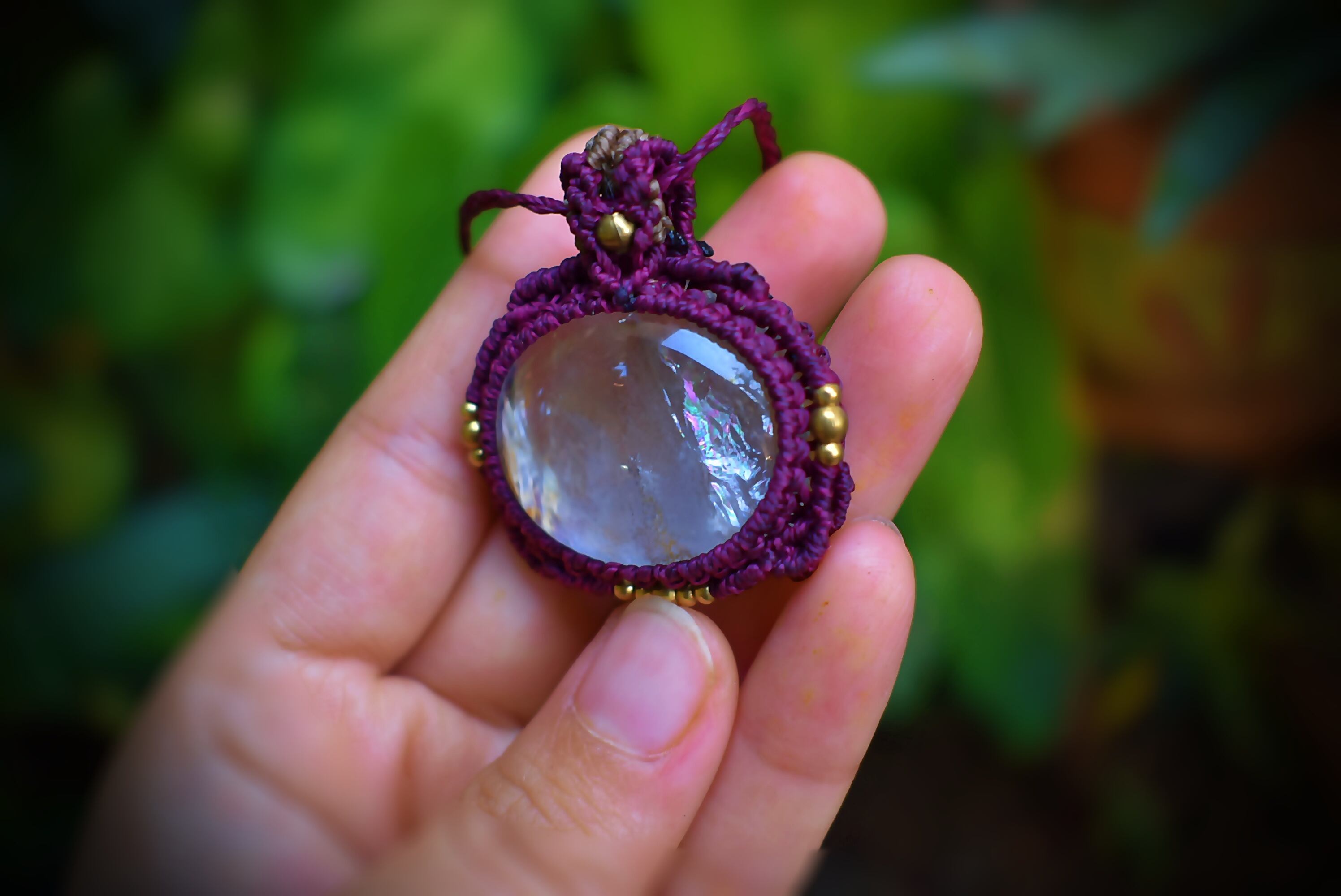 虹色ピンクシラー★ホワイトレインボークォーツ マクラメペンダント