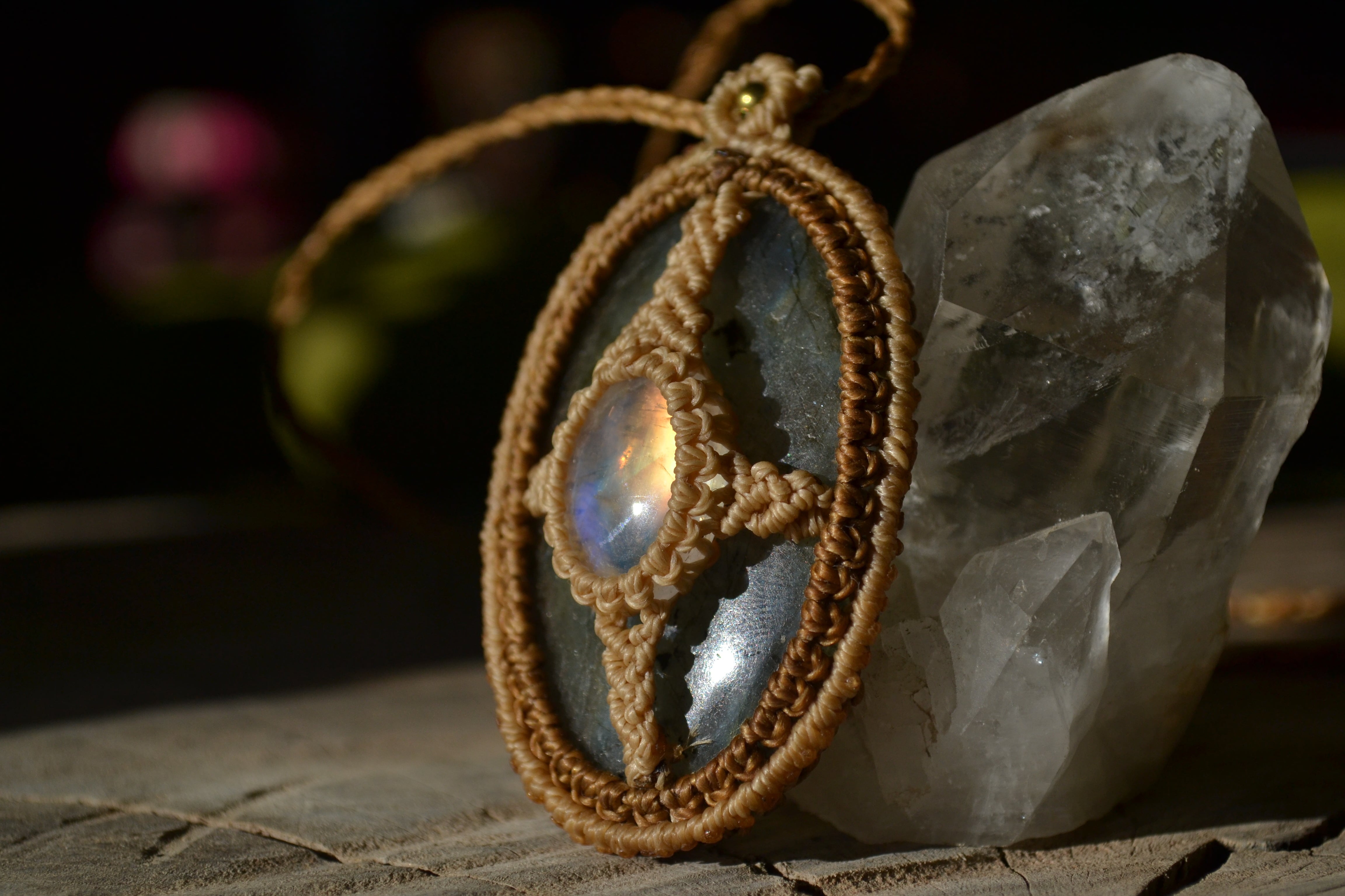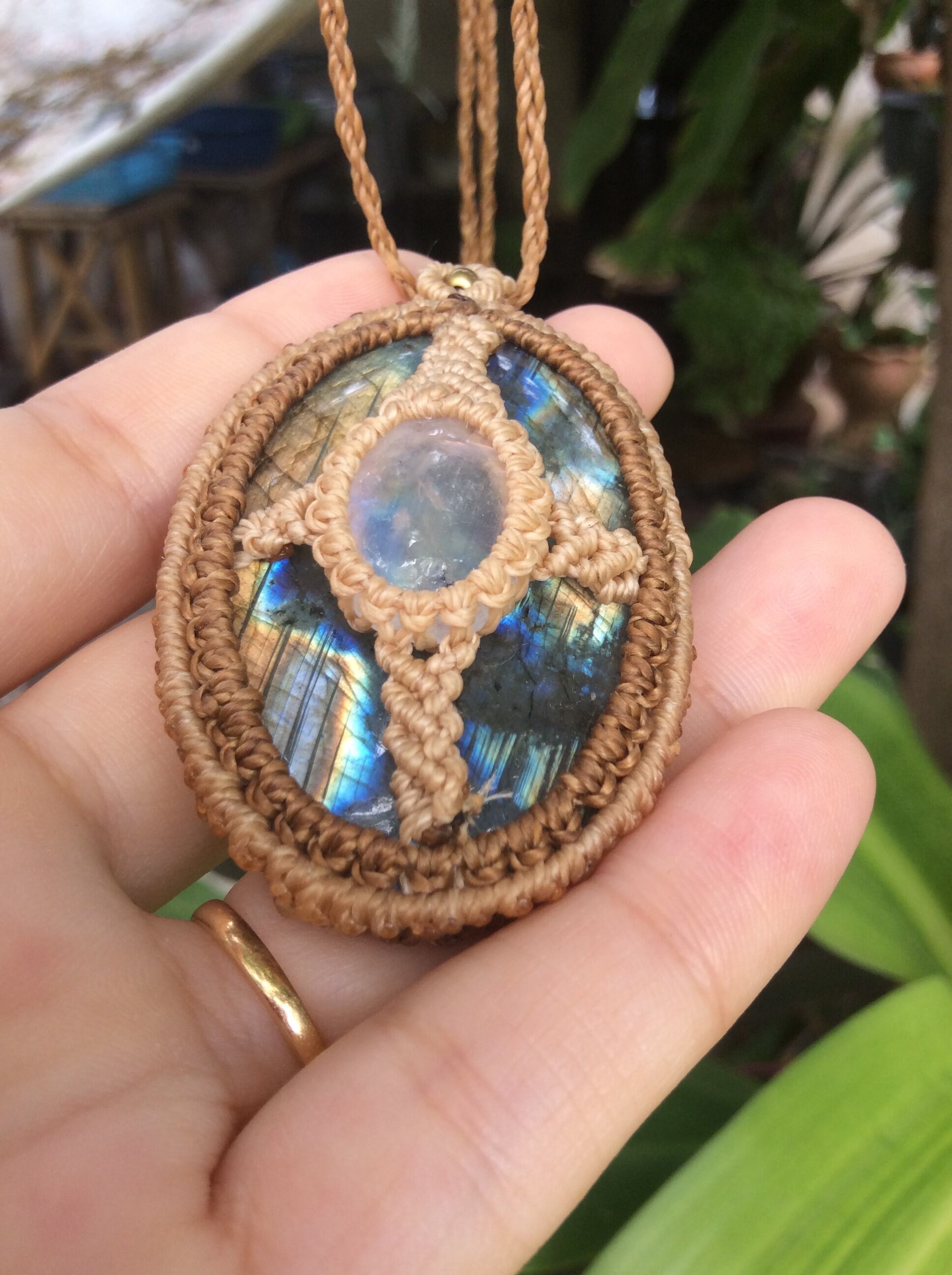 ムーンストーン&ラブラドライト マクラメ編みネックレス