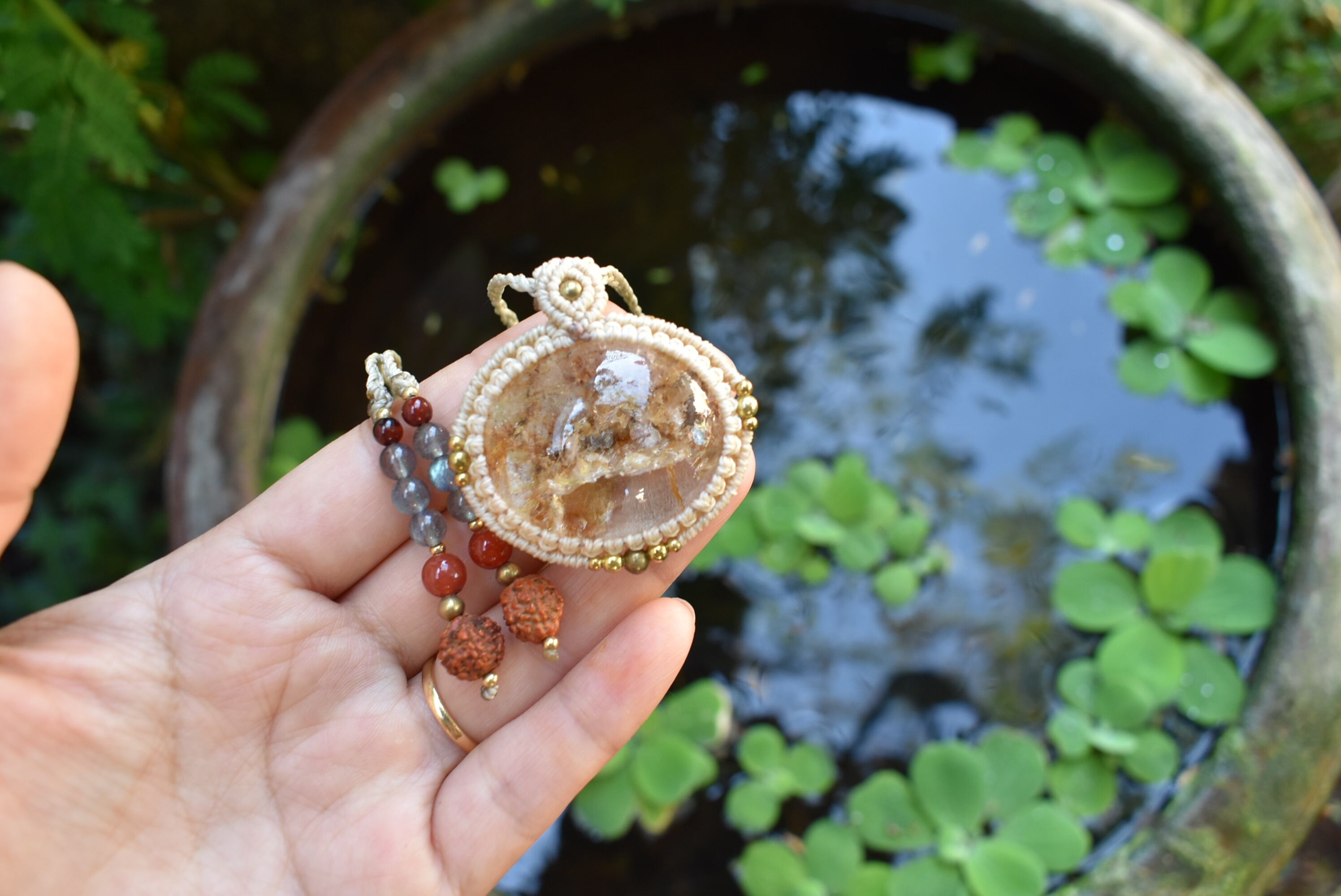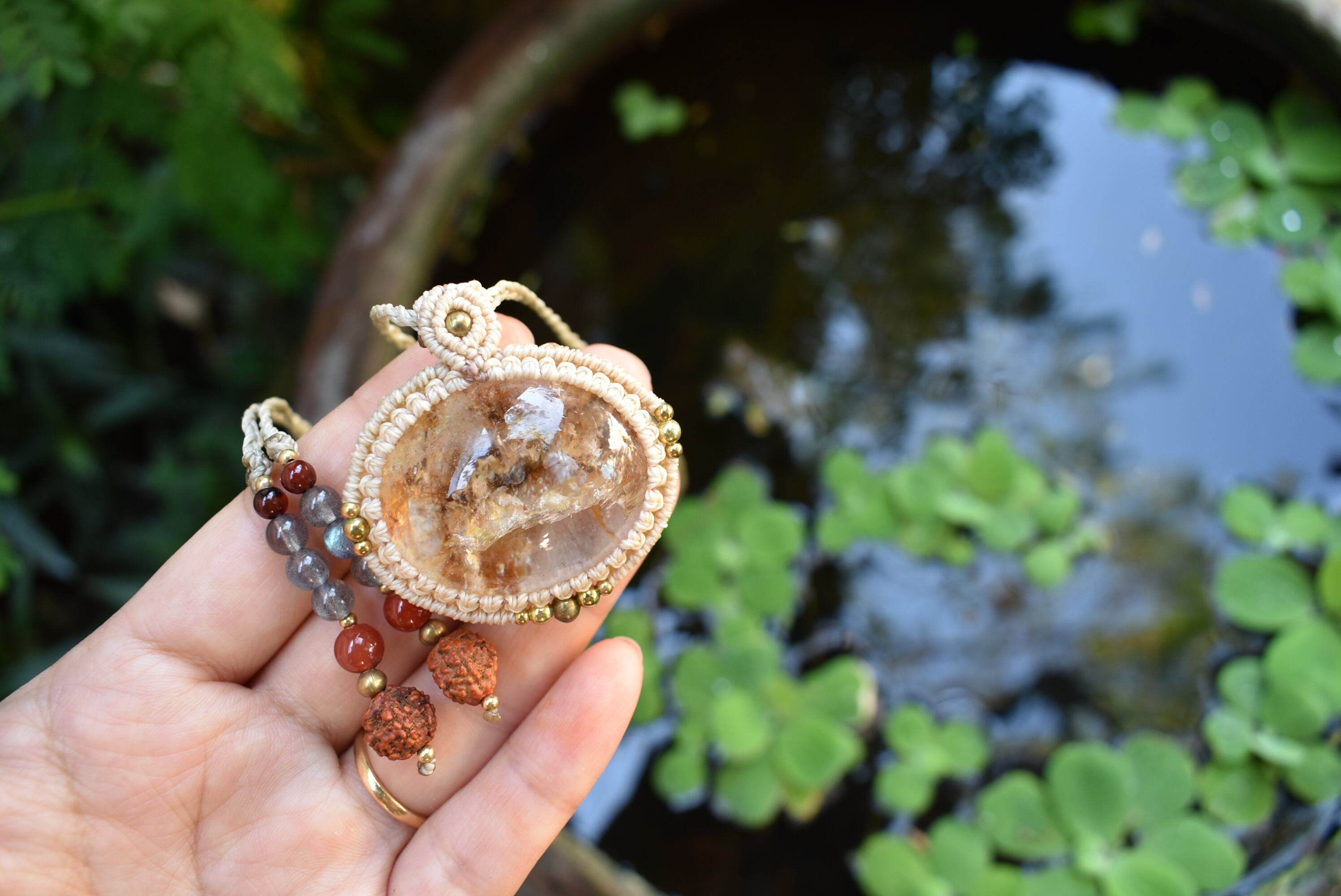 水晶の中の断碧★クォーツインクォーツ マクラメペンダントgar039