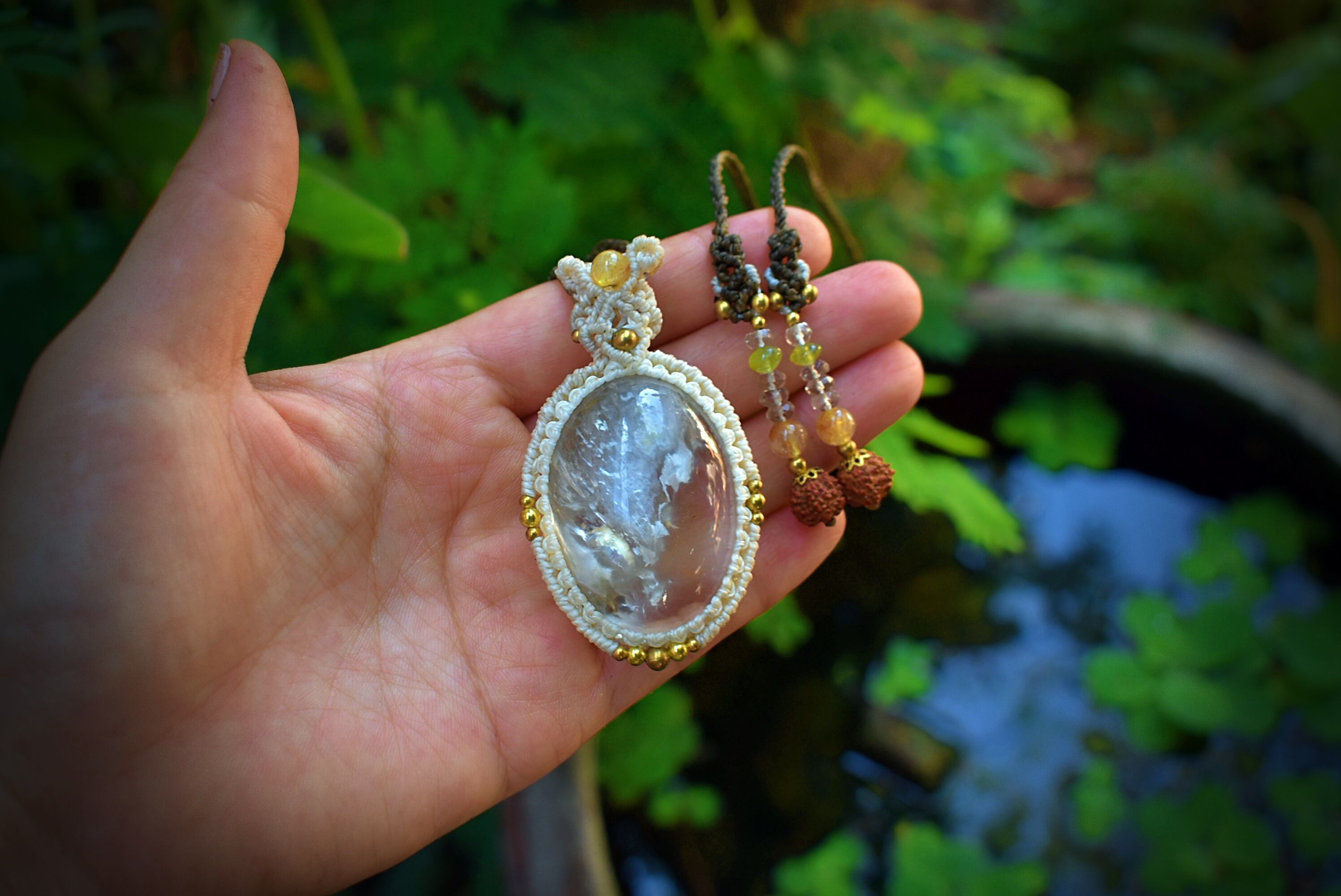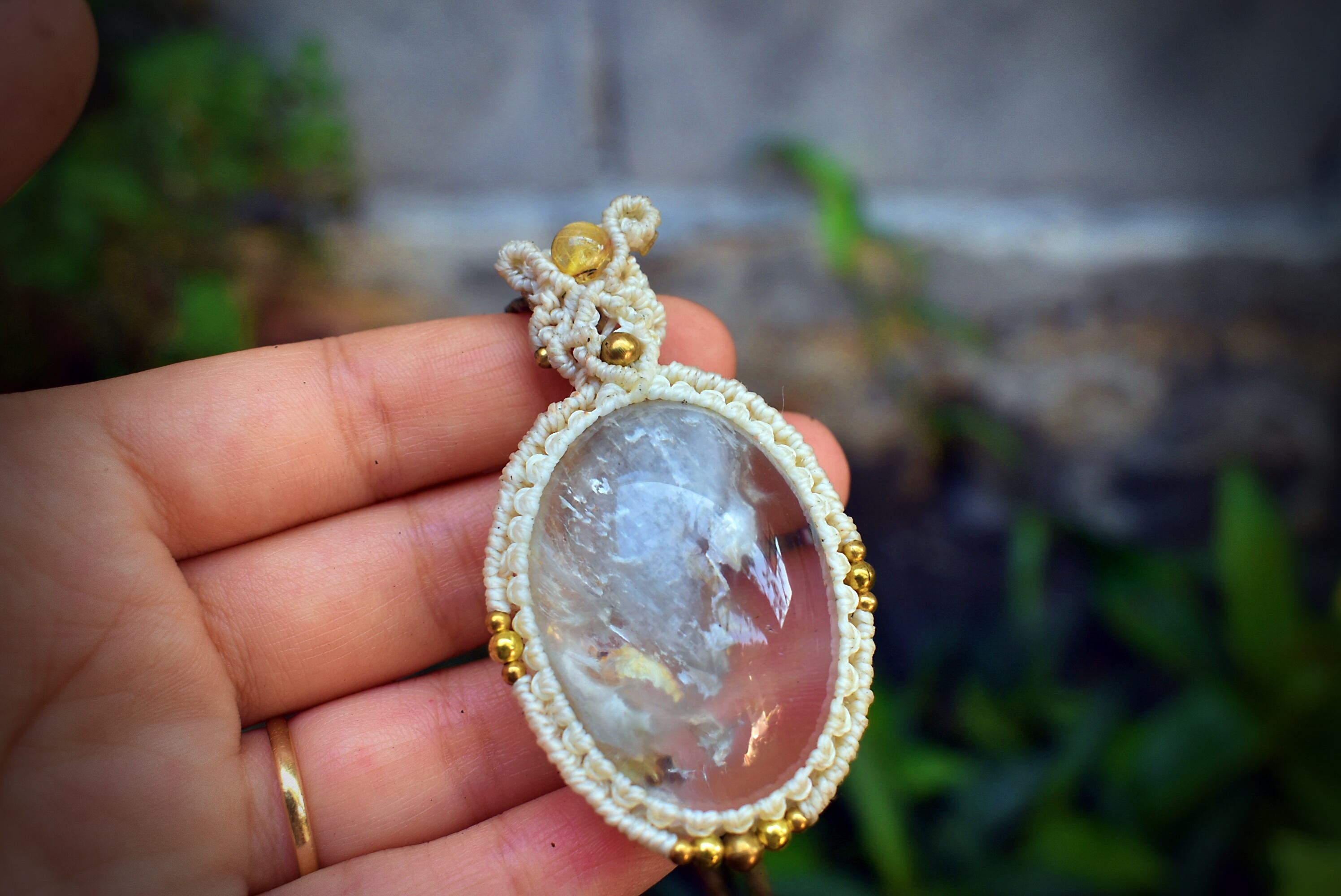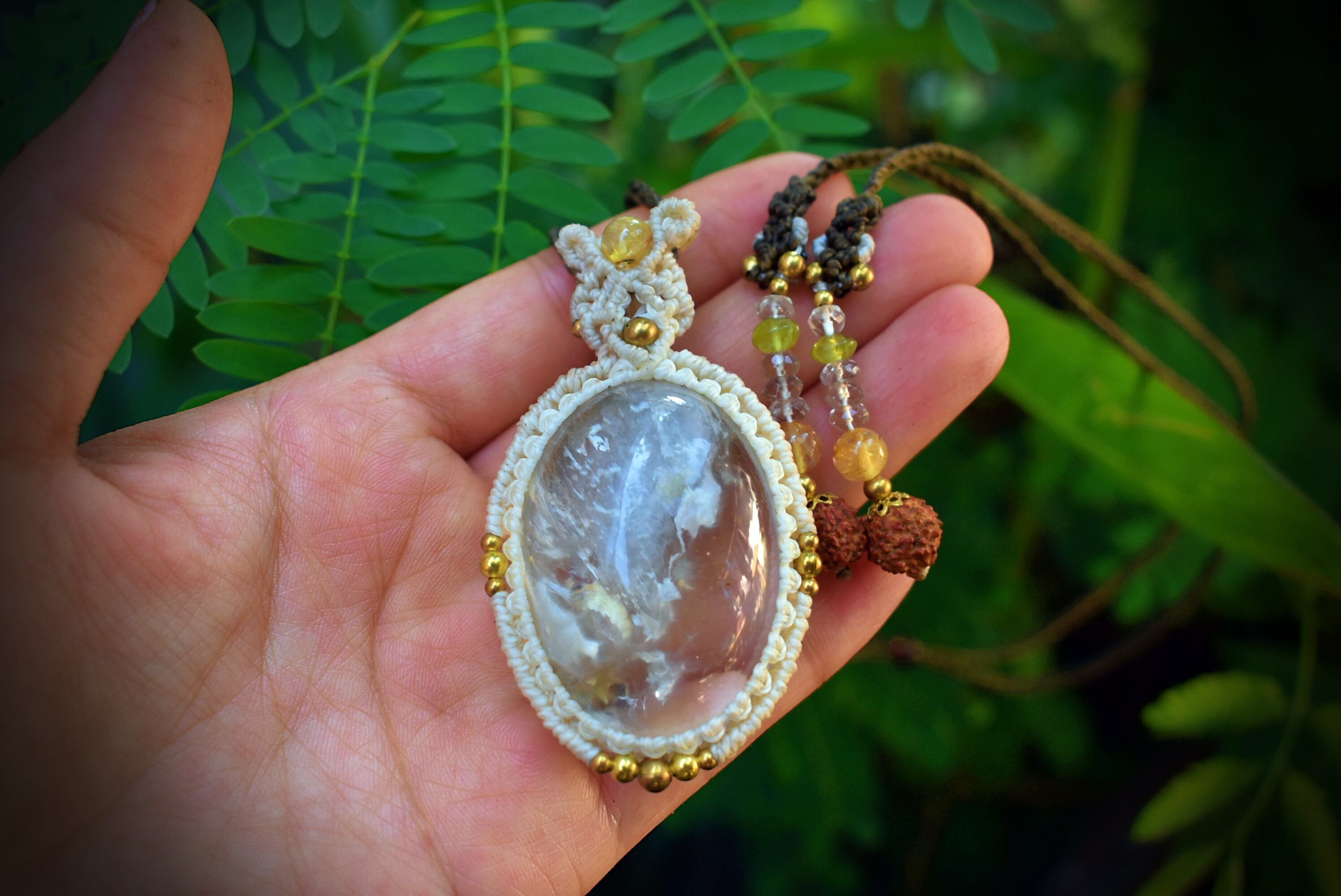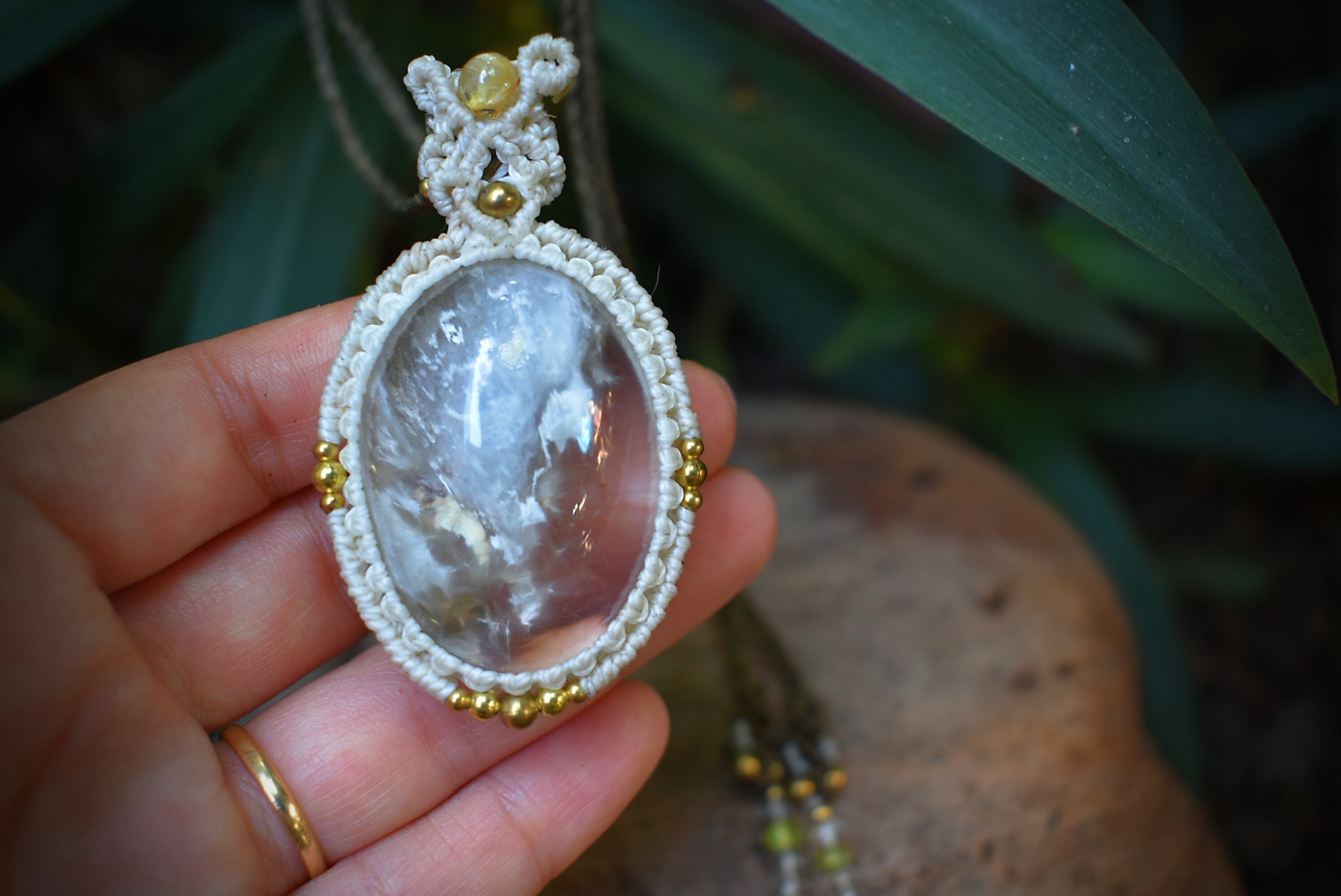 幸せしるし★大粒★ホワイトガーデンクォーツ マクラメペンダント