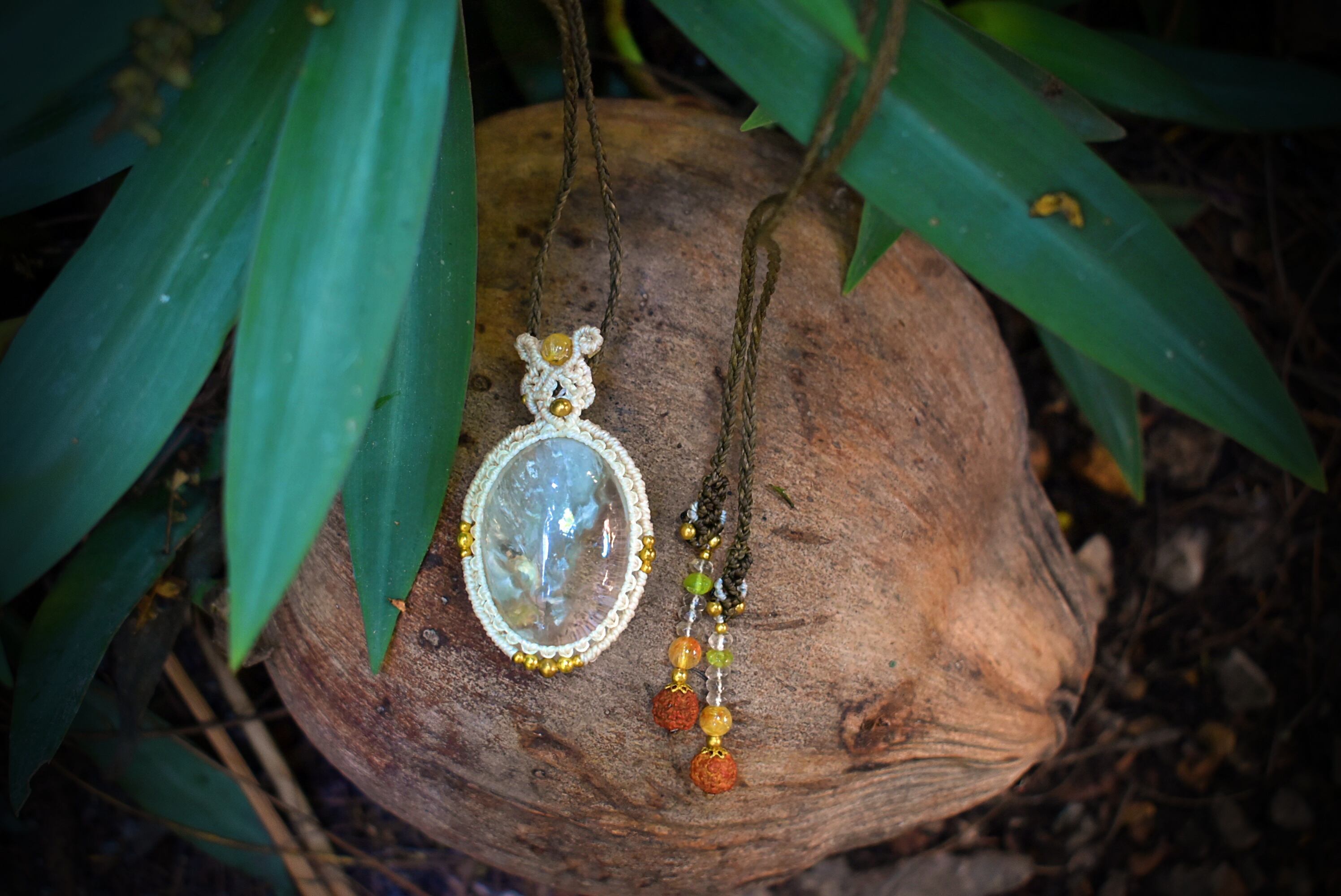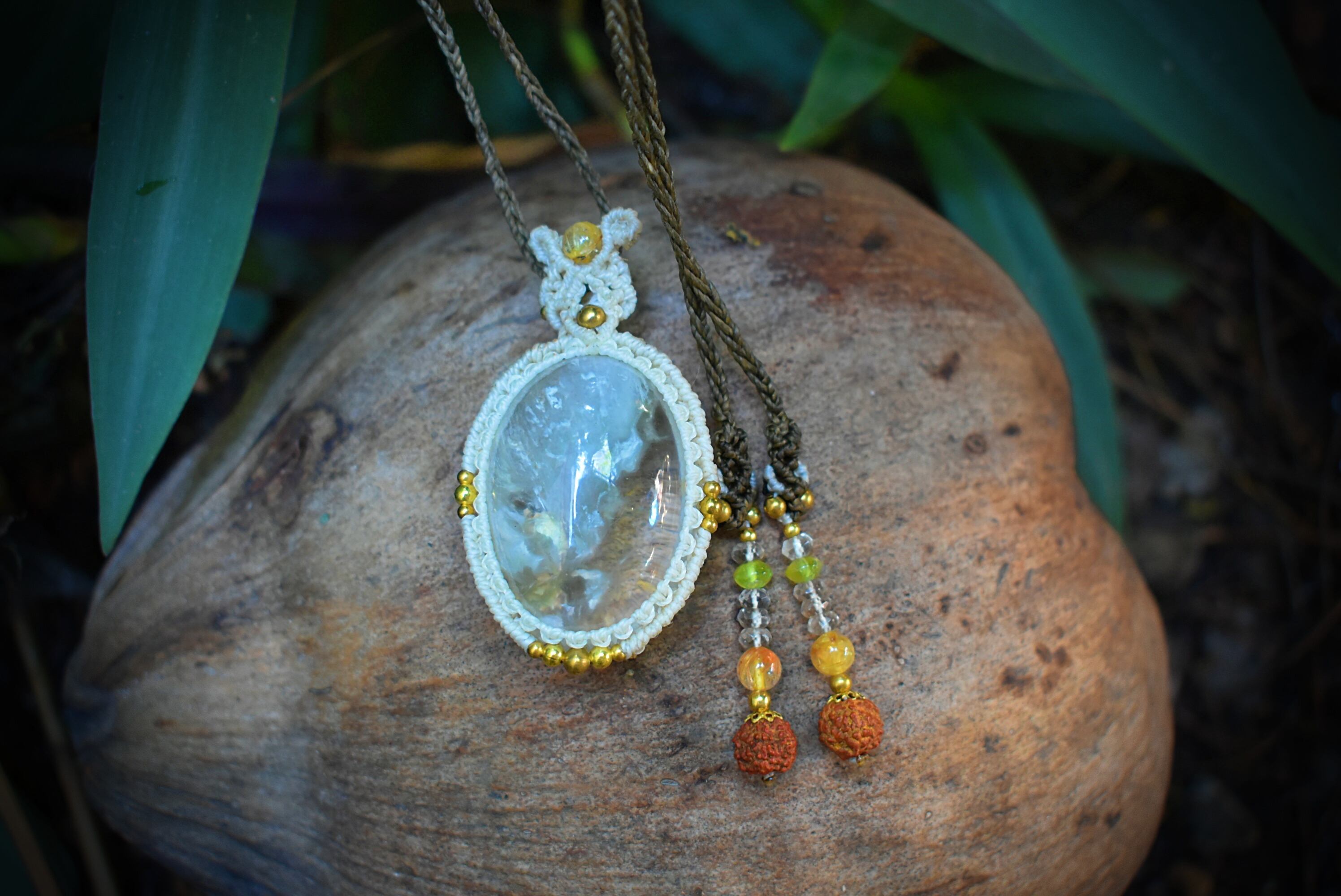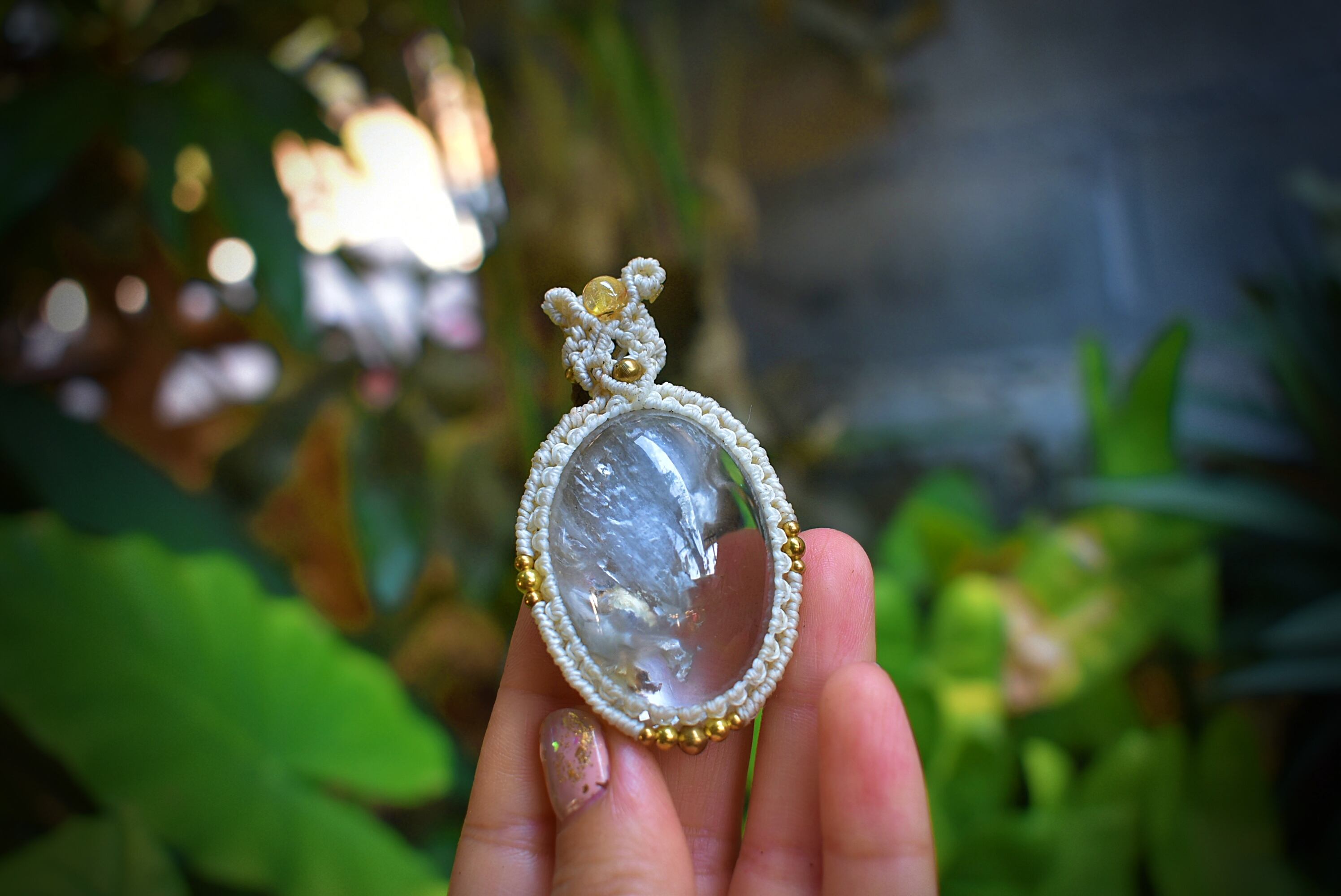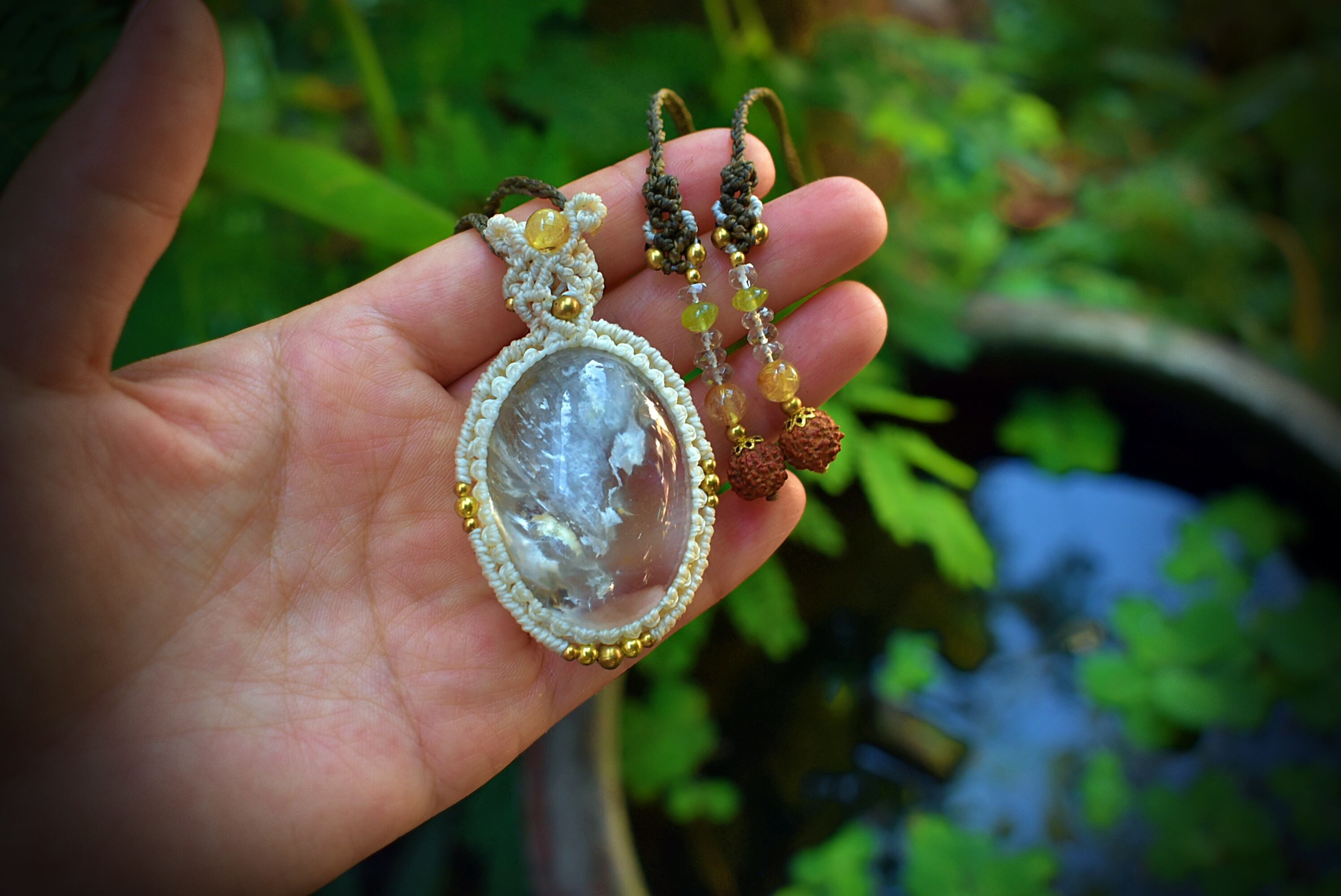 幸せしるし★大粒★ホワイトガーデンクォーツ マクラメペンダント