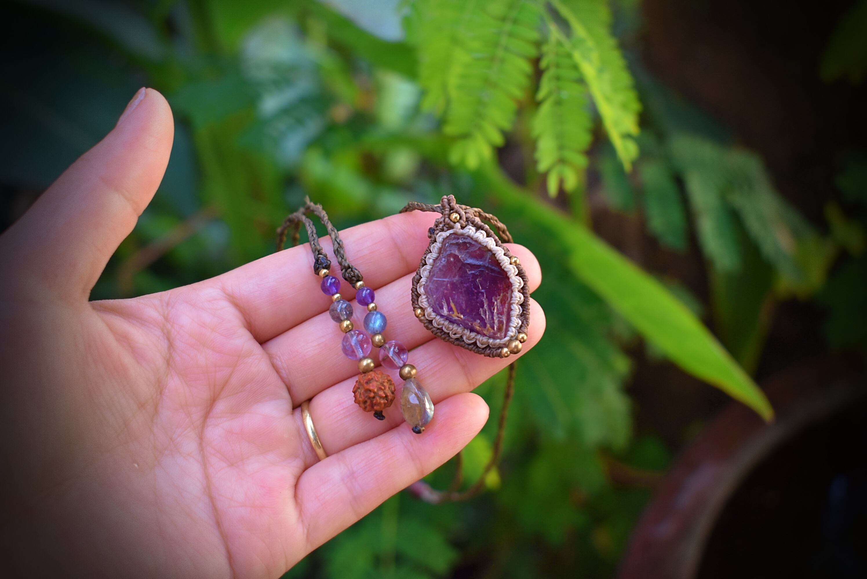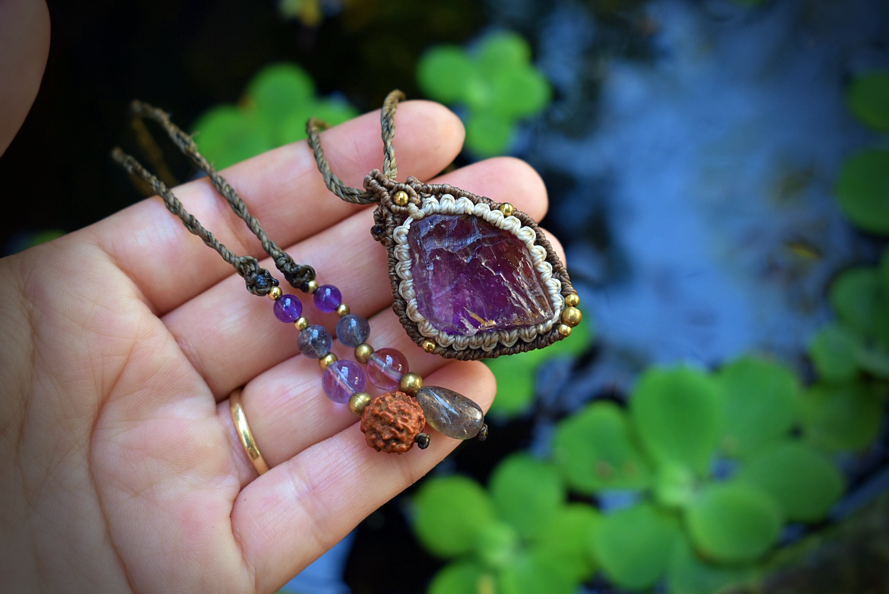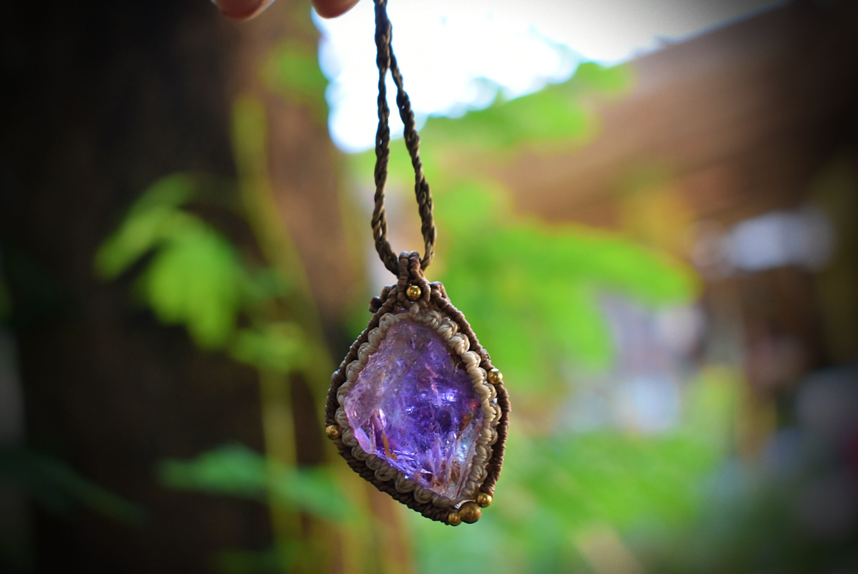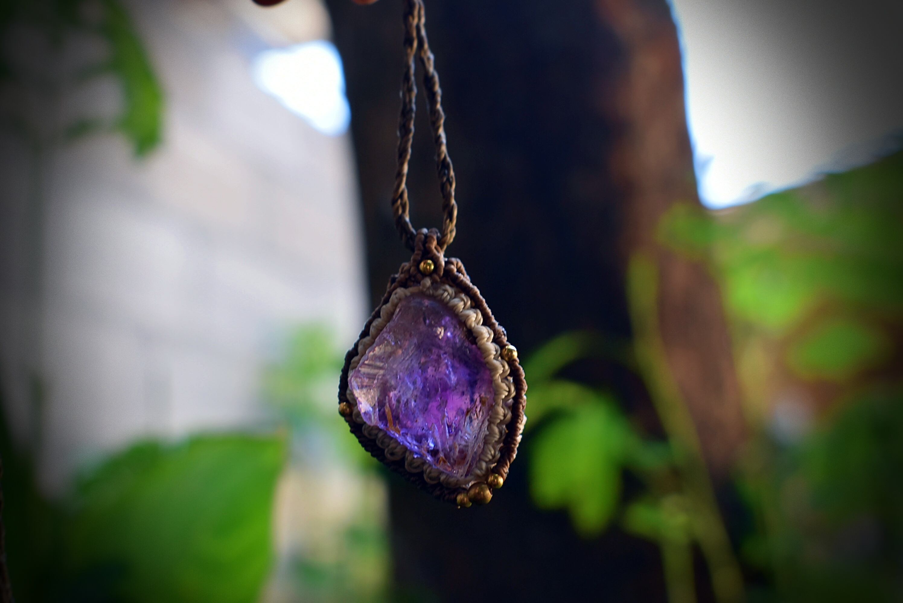 愛のお守り★高品質アメジスト原石 マクラメペンダント