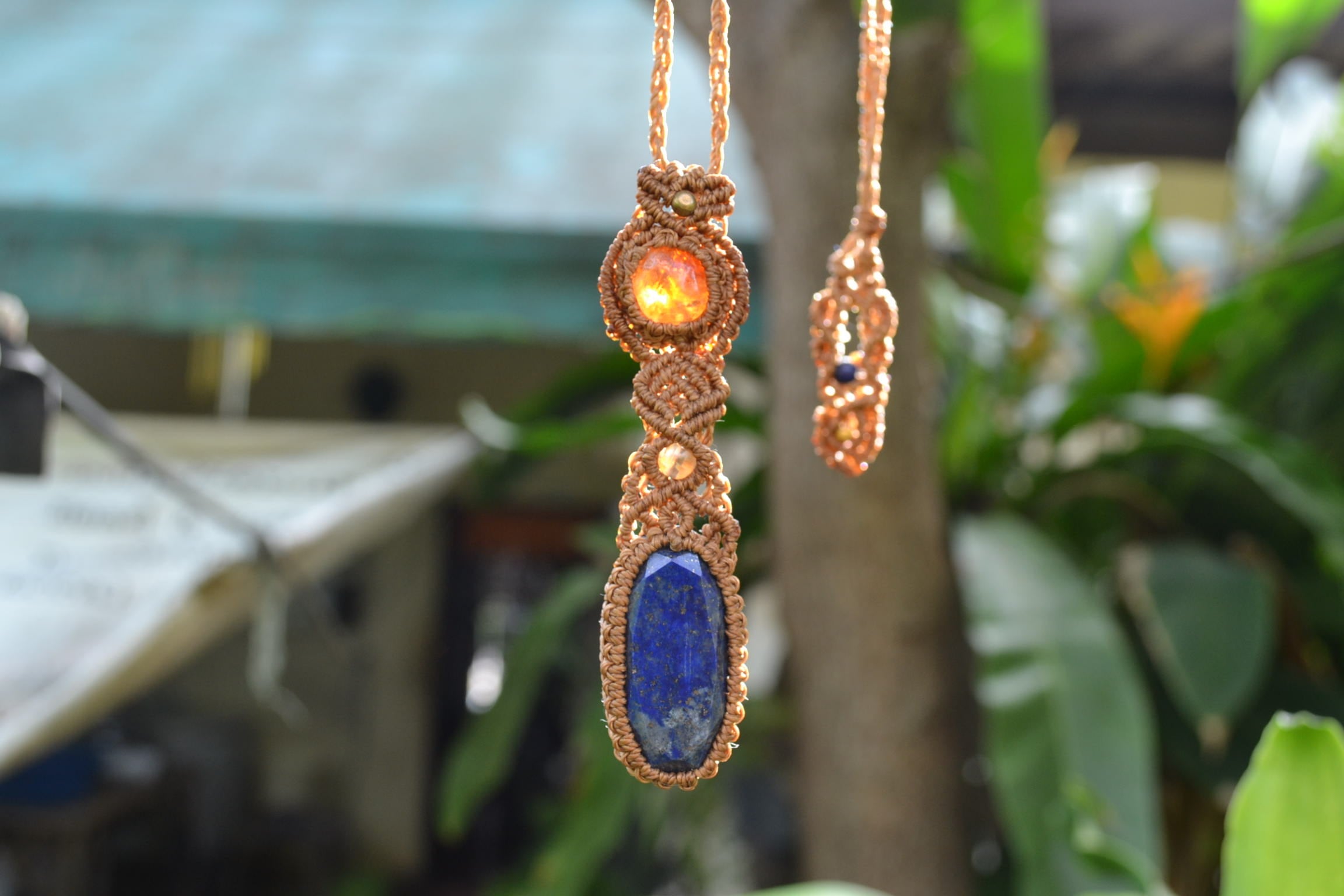 シトリン &ラピスラズリ2連マクラメペンダントネックレス