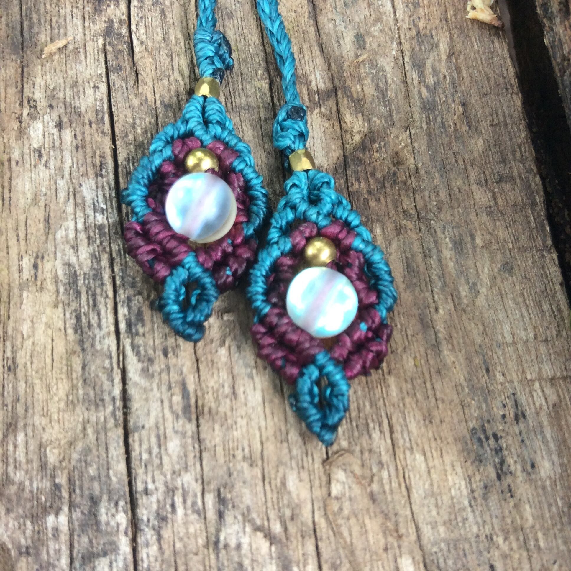 紐のエンド部分はネックレスを装着した際に、後ろから見てポイントになるよう、ムーンストーンビーズをあしらい、その周りをさらに包み込むようにマクラメ編み装飾を施しました。