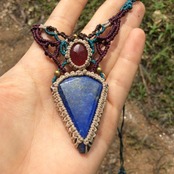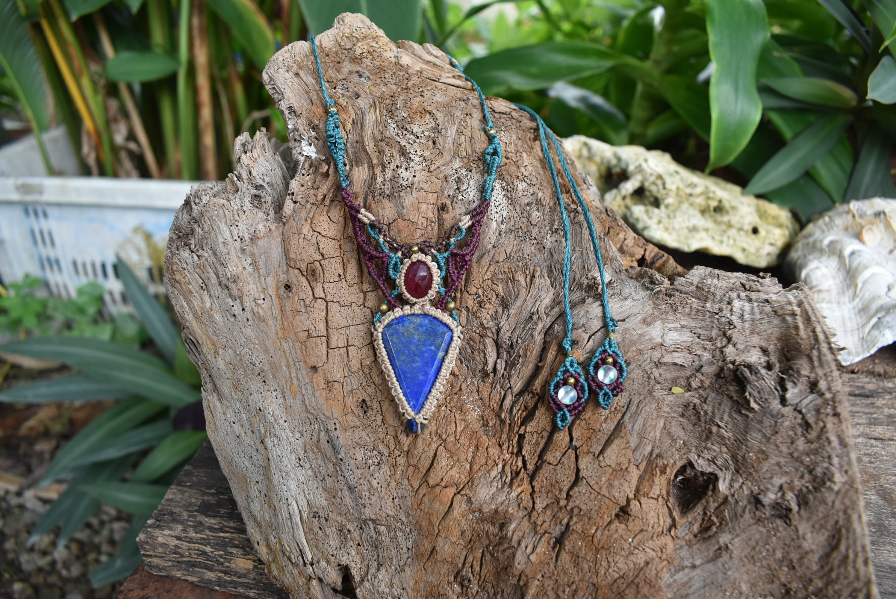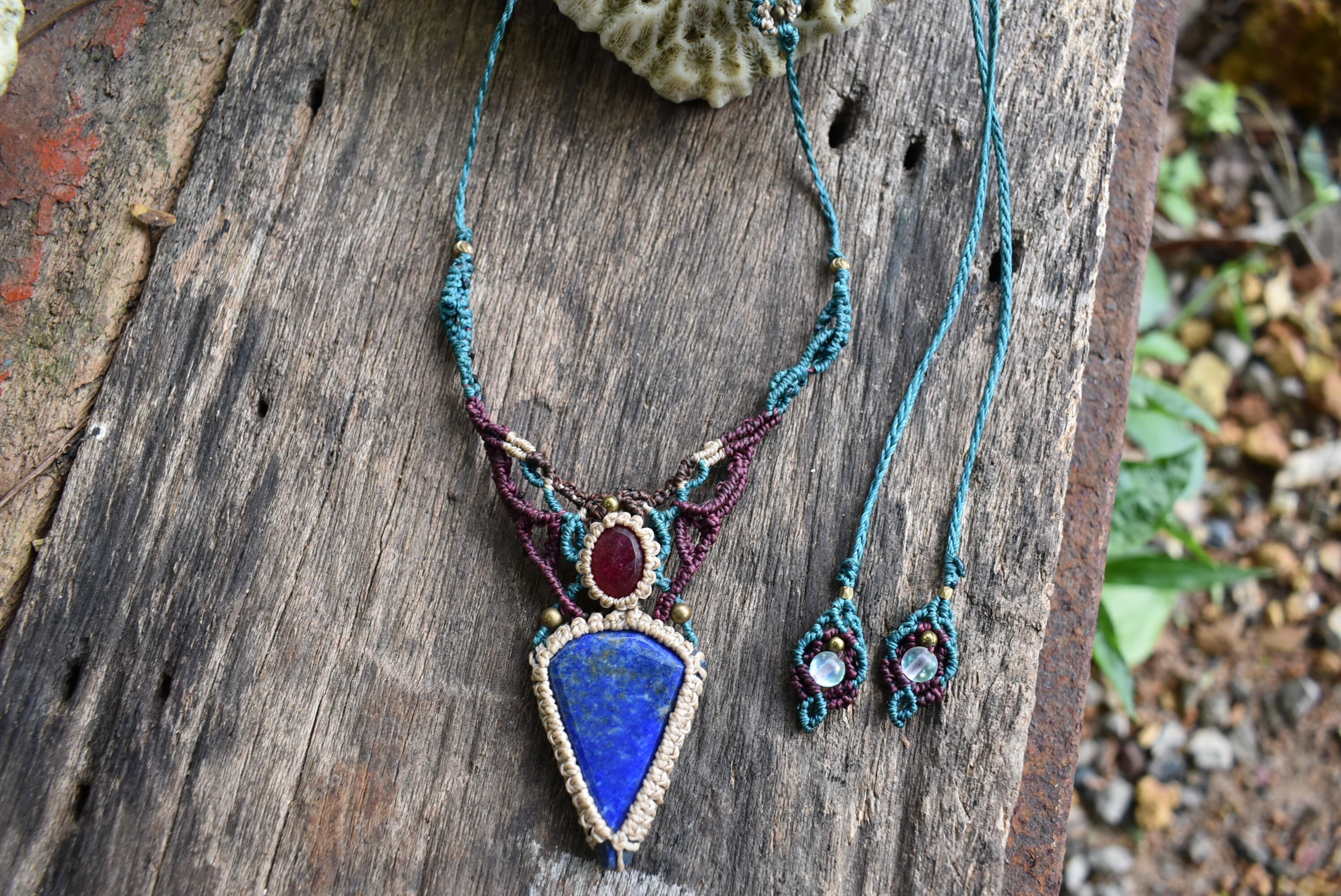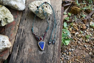 ラピスラズリ&レッドスピネル2連マクラメネックレス