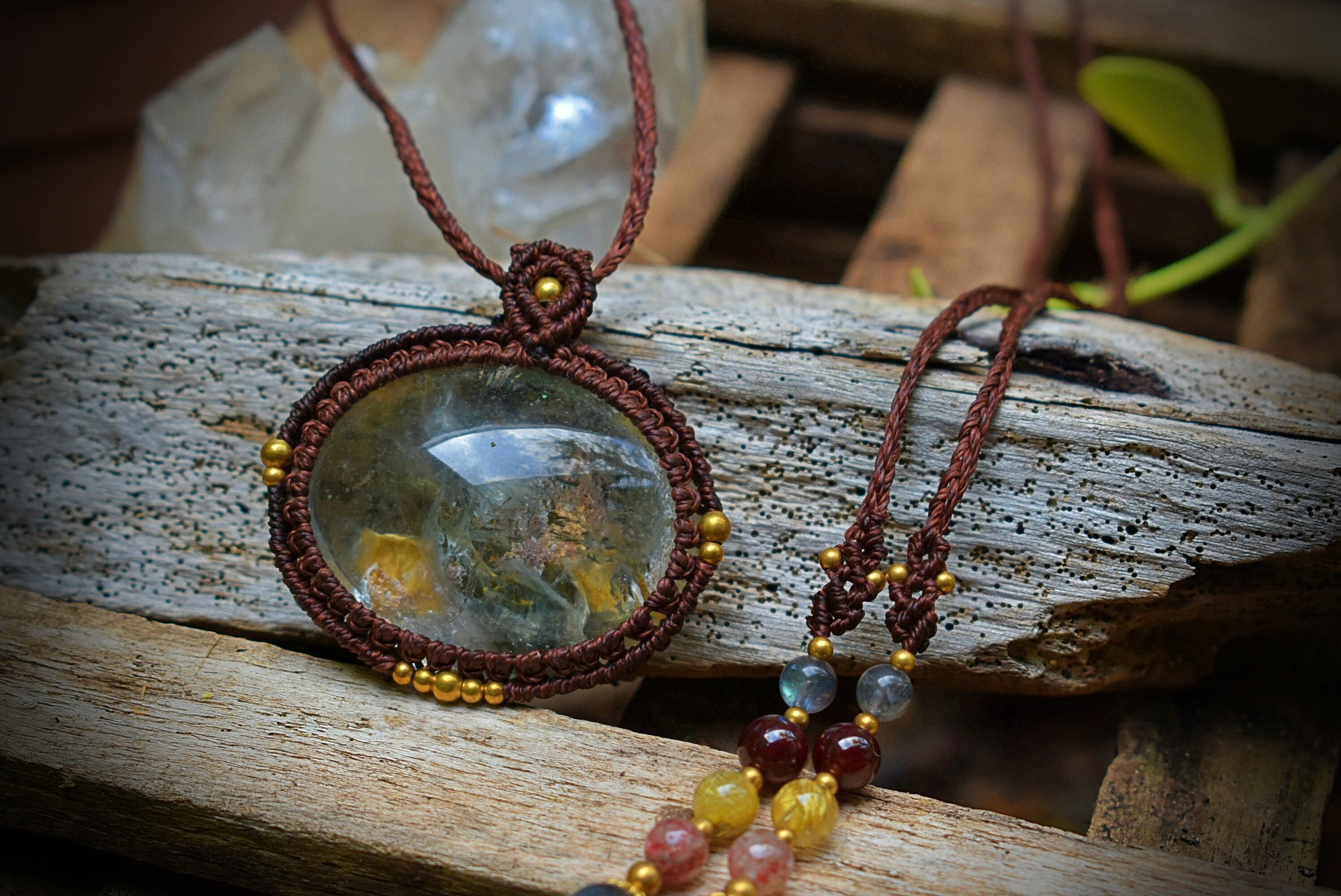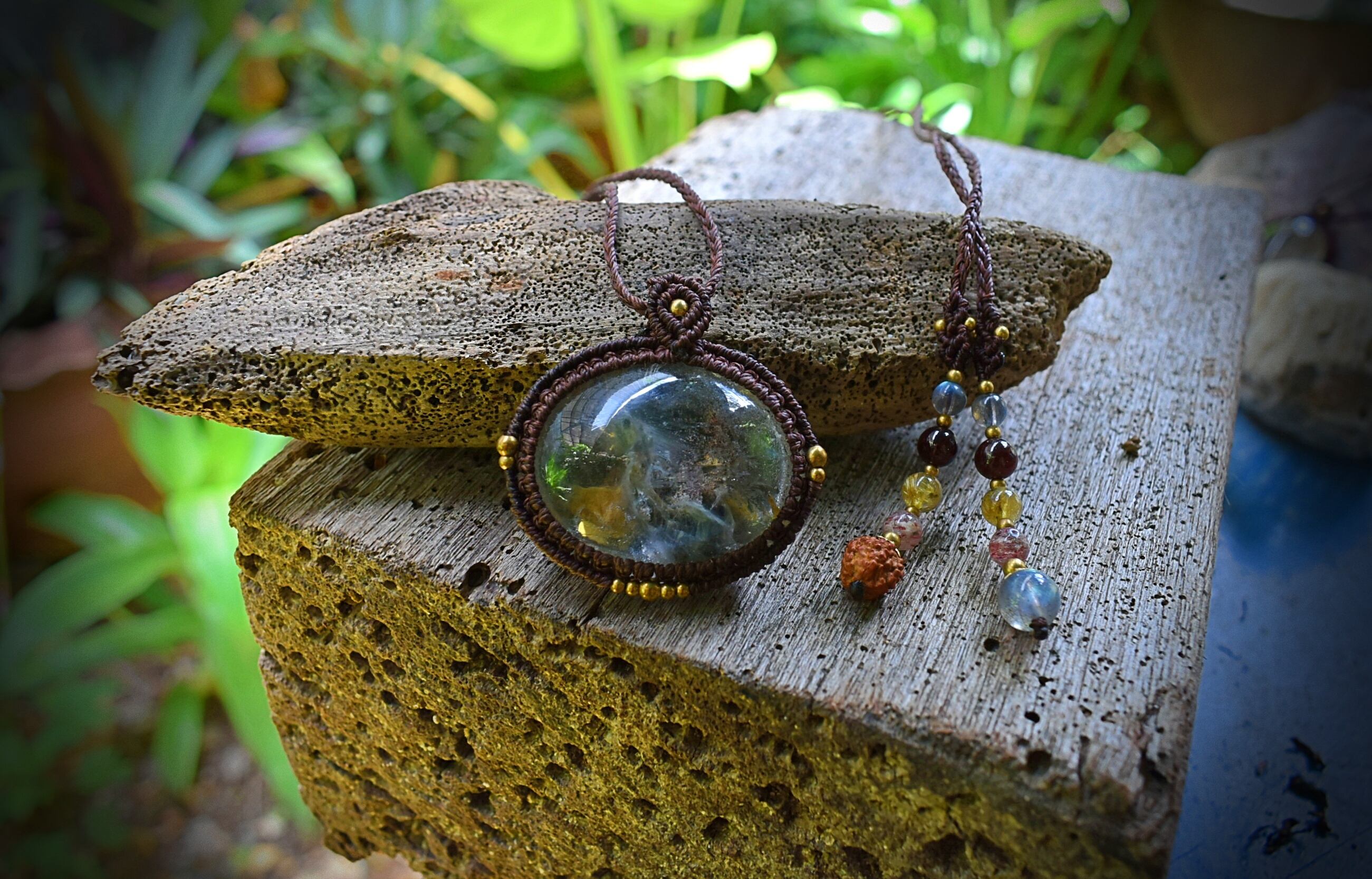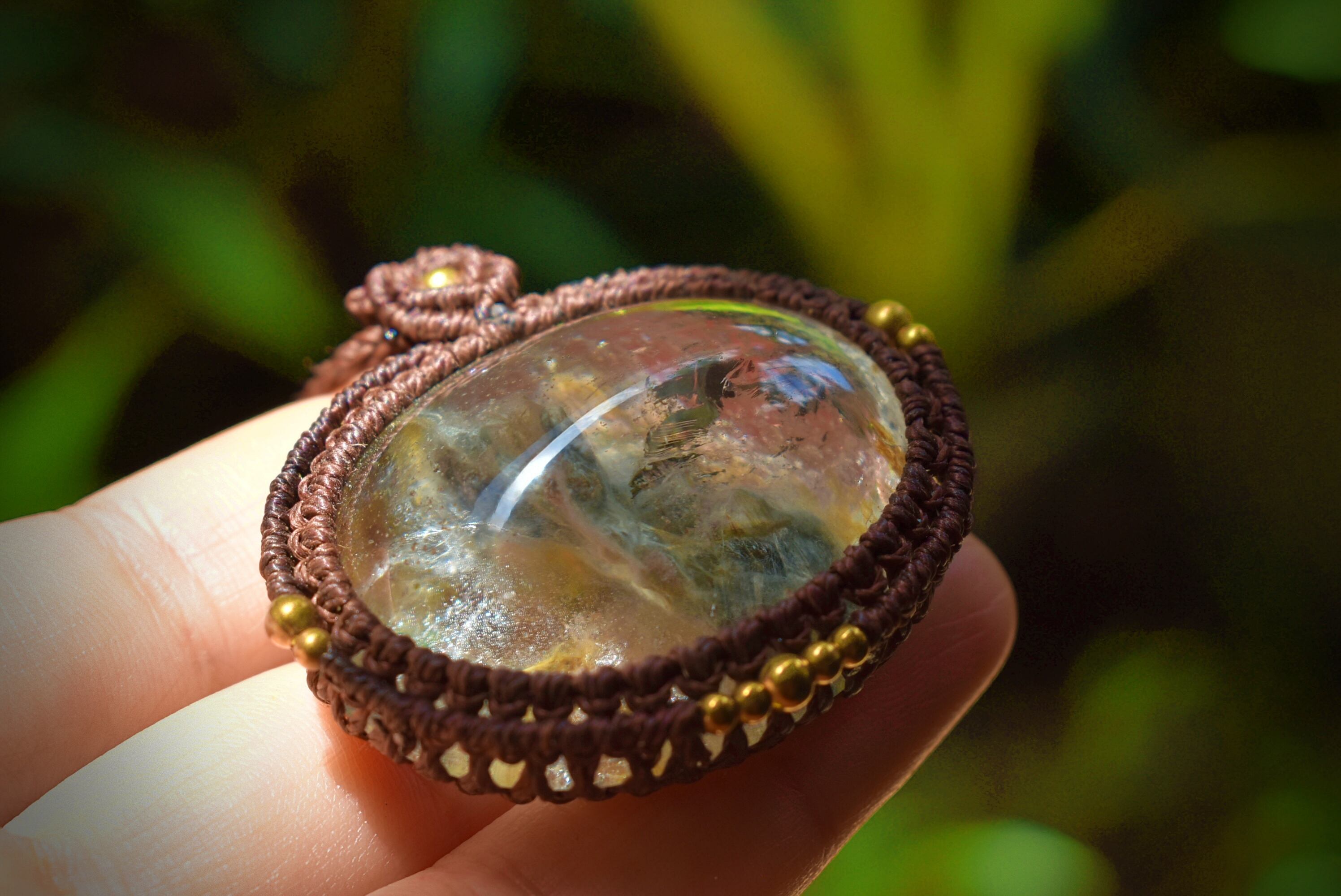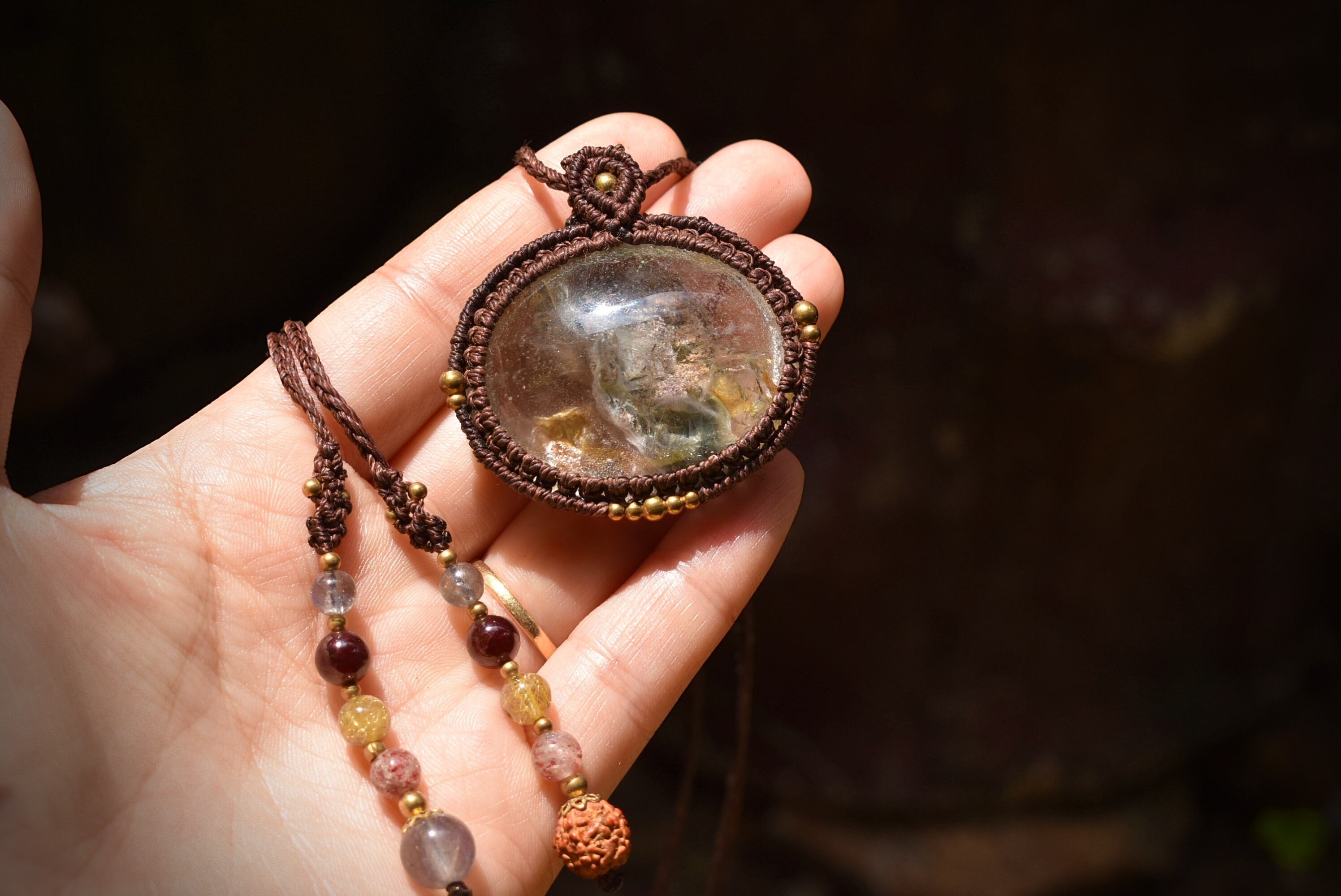 古代の面影★内包物とシラー★ガーデンクォーツ マクラメペンダントgarm046