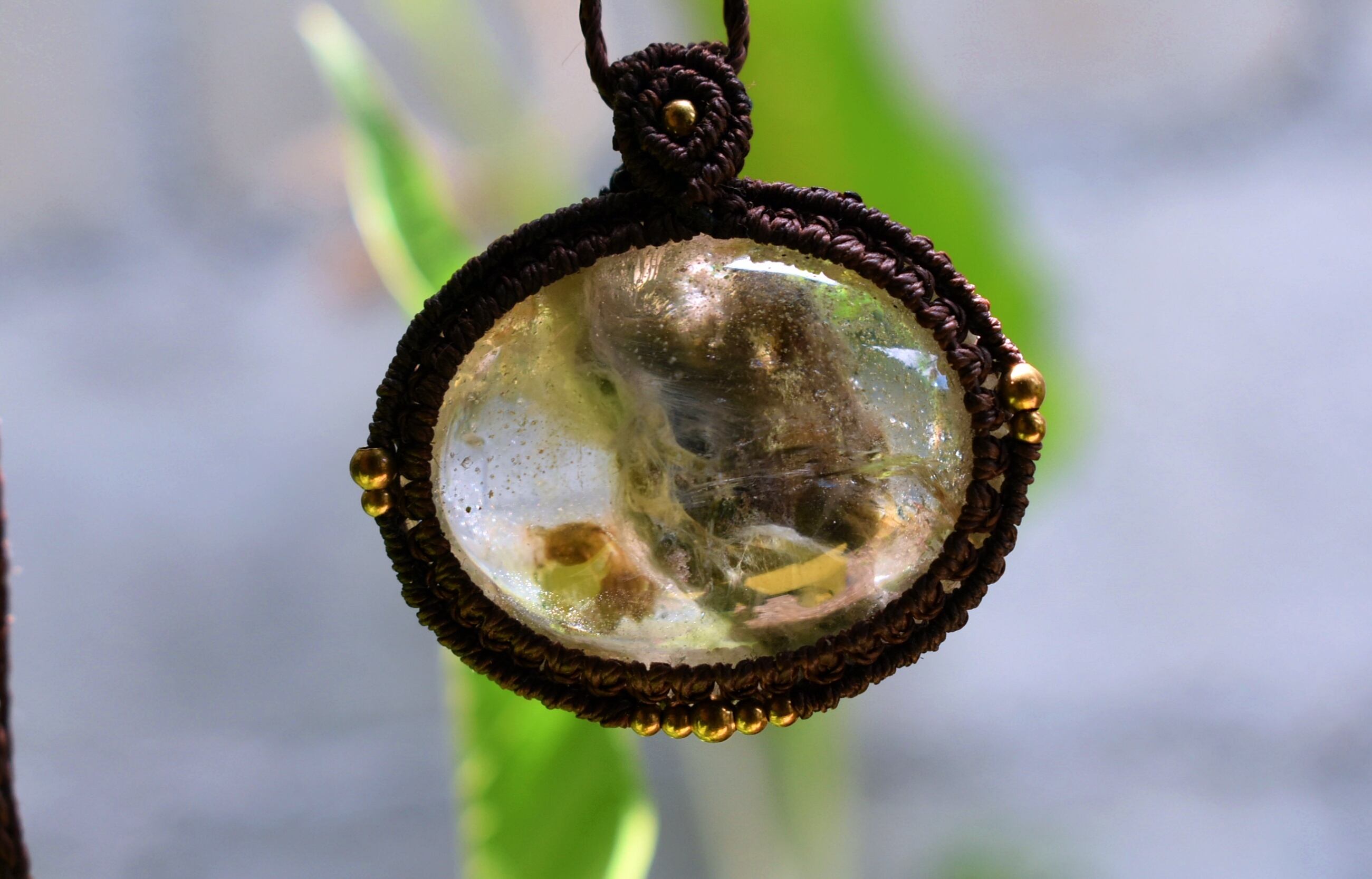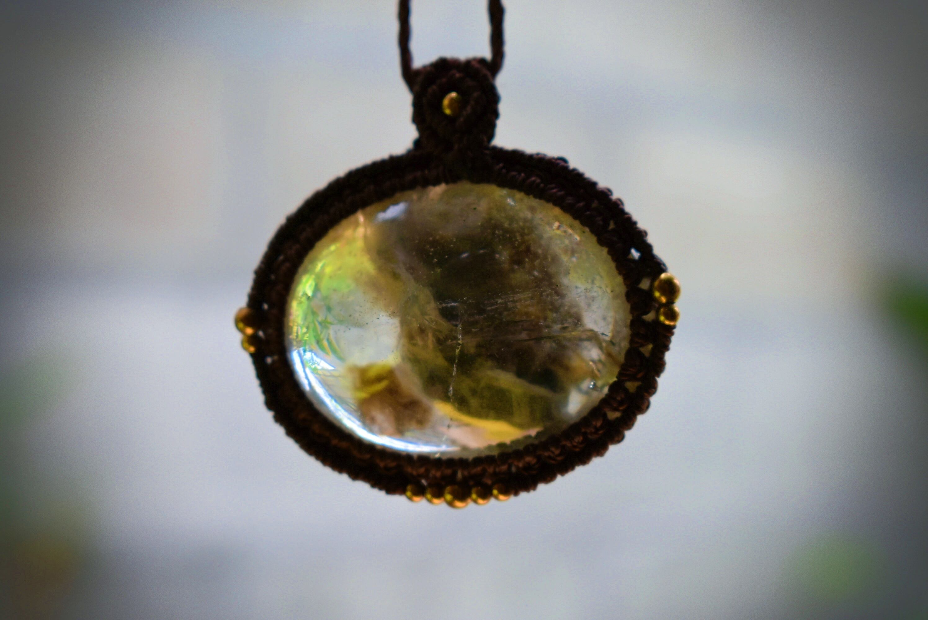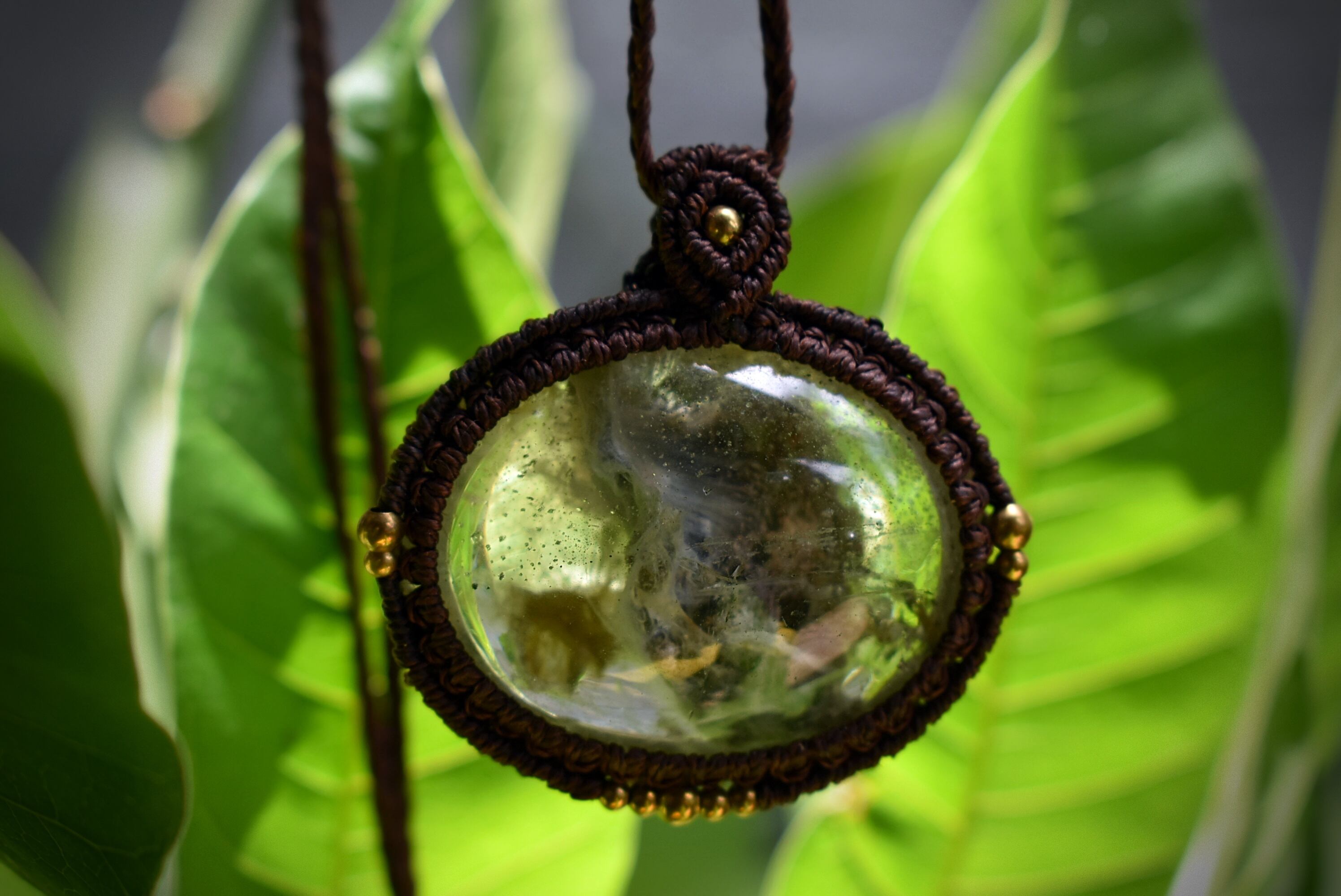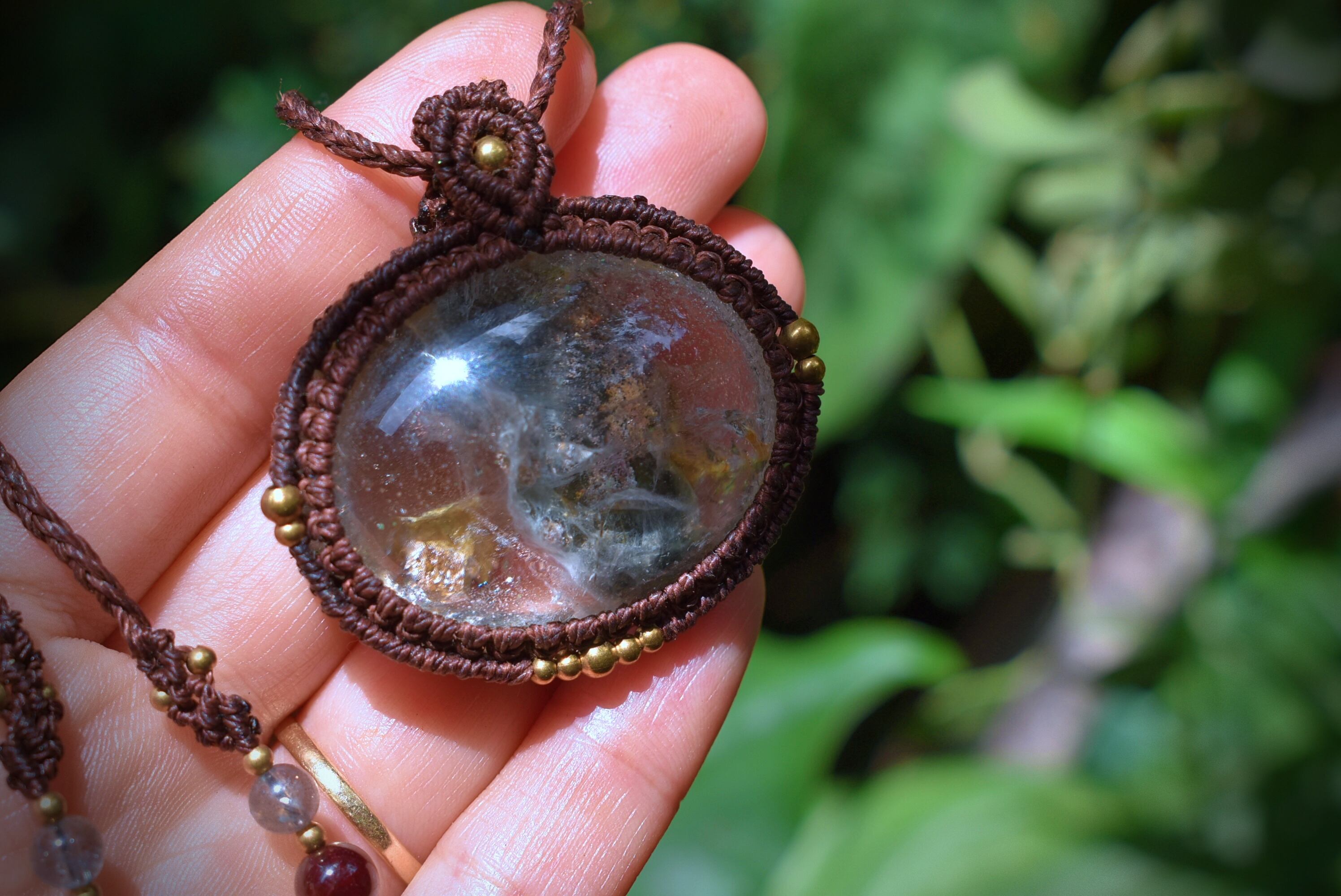 古代の面影★内包物とシラー★ガーデンクォーツ マクラメペンダントgarm046