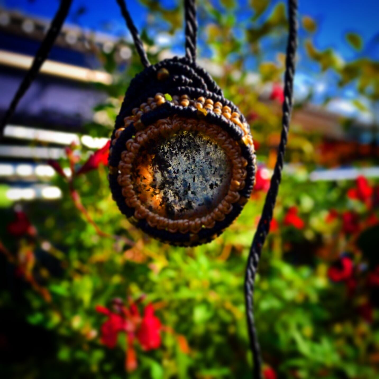 ブラックルチルクオーツマクラメペンダントネックレスbl003