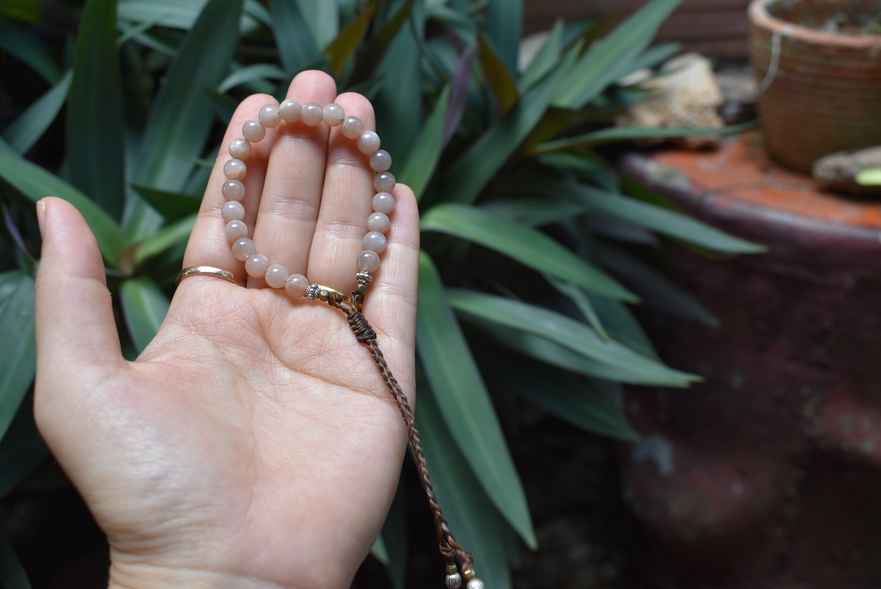 チラホラと光るムーンストーンがお手元を女性らしく彩ってくれます。