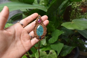 憧れルビーとターコイズの出逢い★アンティーク仕立て★マクラメペンダントtur002