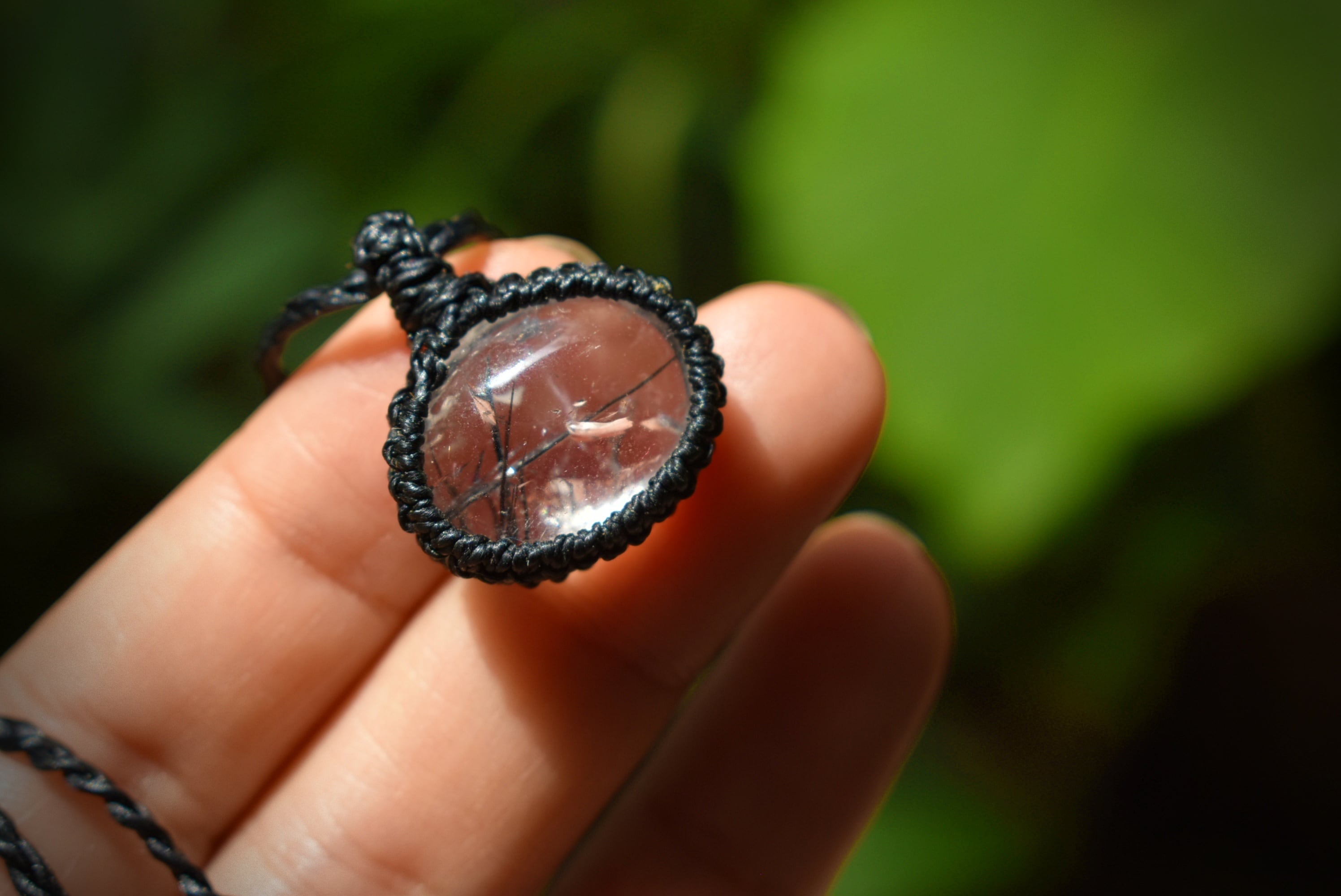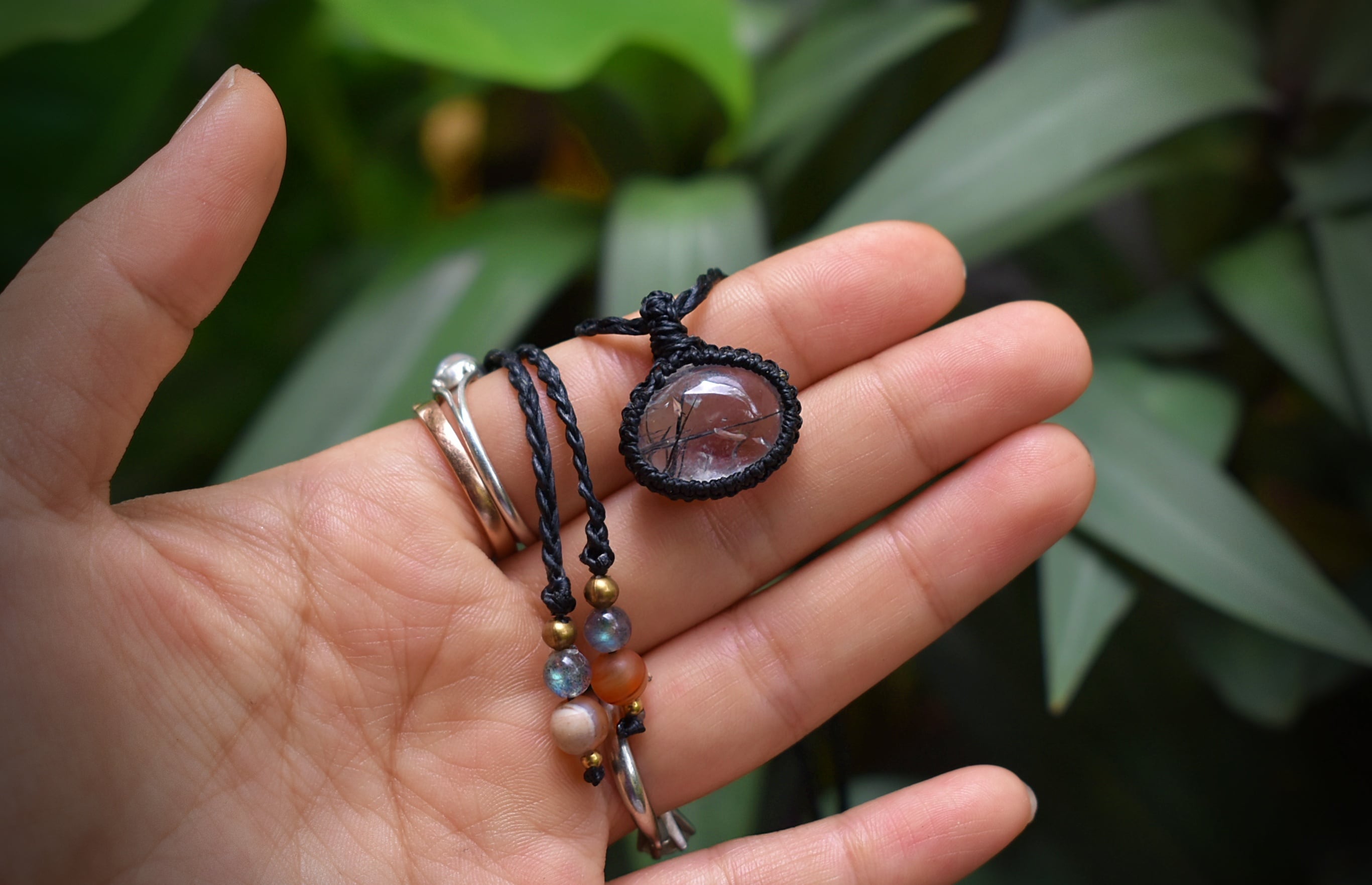 虹入り★ブラックルチル★mini★ブラックルチルマクラメペンダントgar157