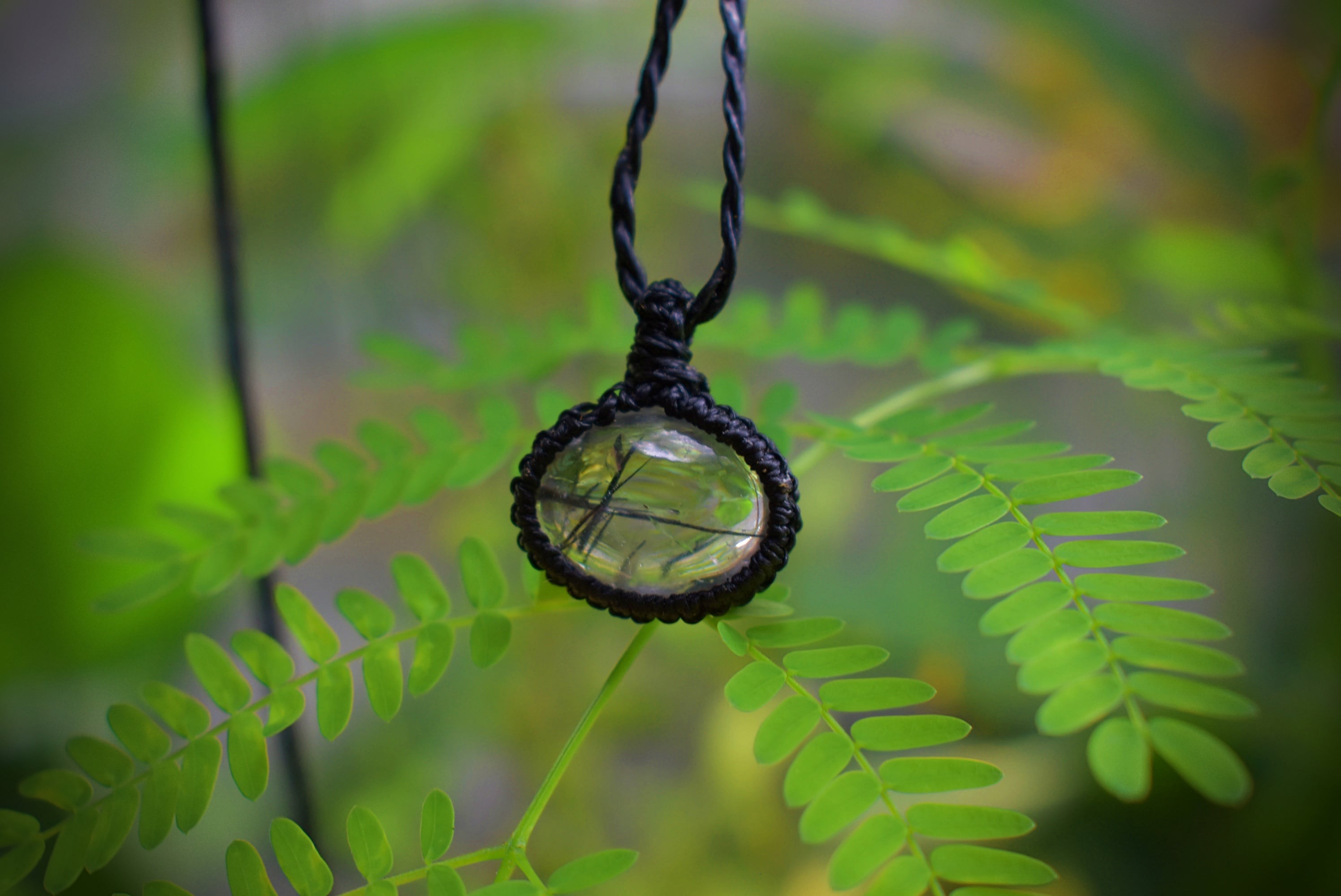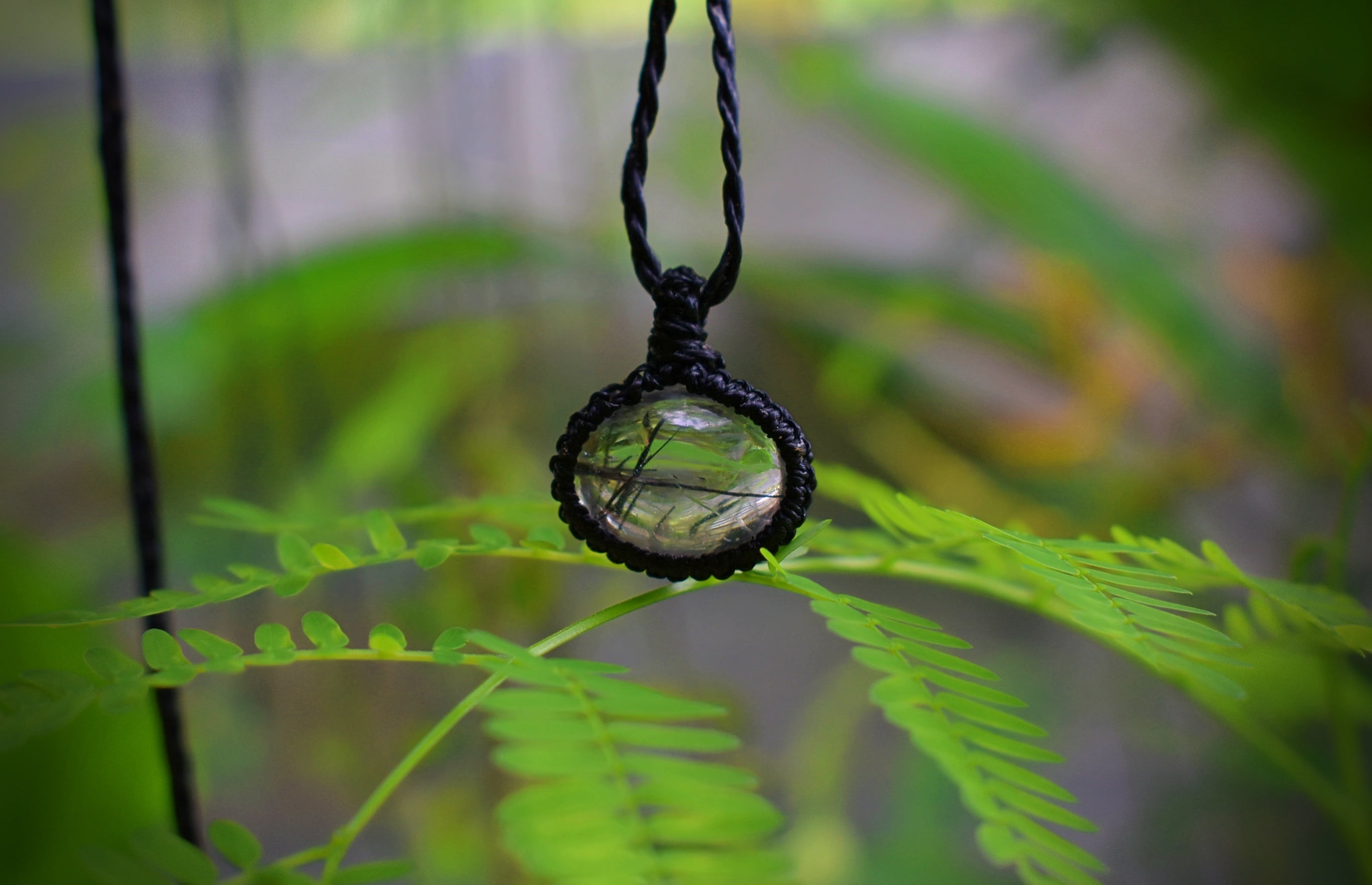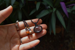 このたびはシンプルにこの石をマクラメ編みペンダントに仕上げました。