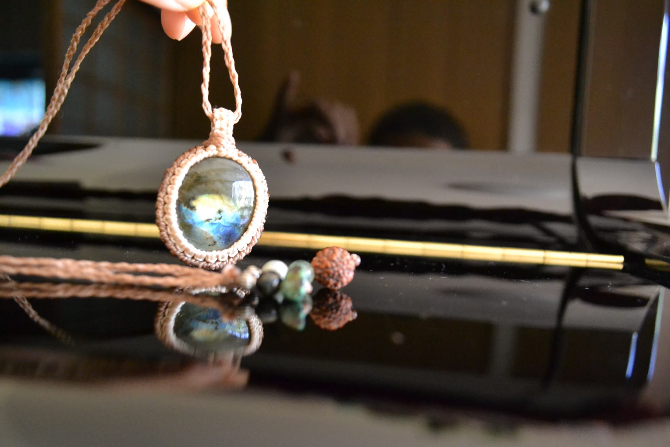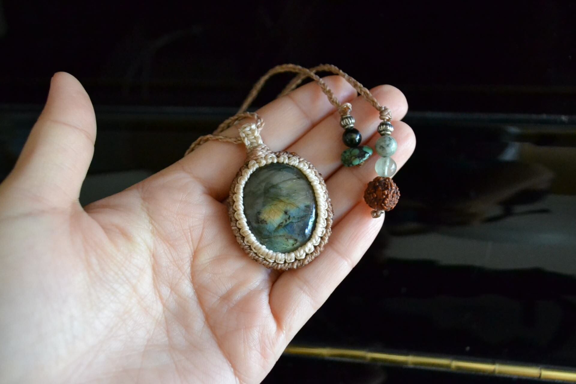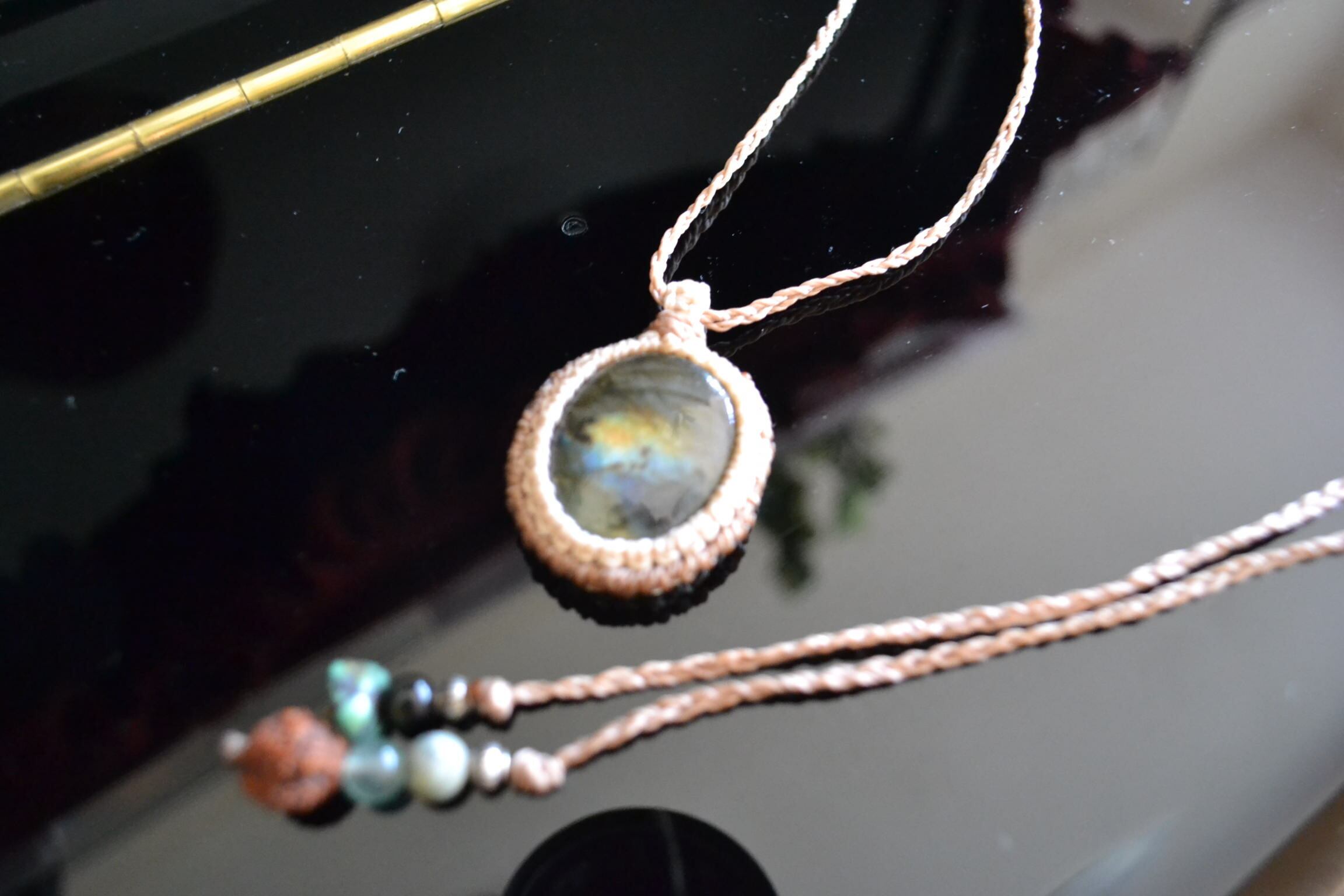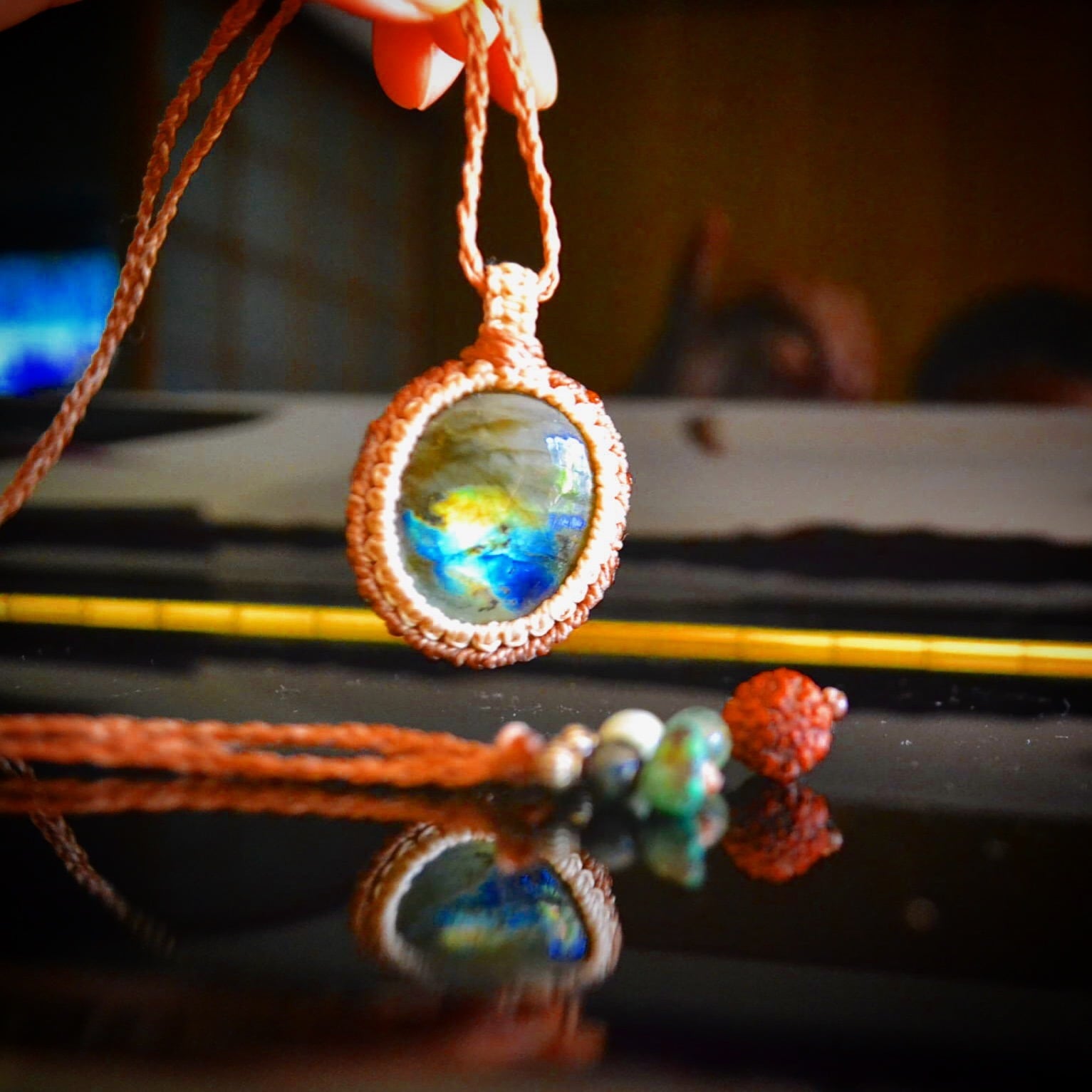 虹色★レインボーラブラドライトマクラメペンダントネックレス