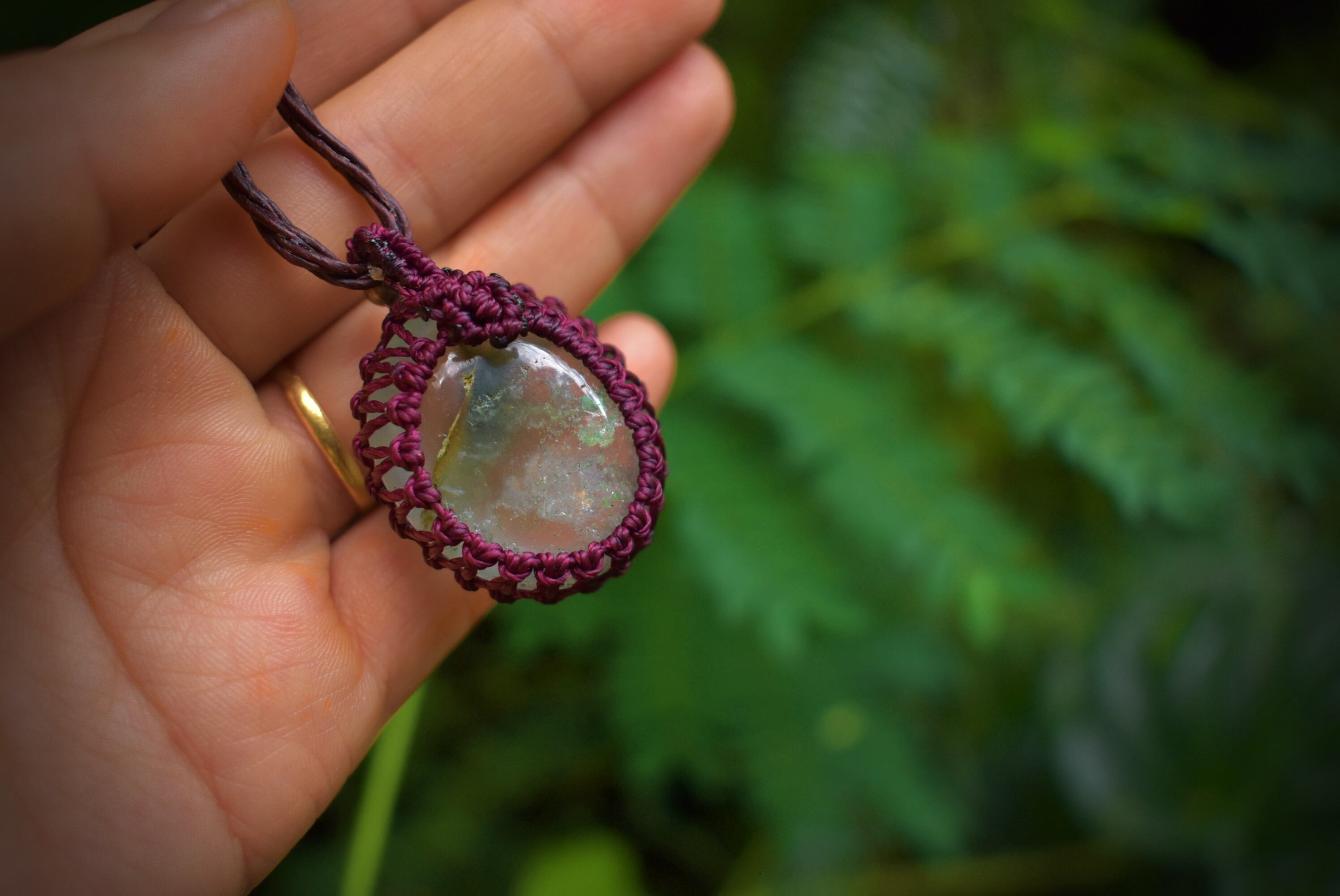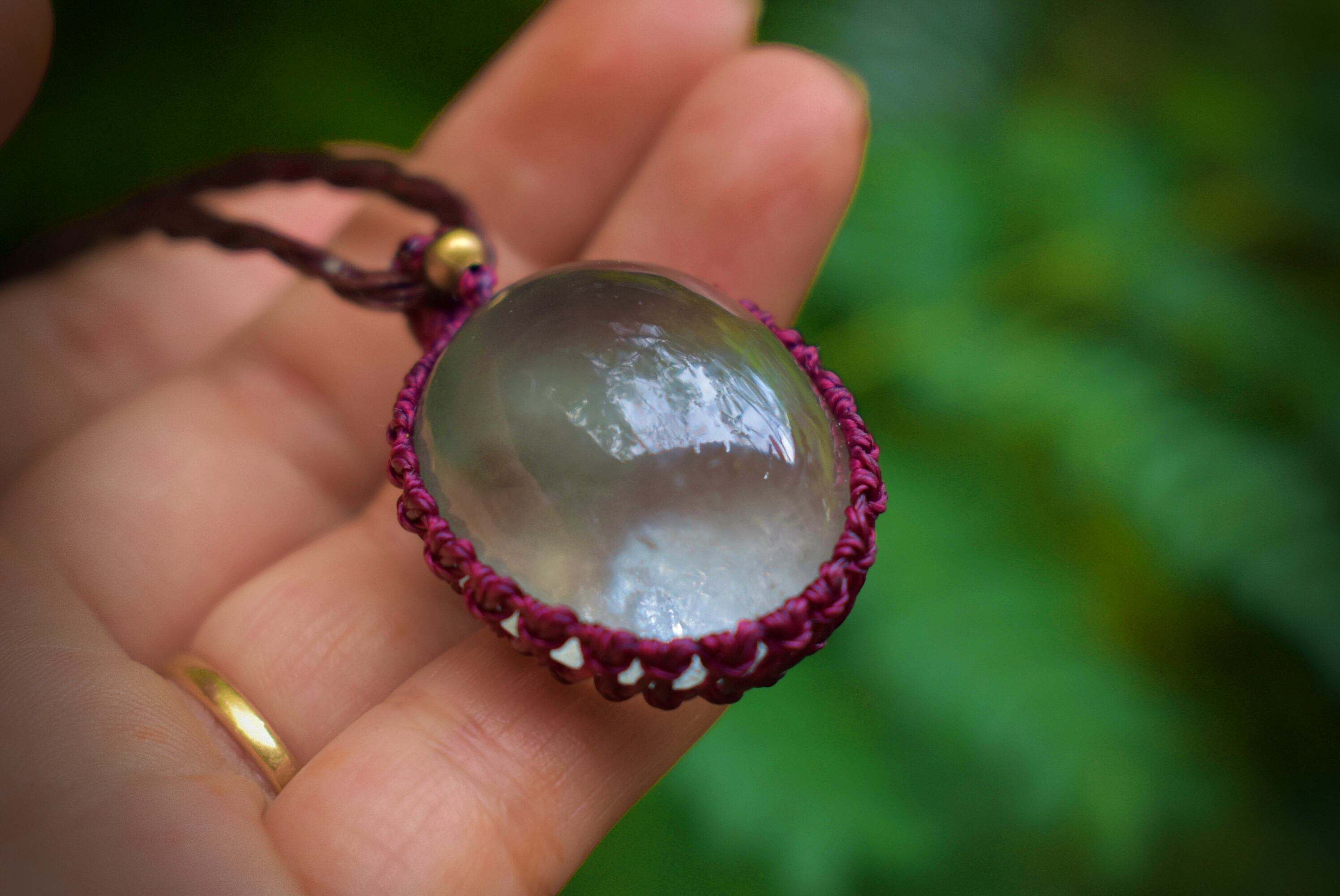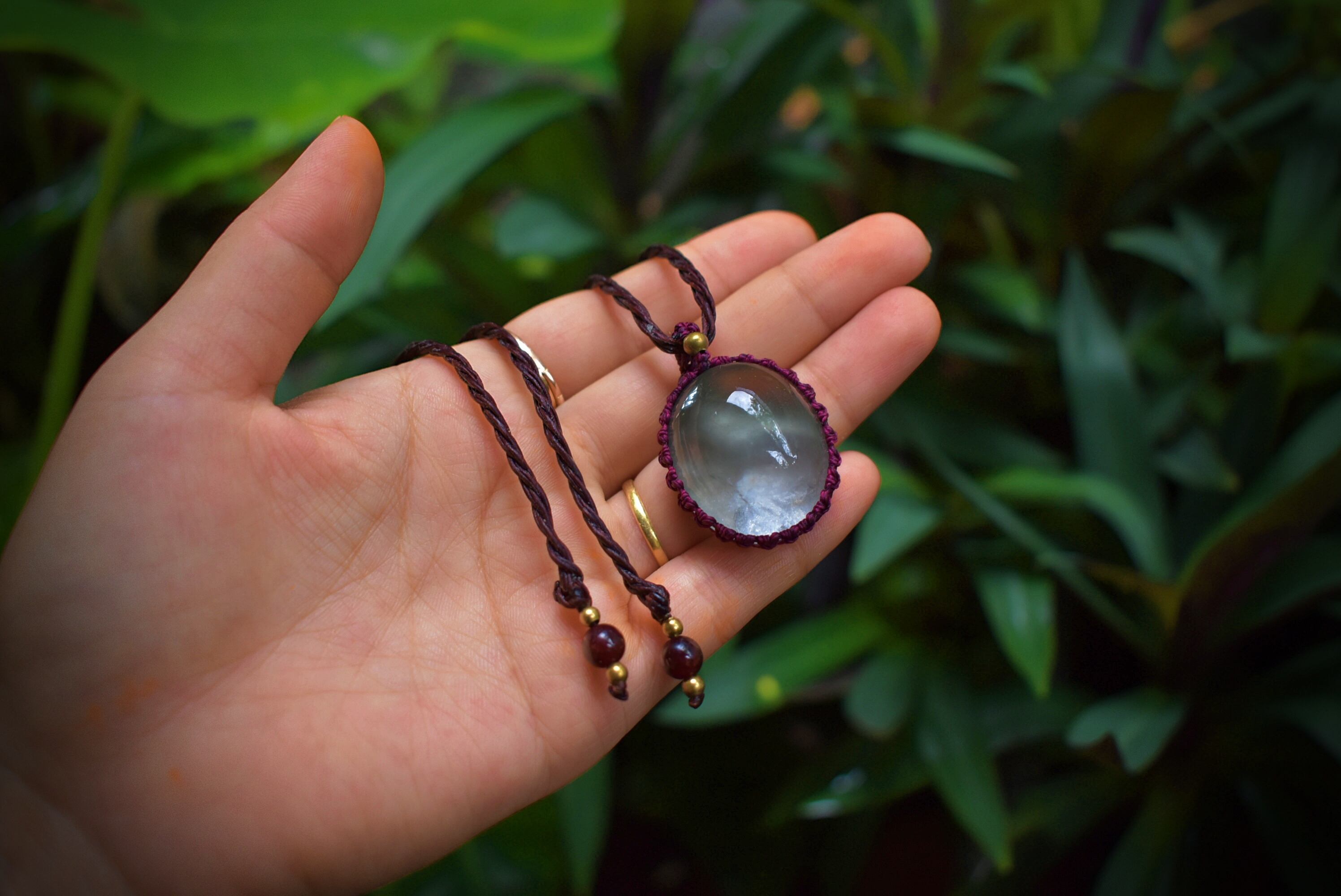 虹入り★水晶の霧と星★ガーデンクォーツ マクラメペンダントgarm050