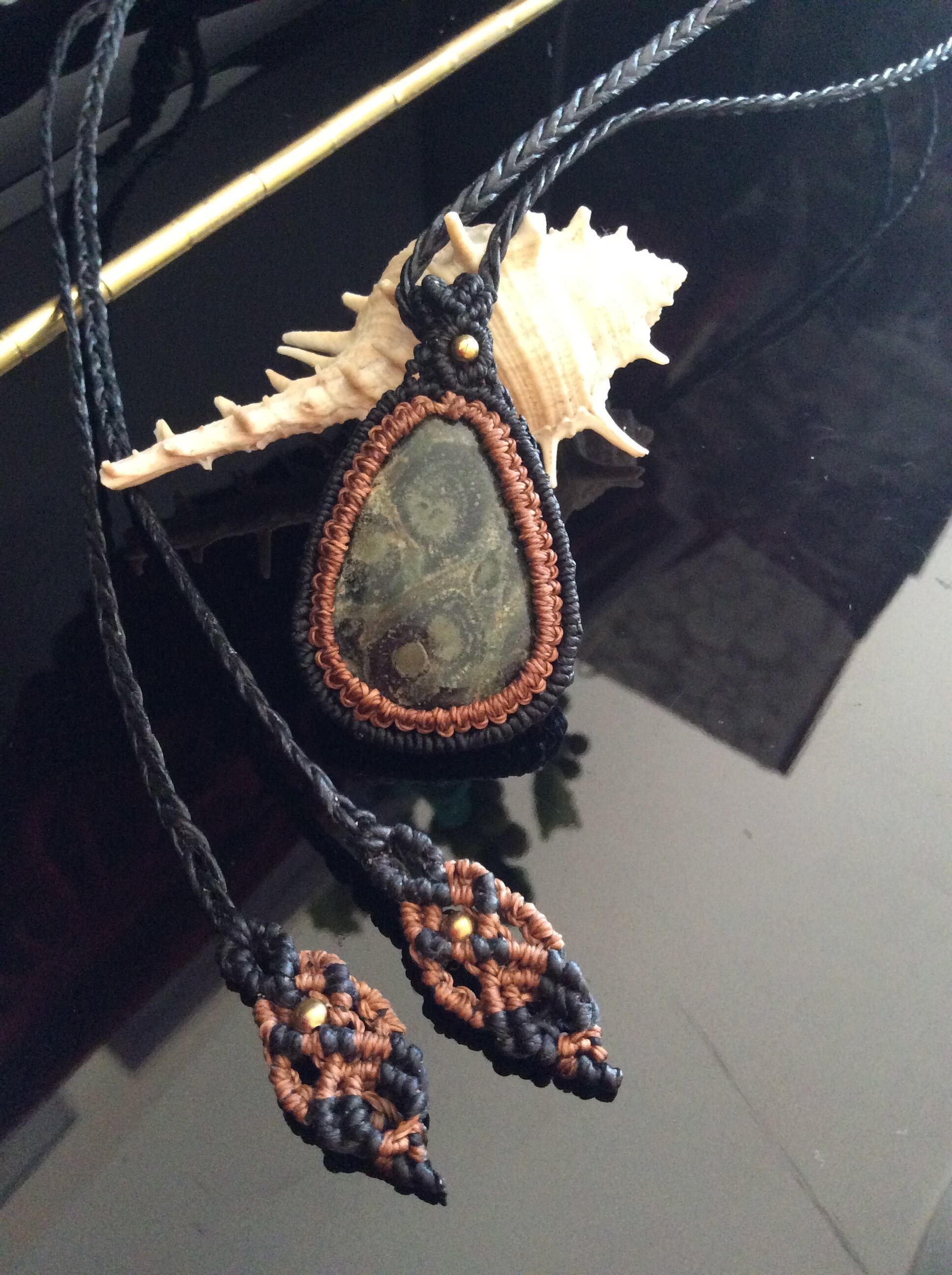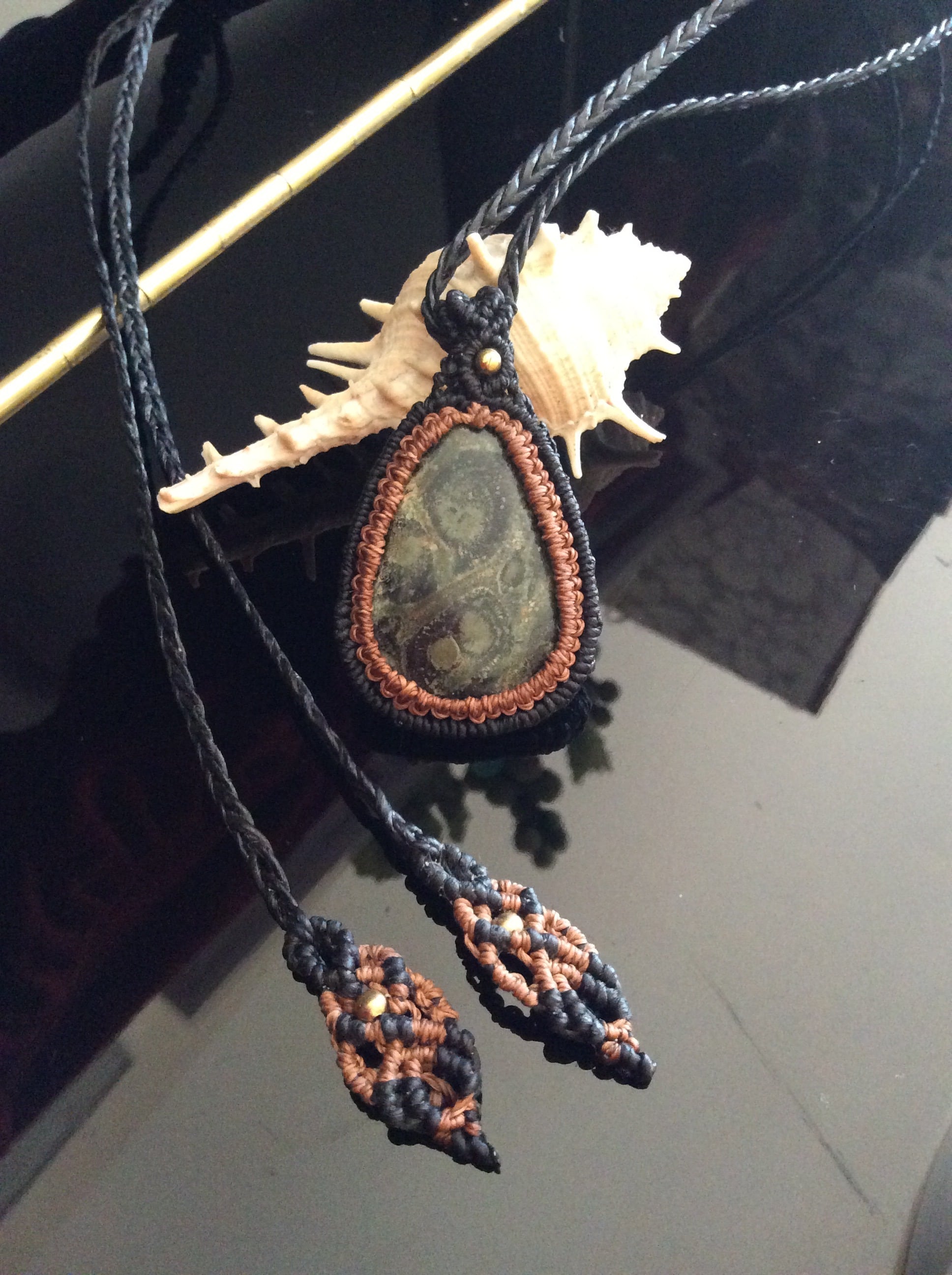 どことなく、かっこ良くもあり、アーティスティック。石の雰囲気をそのまま大切にしてシンプルにマクラメ編み装飾を施しました。