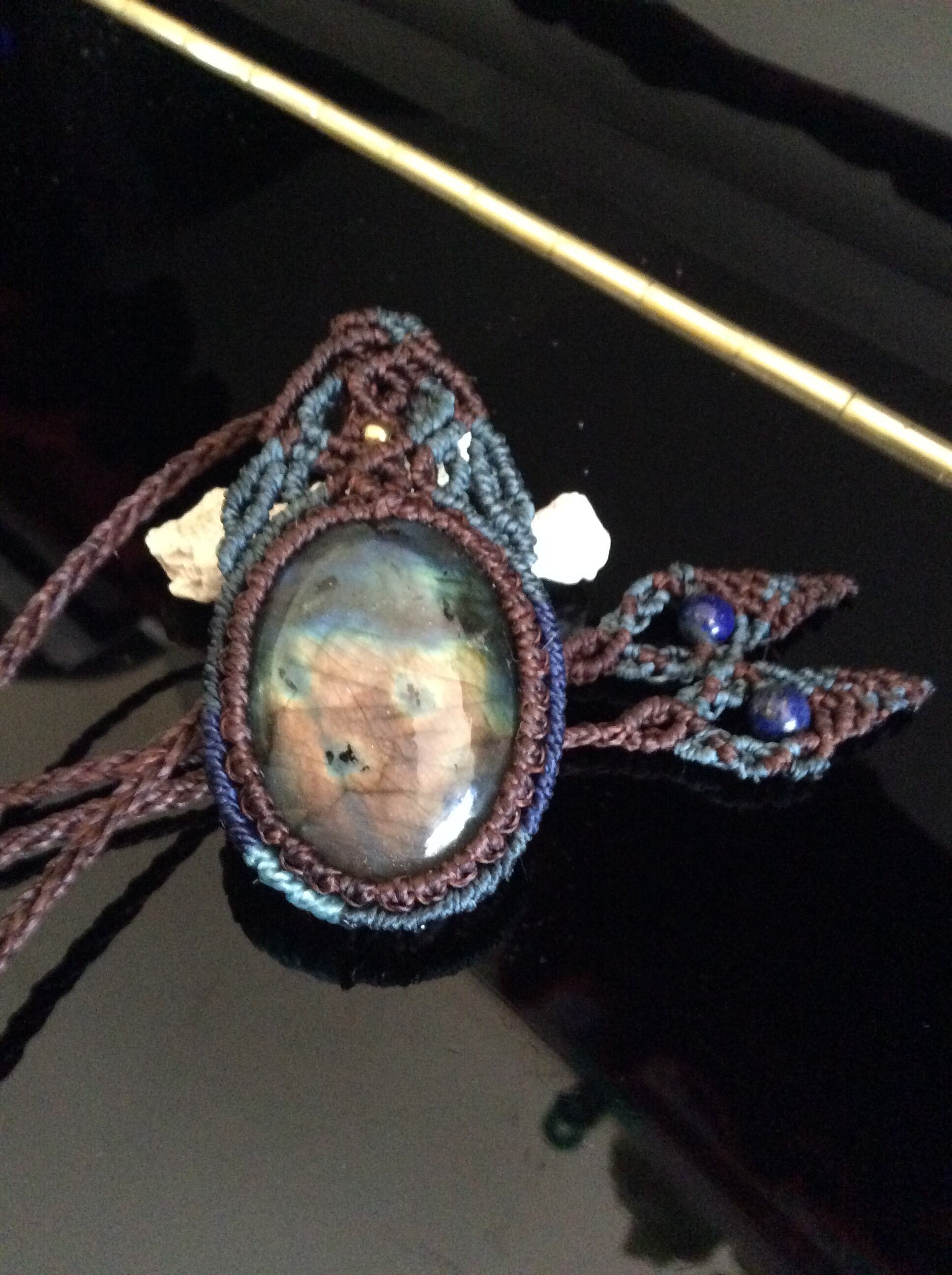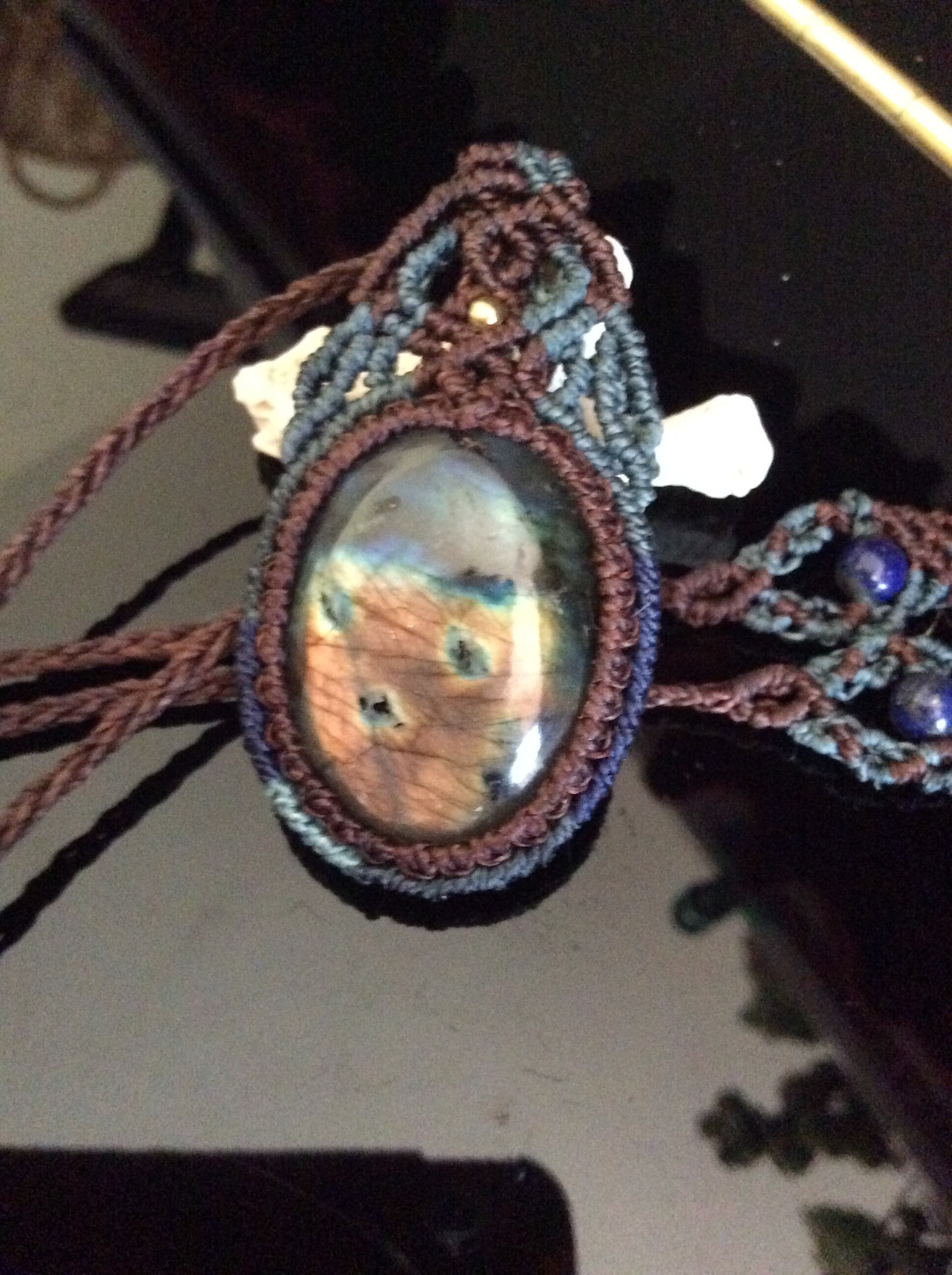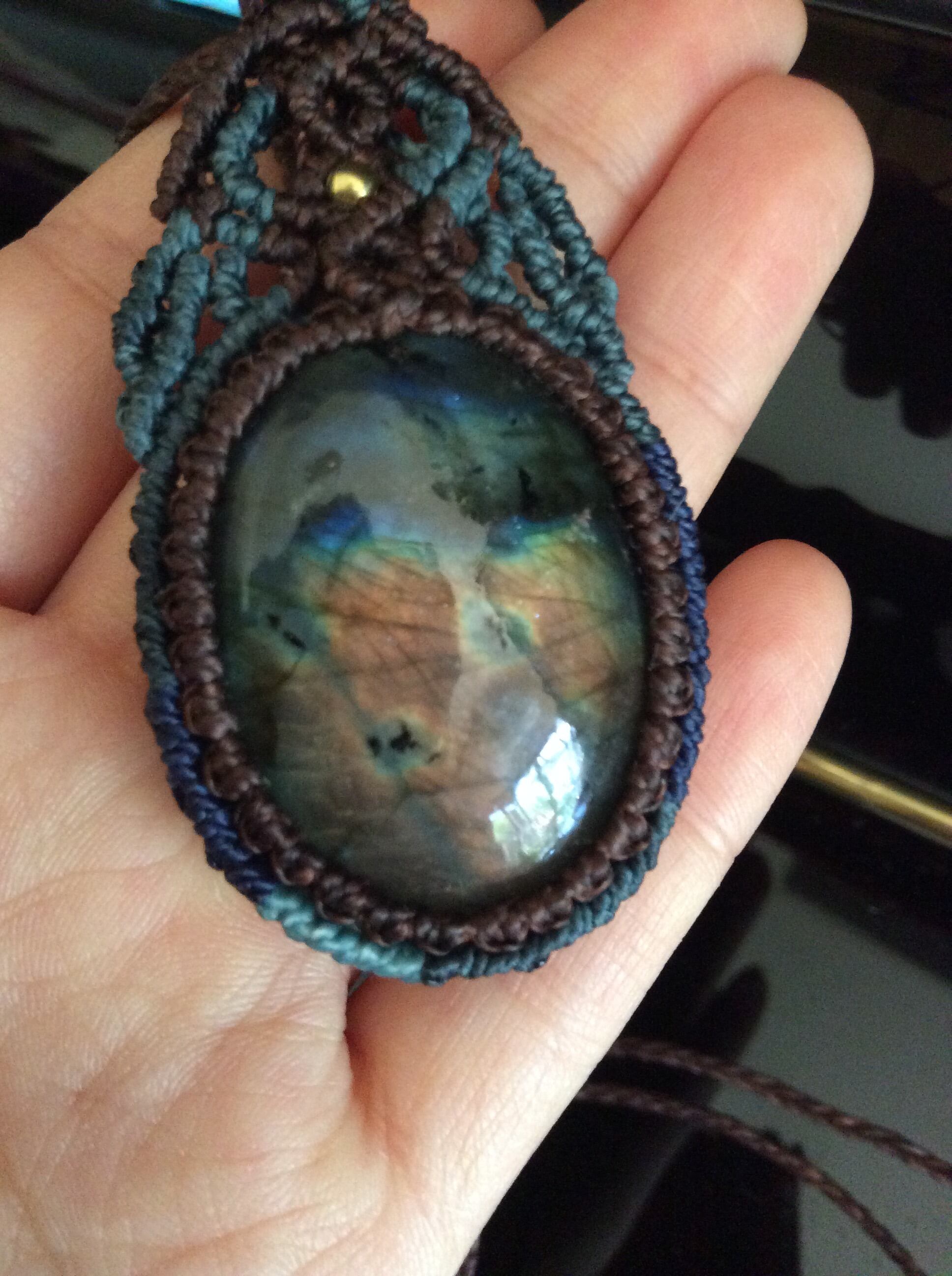 マルチカラー☆ラブラドライトマクラメペンダントネックレス