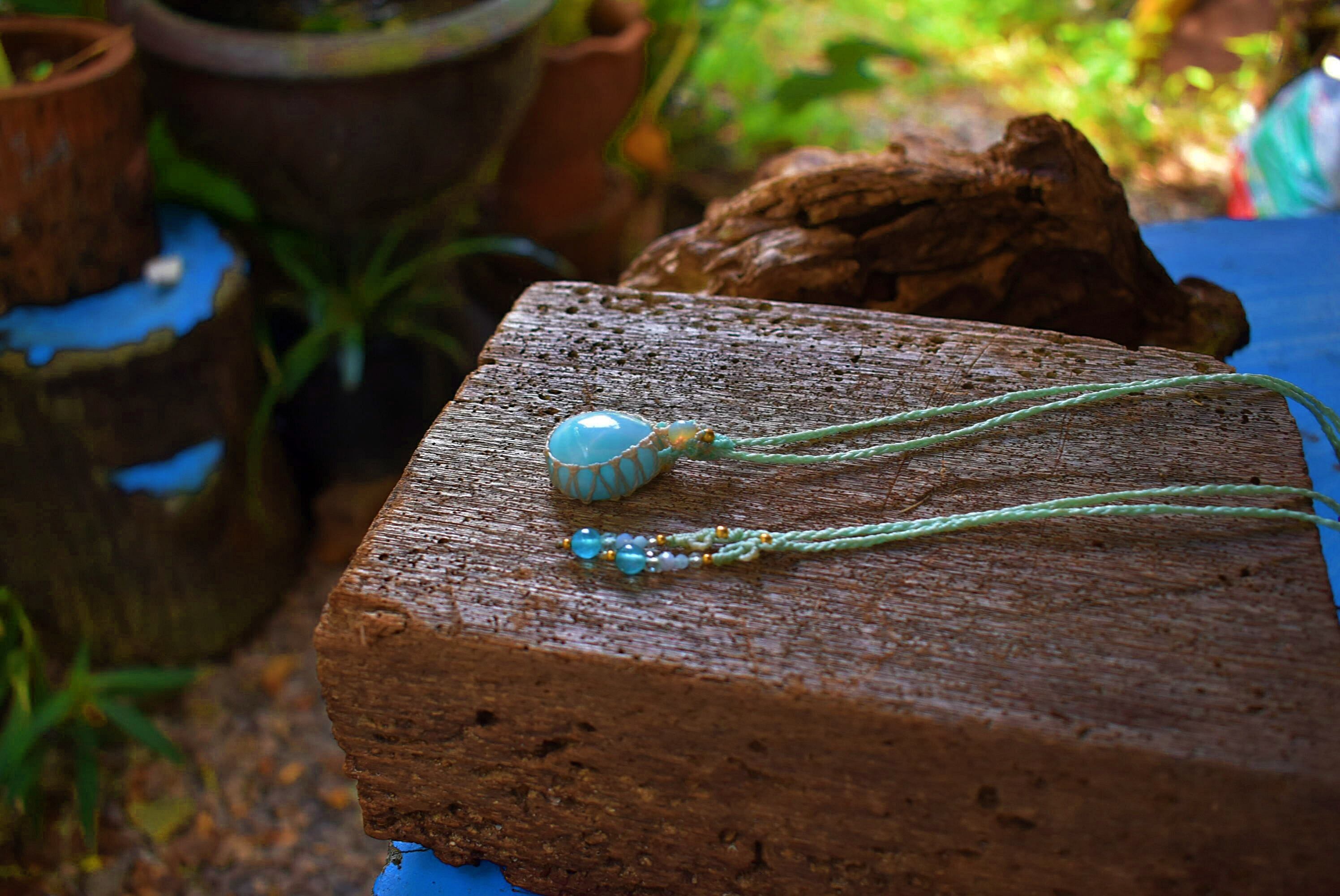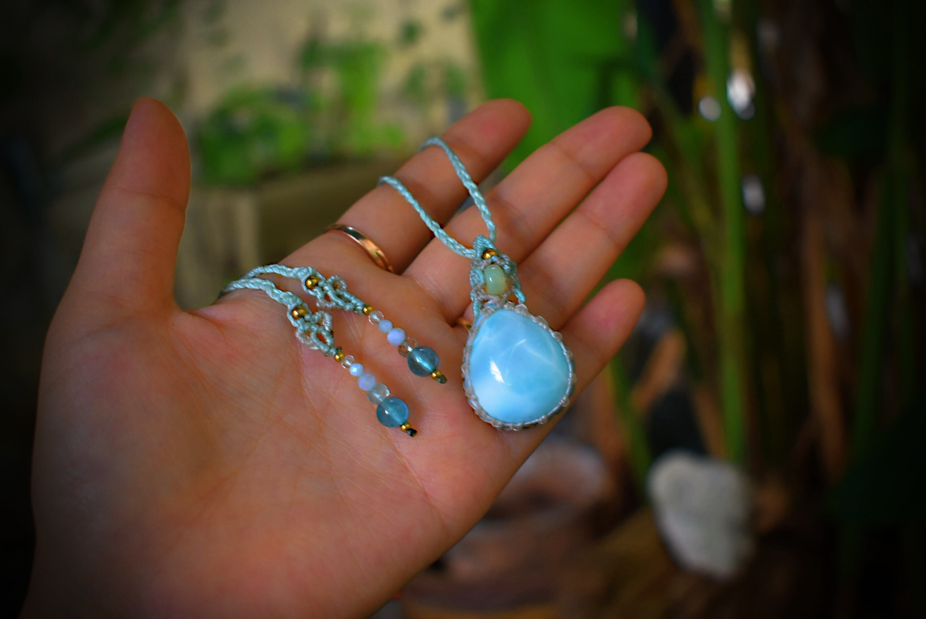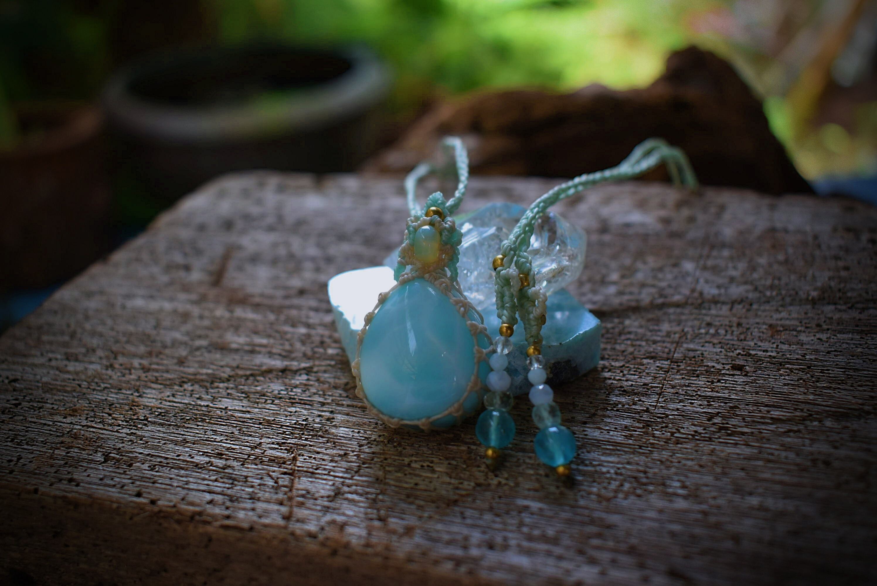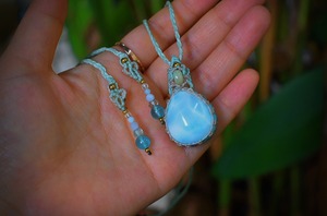 水滴の雫★エチオピアンオパール×透明感★ぷるぷるラリマーマクラメペンダント