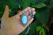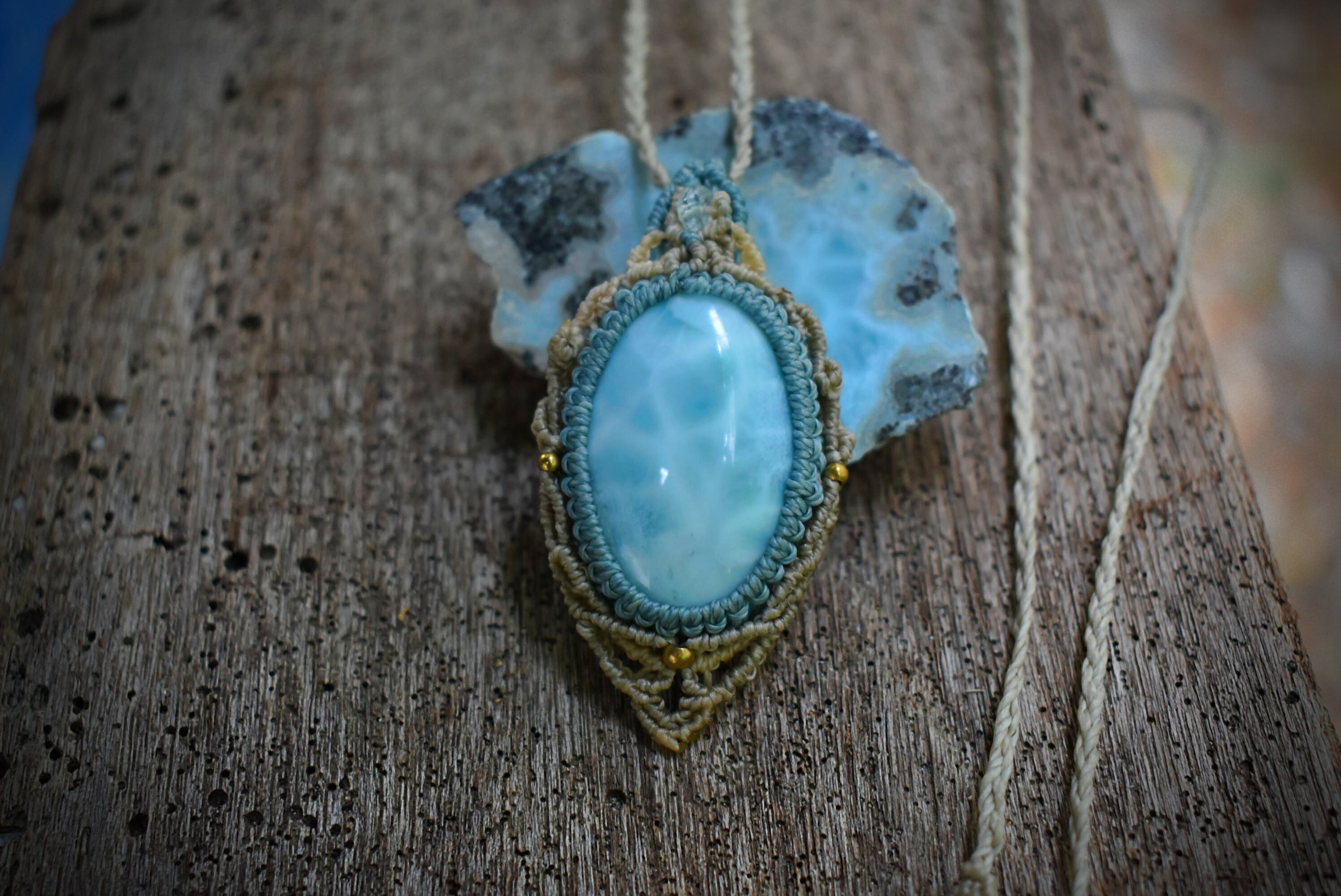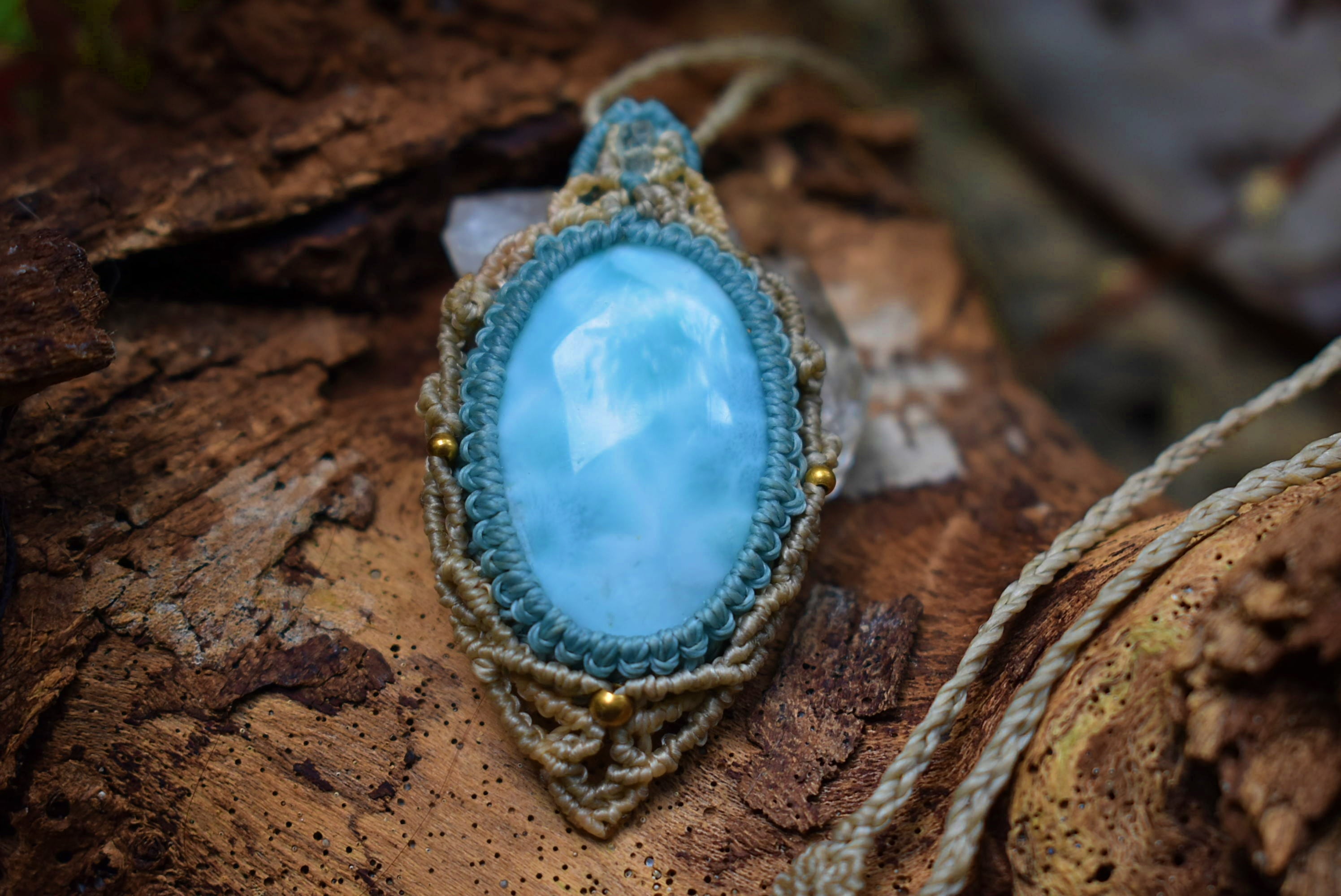 ピースのもの。石の周りを紋章をイメージしてマクラメ編み装飾を細越しました。