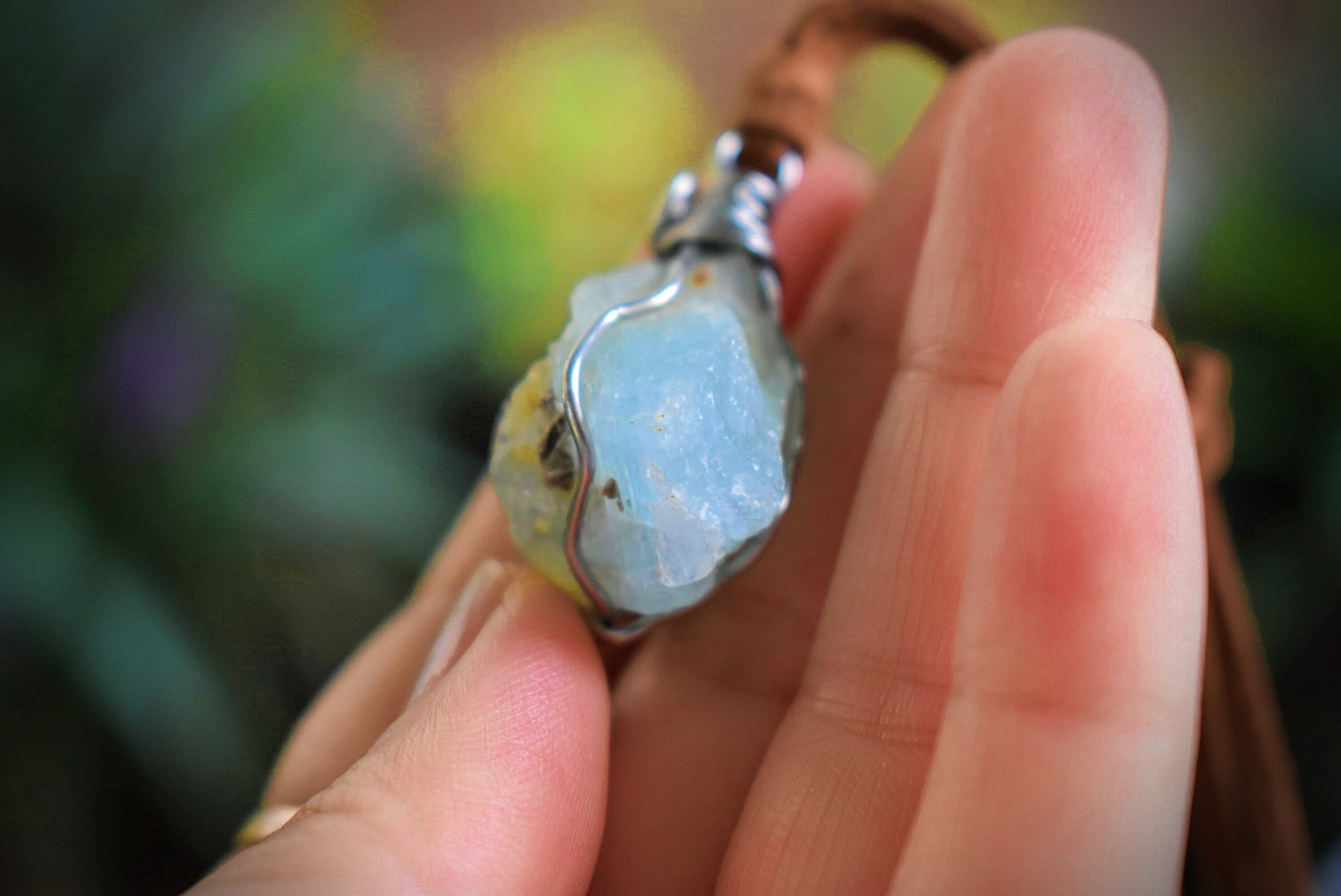 希少な虹のアクアマリン原石を胸元へ是非身につけてください。