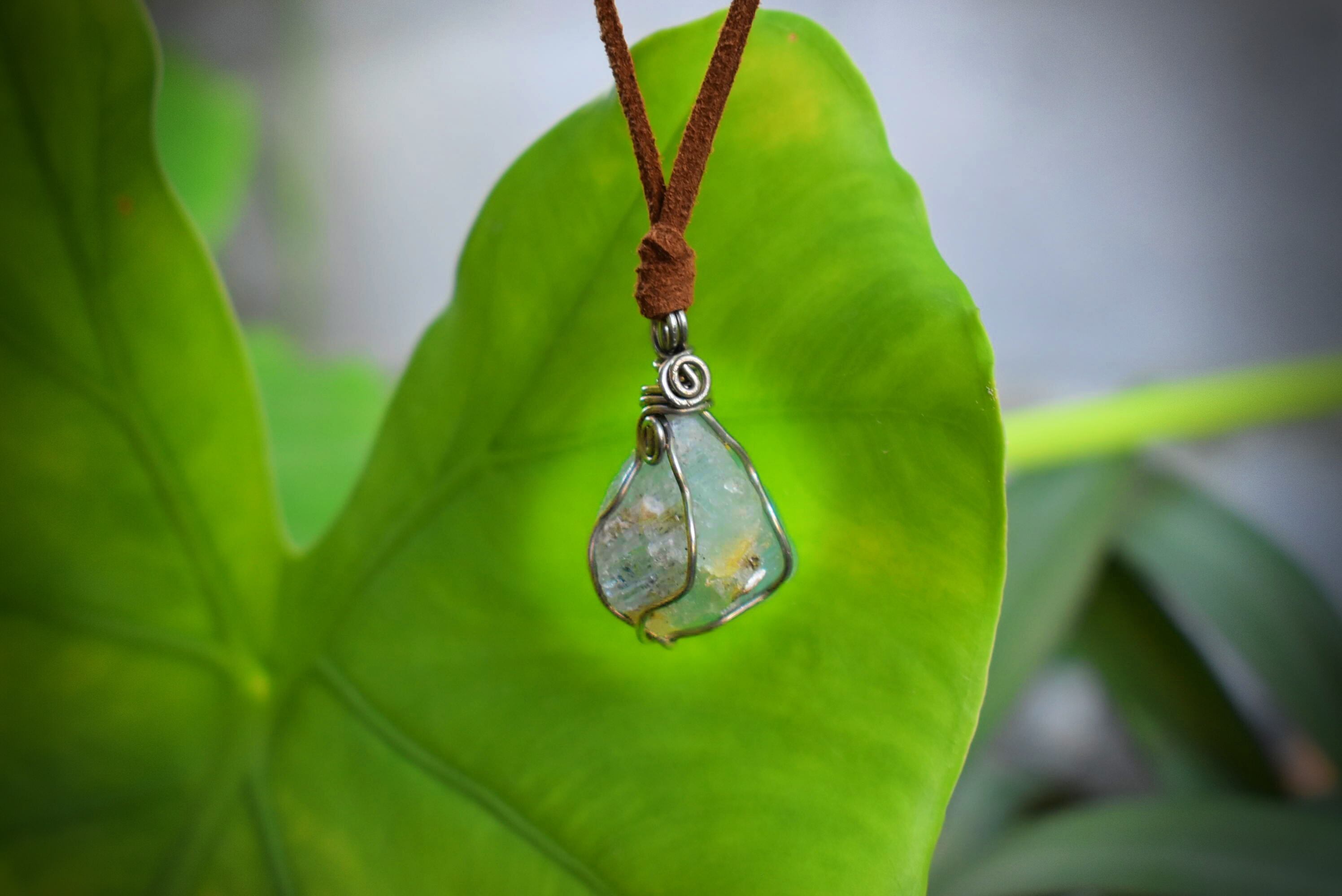 自然の原石の天然石の形をフォローしたワイヤーワークをお楽しみください。