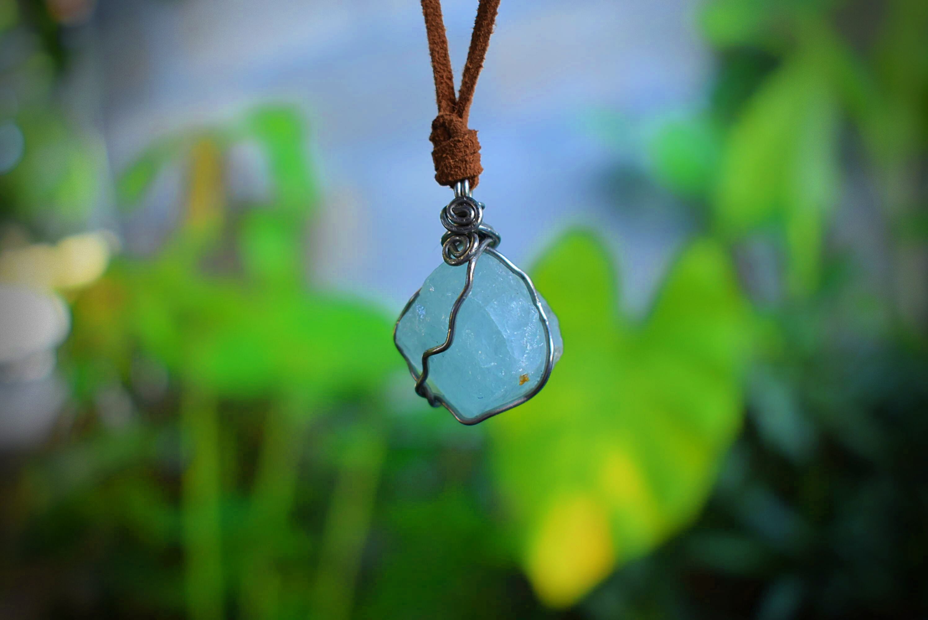 希少な虹のアクアマリン原石を胸元へ是非身につけてください。