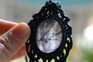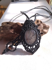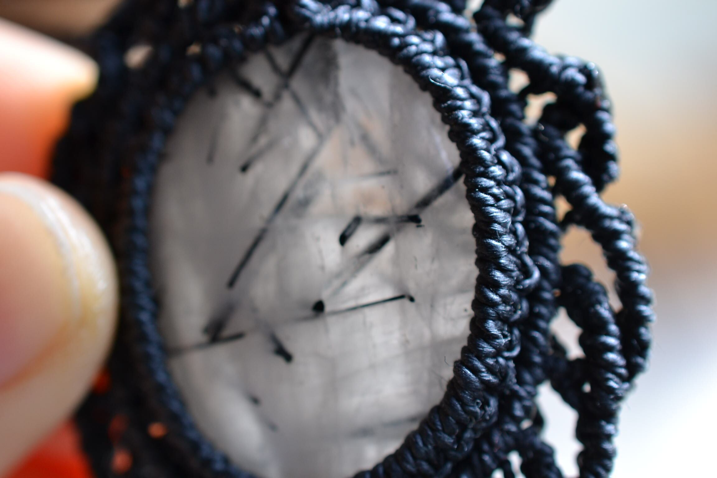 ブラックルチルインクォーツをペンダントとしてマクラメ編み装飾を施しました。