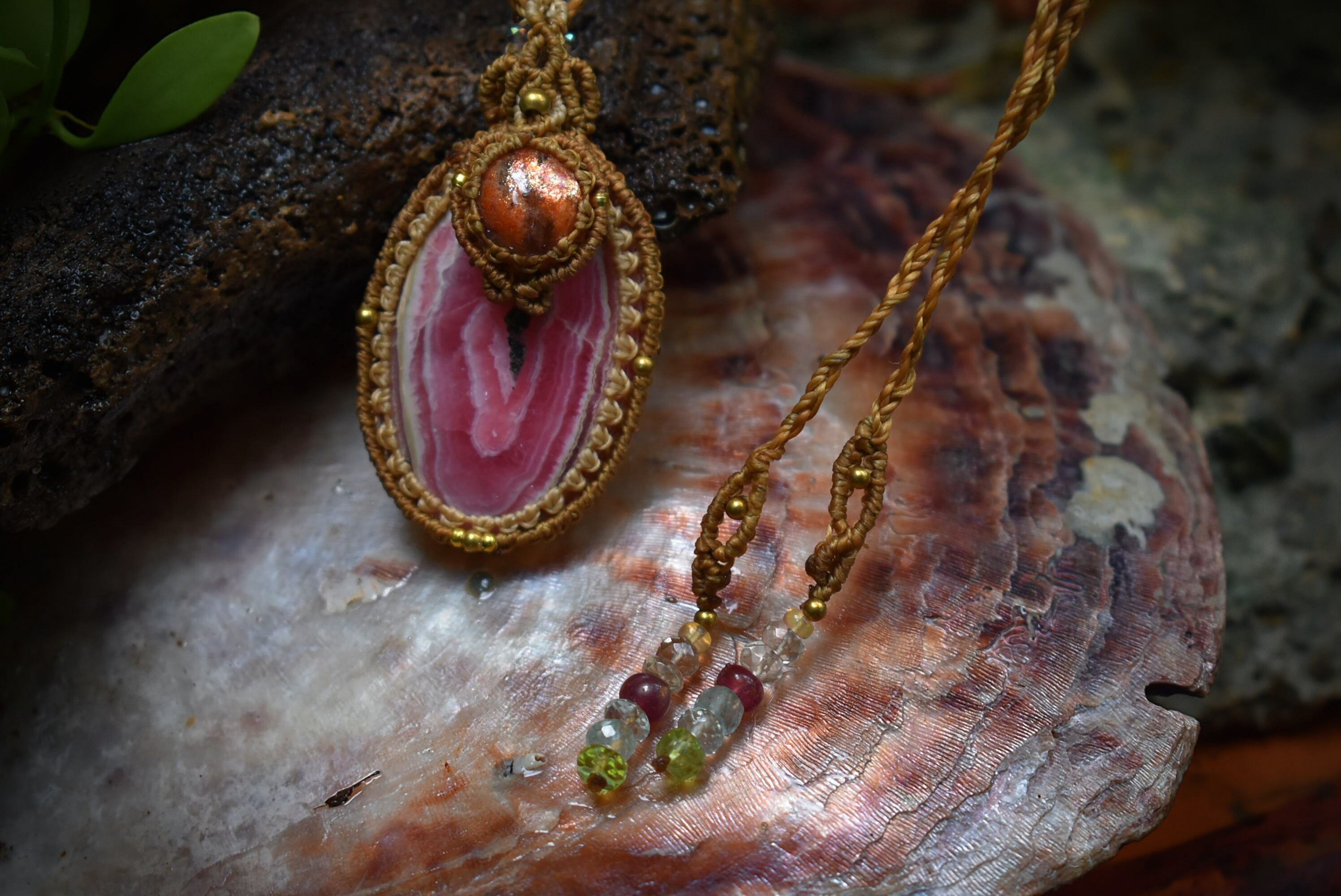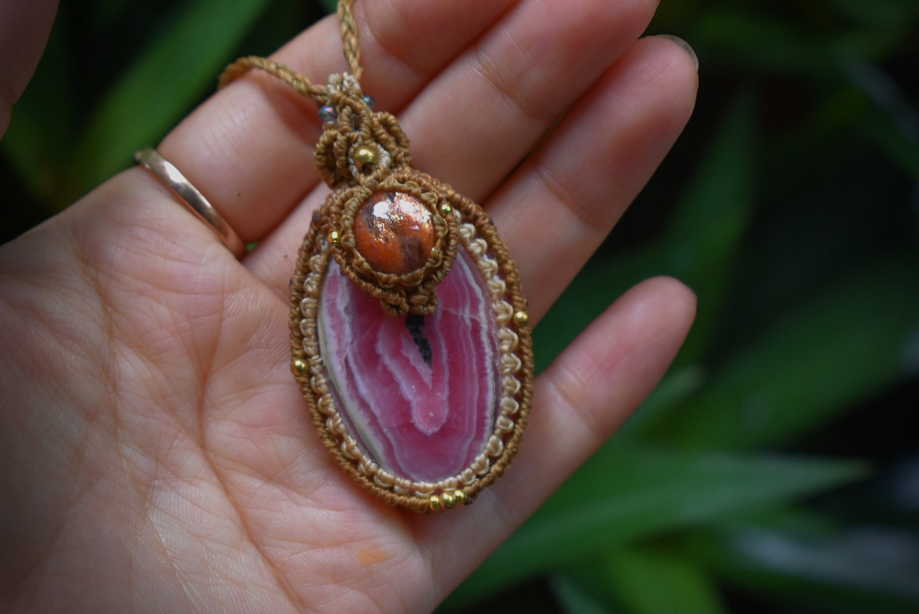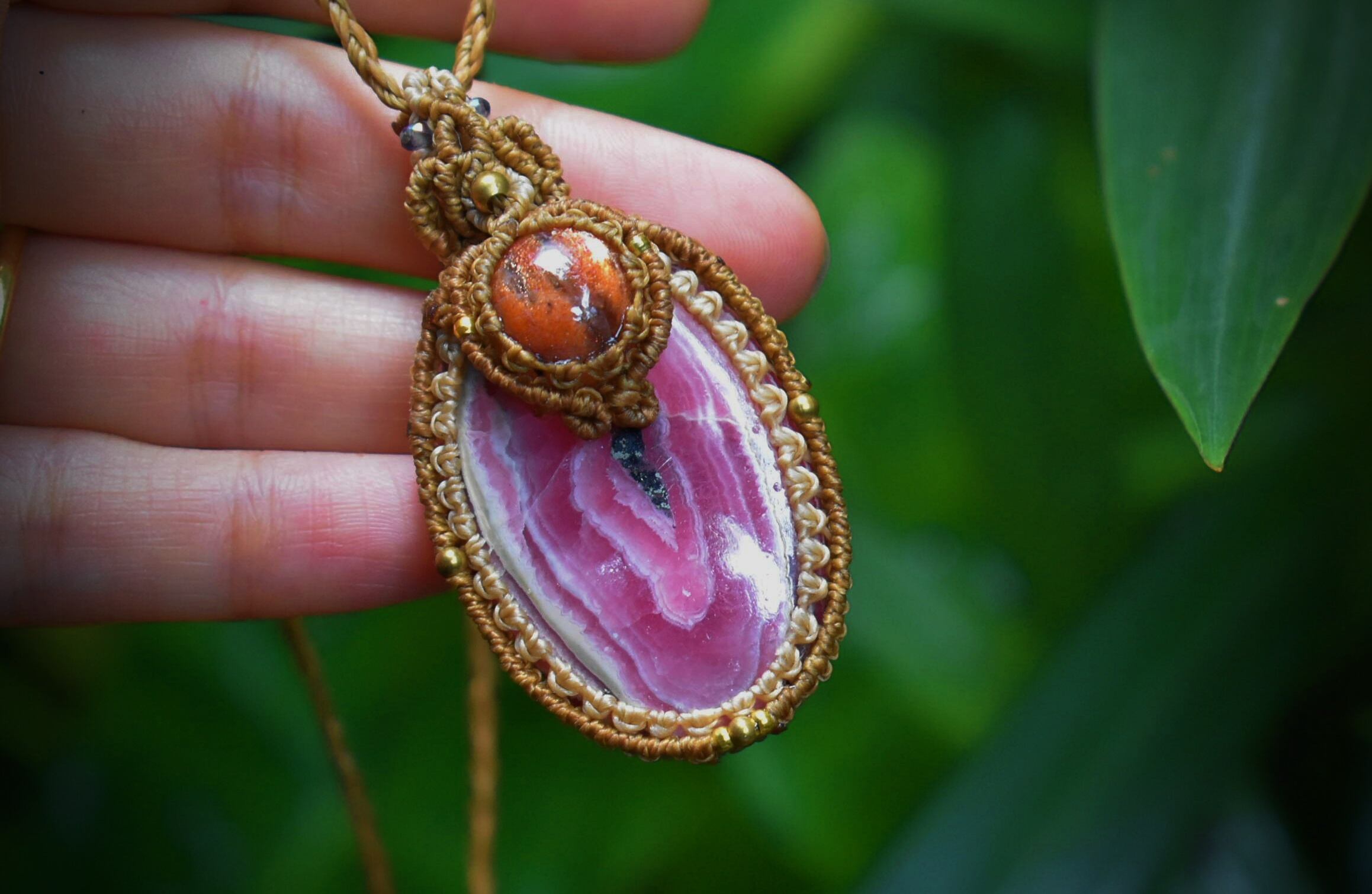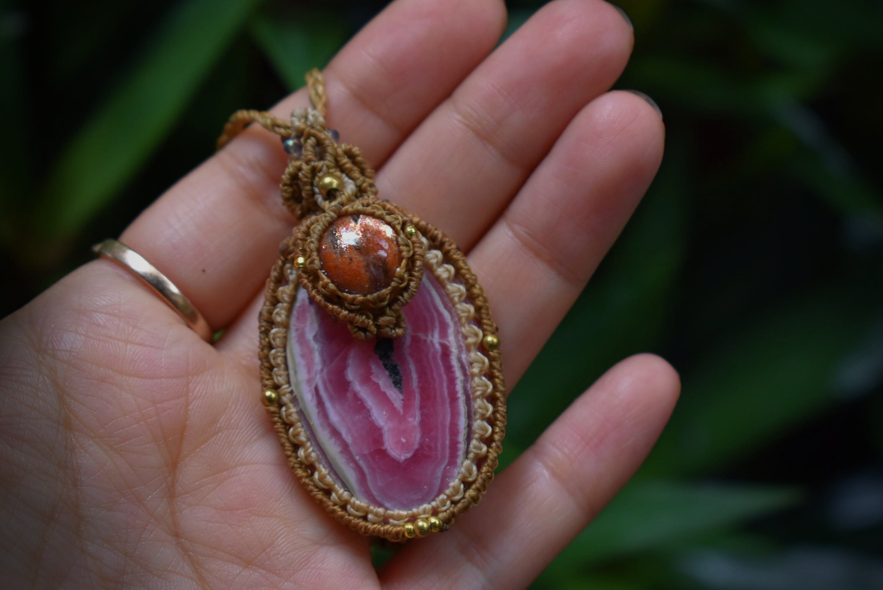 サンストーン+ロードクロサイト マクラメペンダントsun002