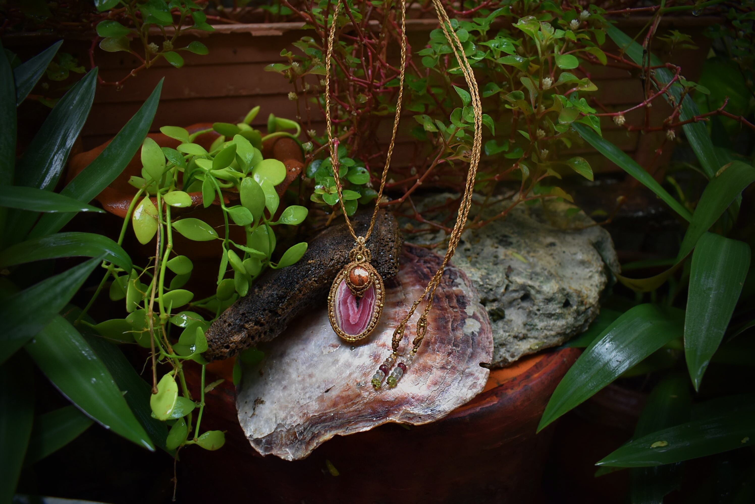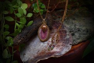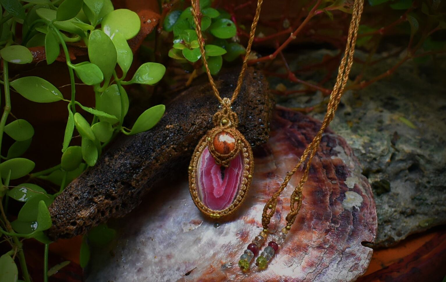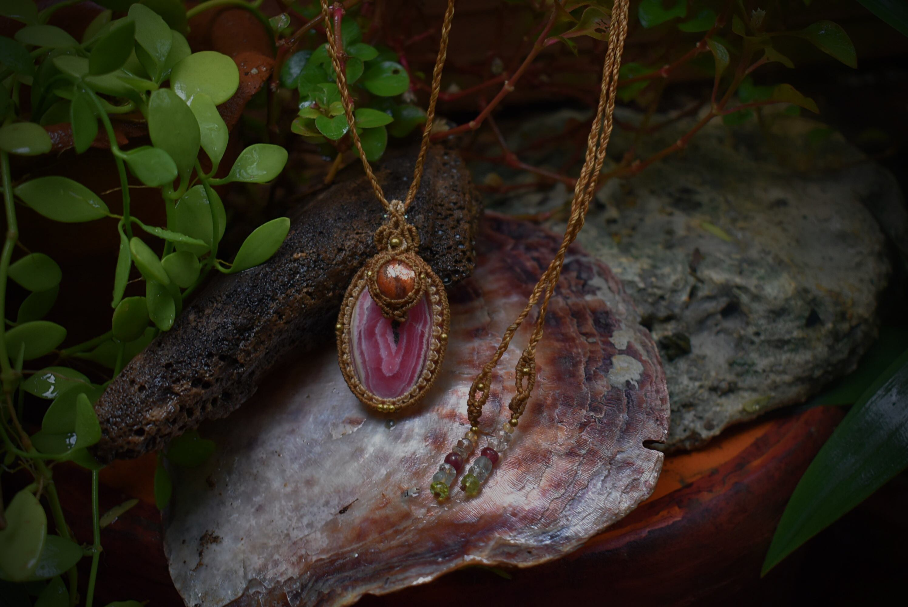 サンストーン+ロードクロサイト マクラメペンダントsun002