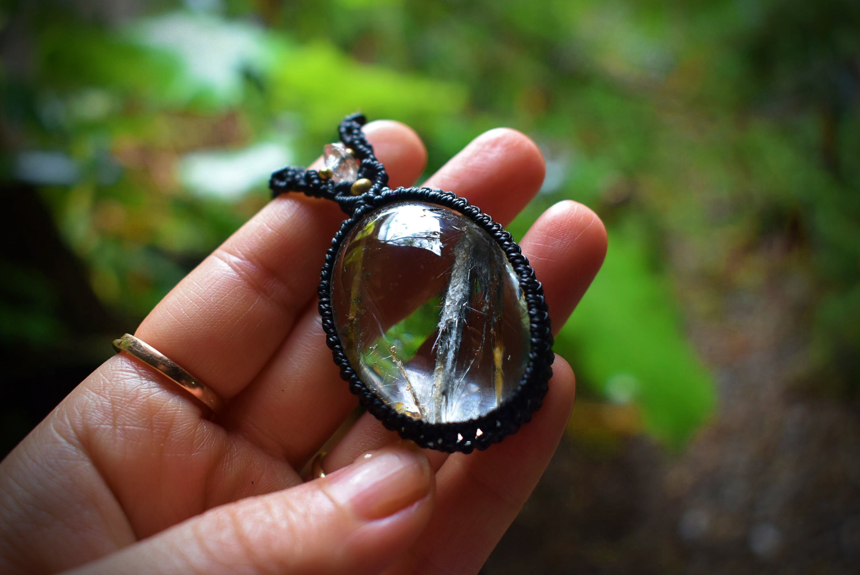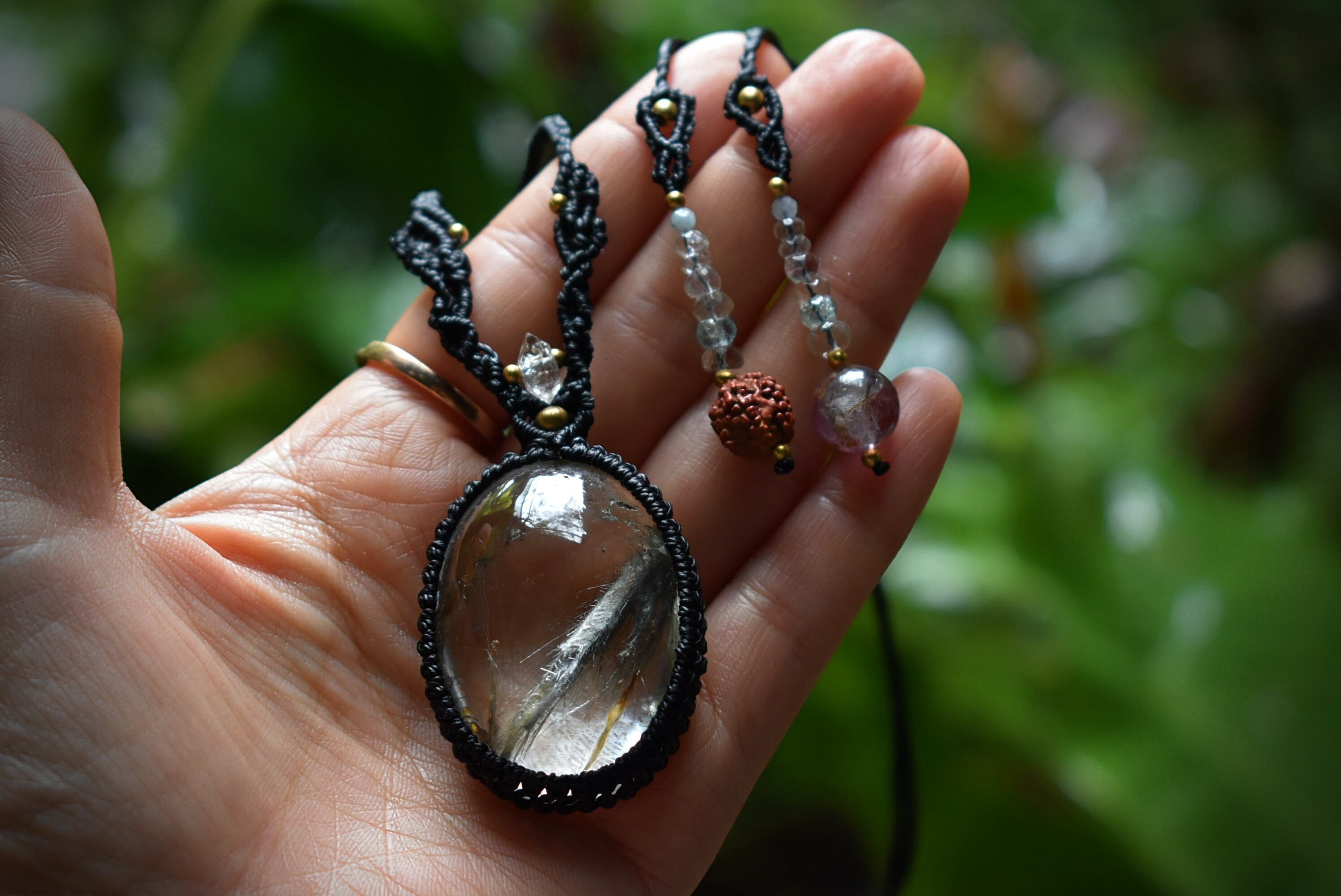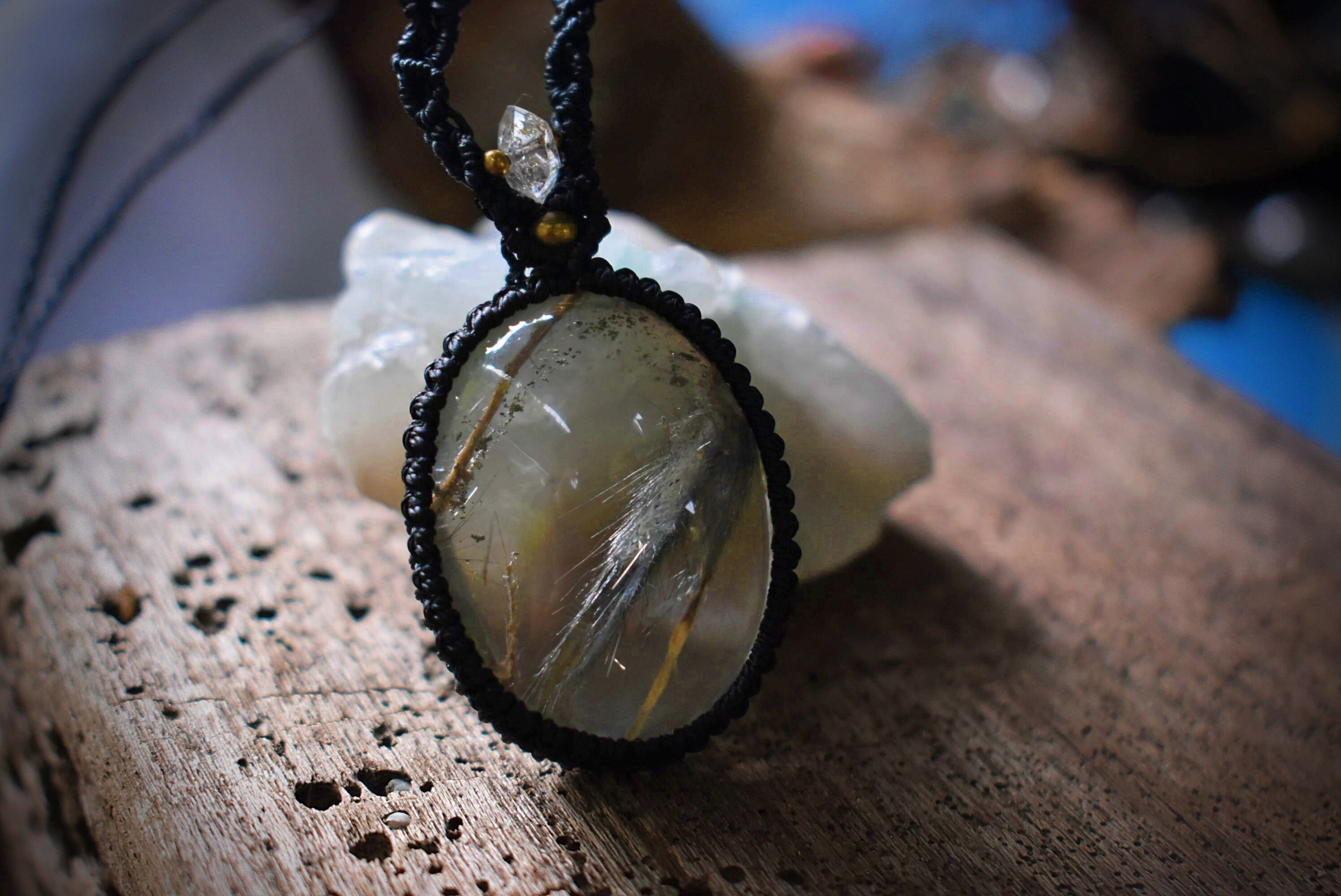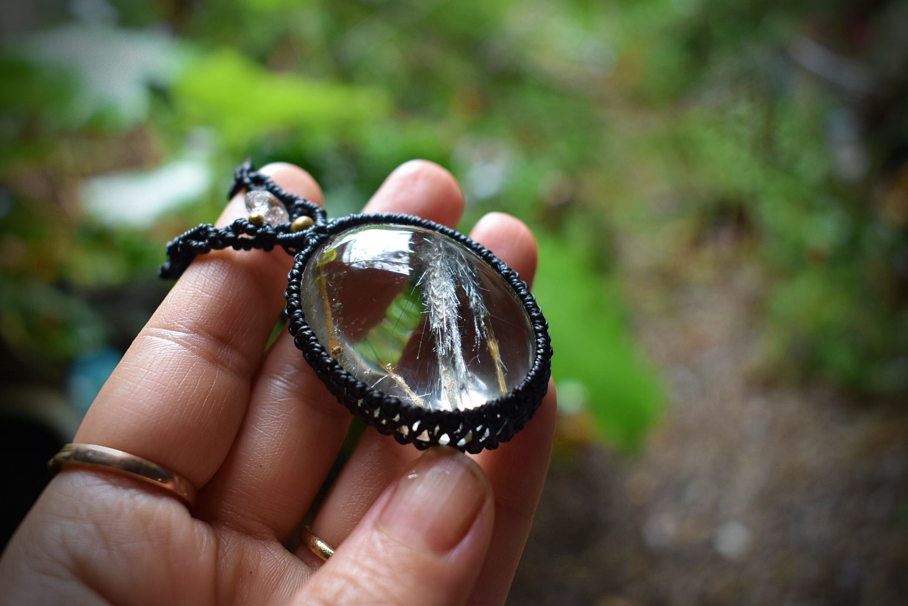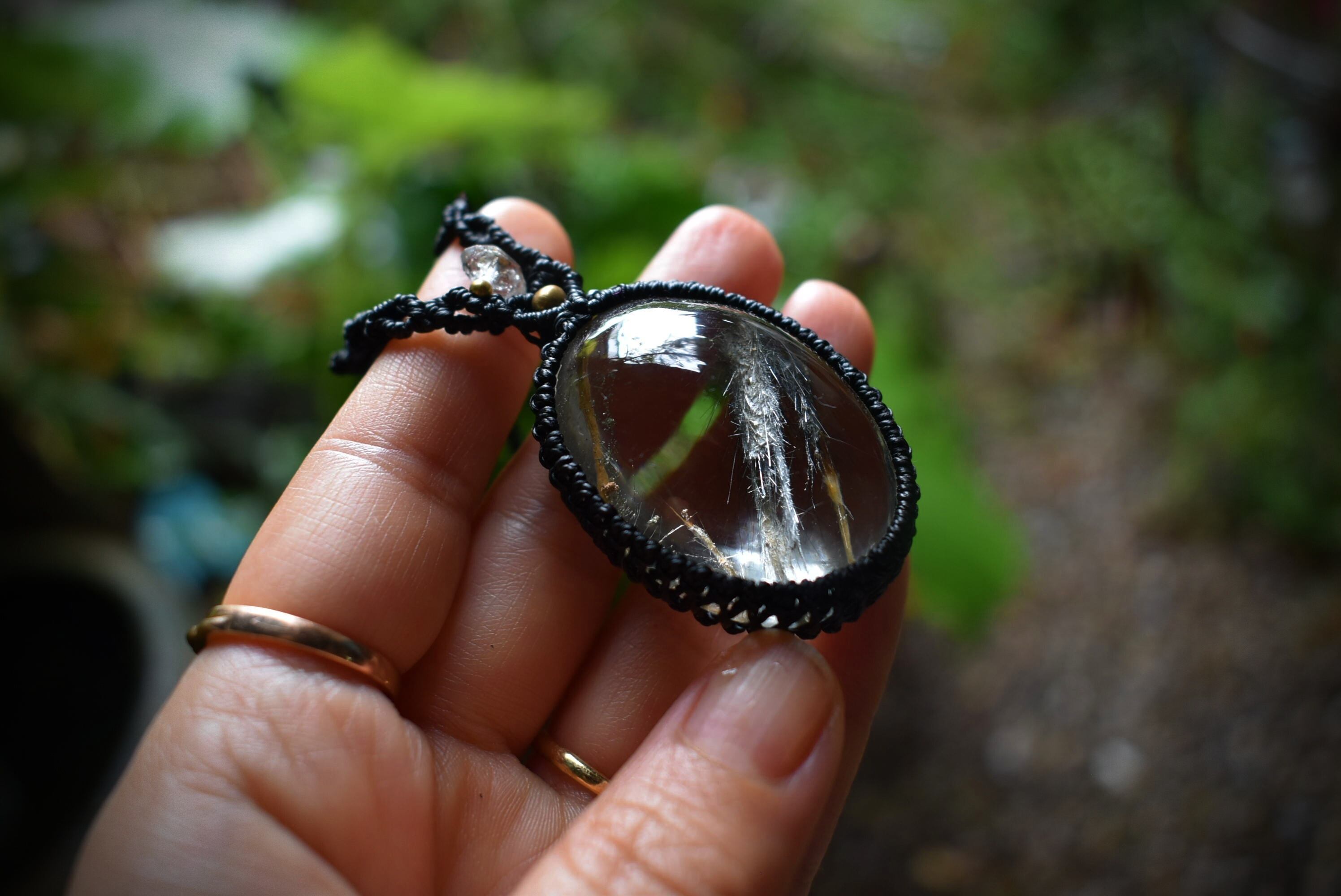 希少★幻の色★プラチナルチルクォーツ★マクラメペンダントgarm026