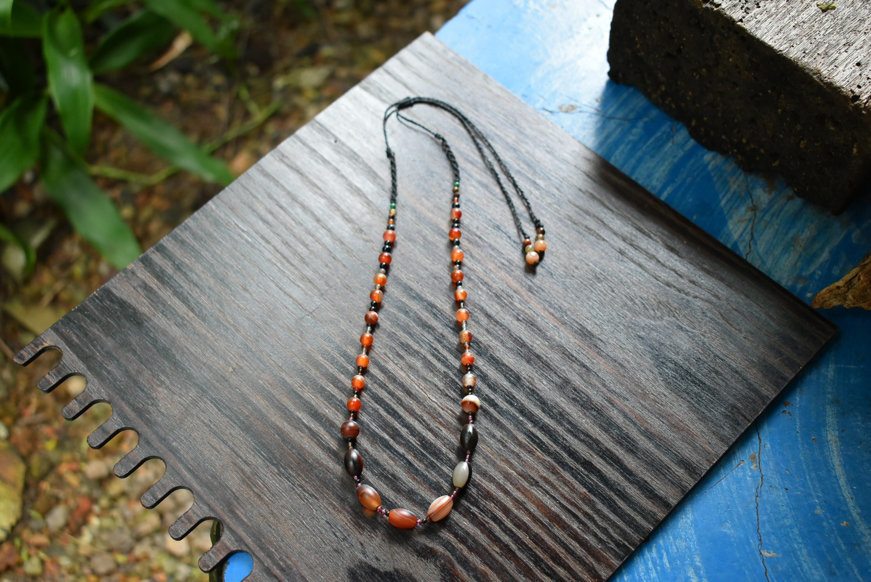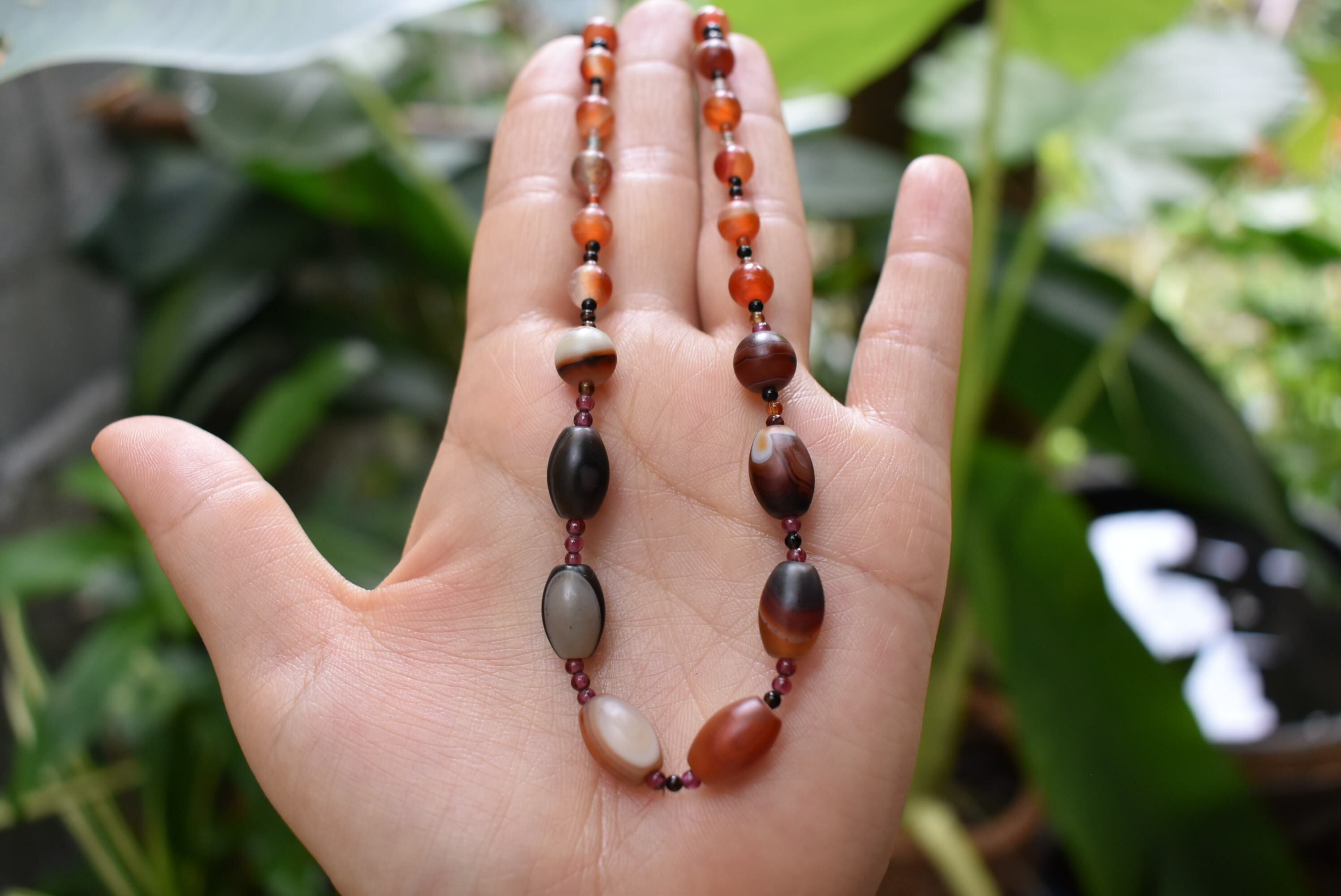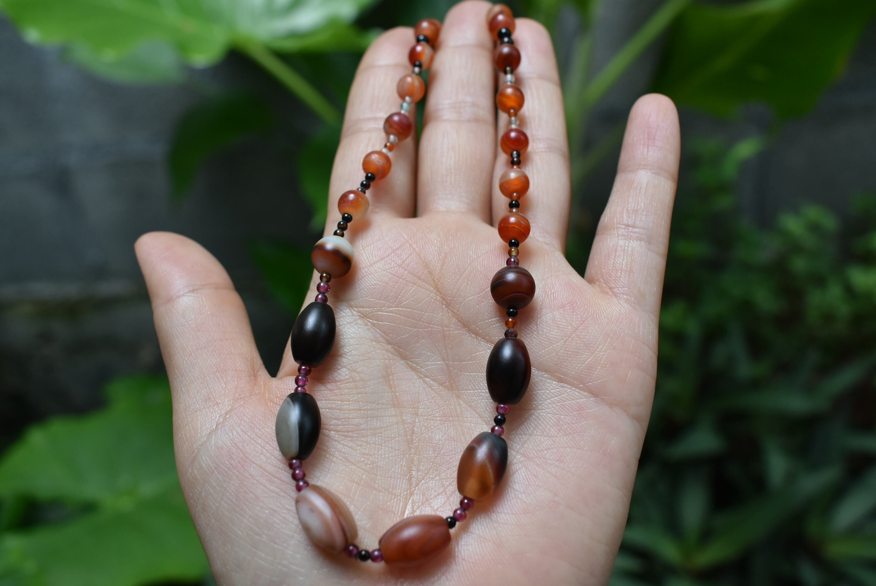 炎の色★アンティークカラーアゲートビーズネックレスbn019