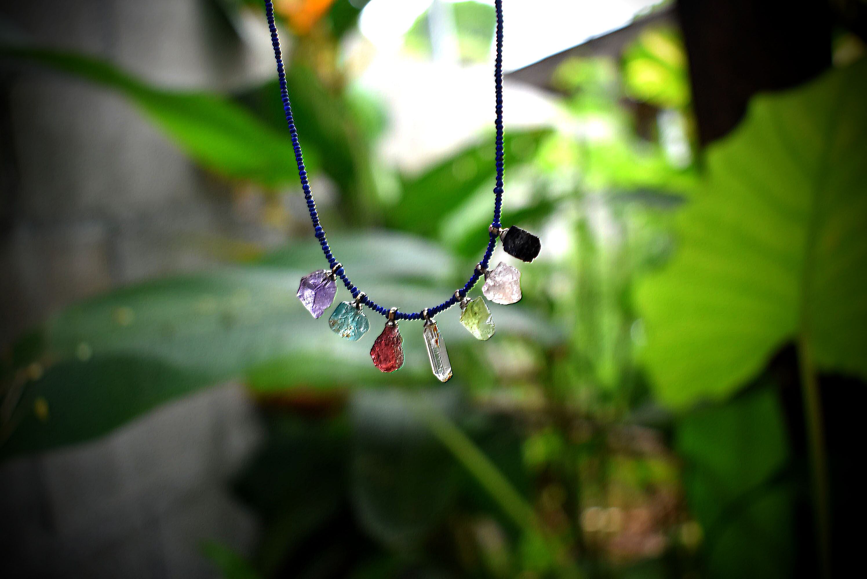 体と共鳴すると言われている7チャクラ称して原石を組み合わせて使用、制作したネックレス。