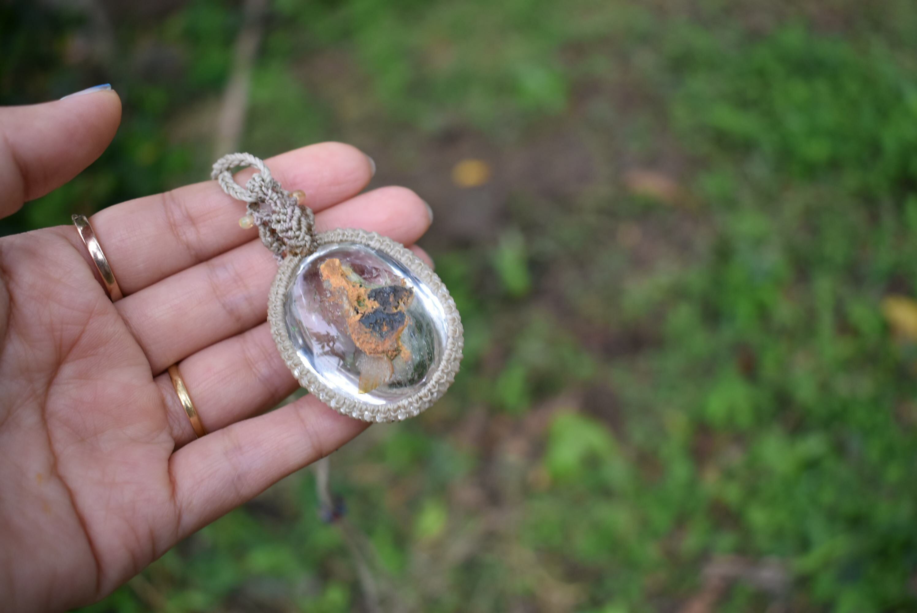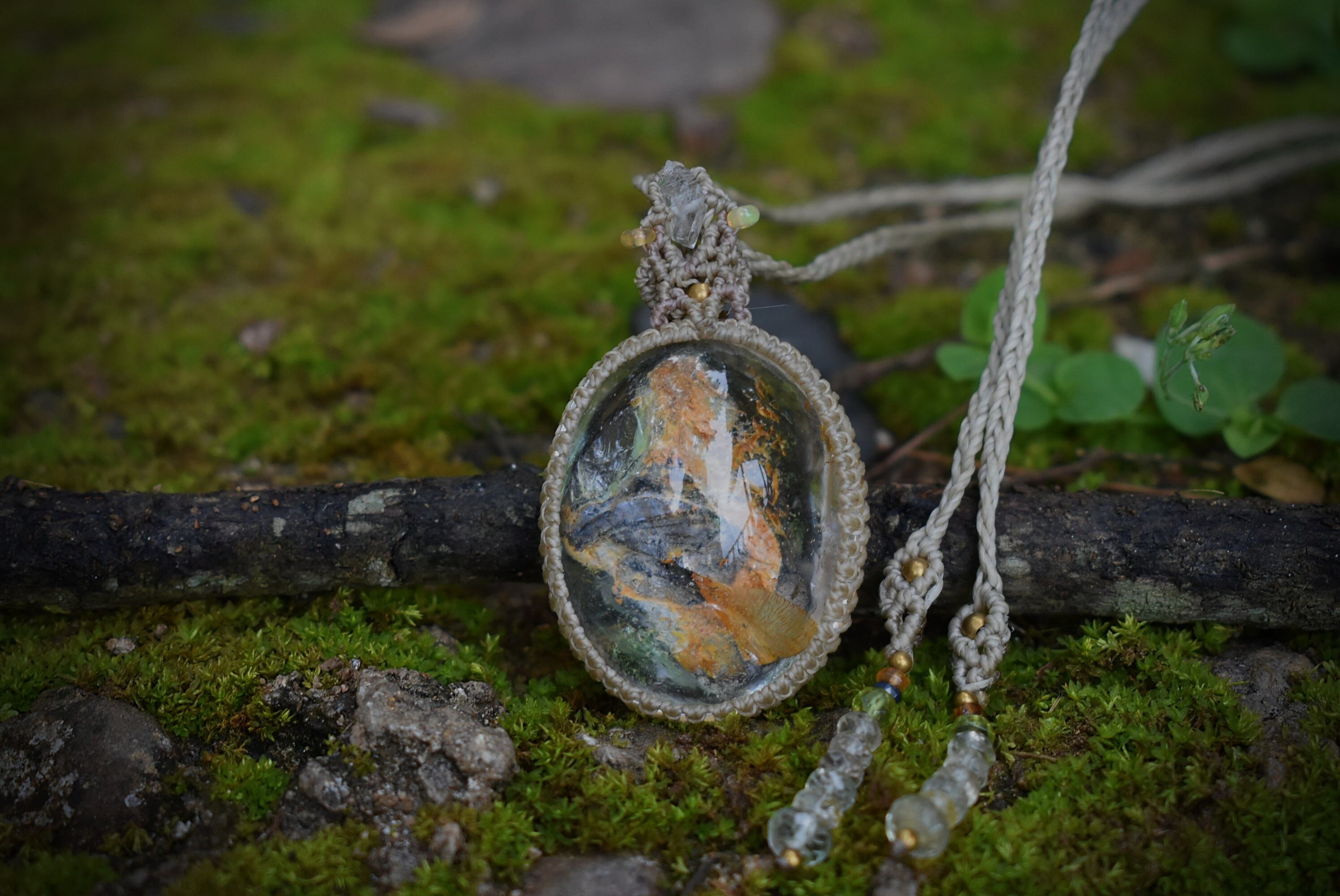 水晶の中の奇跡の鉱物★クォーツインクォーツ マクラメペンダントgarm044