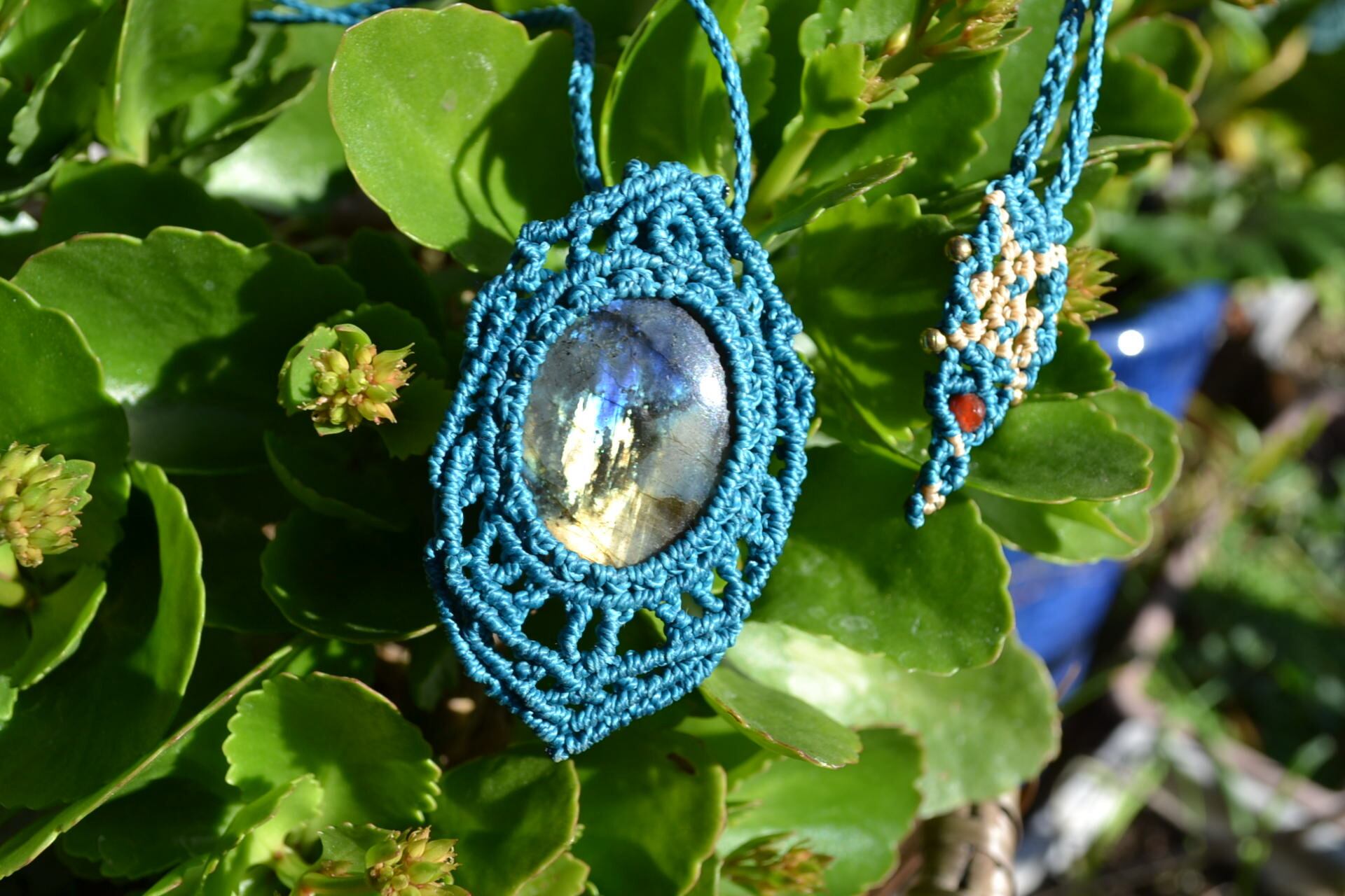 イエローブルー★ラブラドライト マクラメペンダントネックレスlabb011