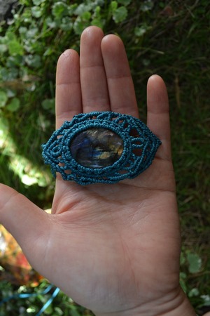 二つの色が混じり合い調和が織りなすこちらの美しい石をクラシックなイメージでマクラメ編み装飾を施しペンダントができました。