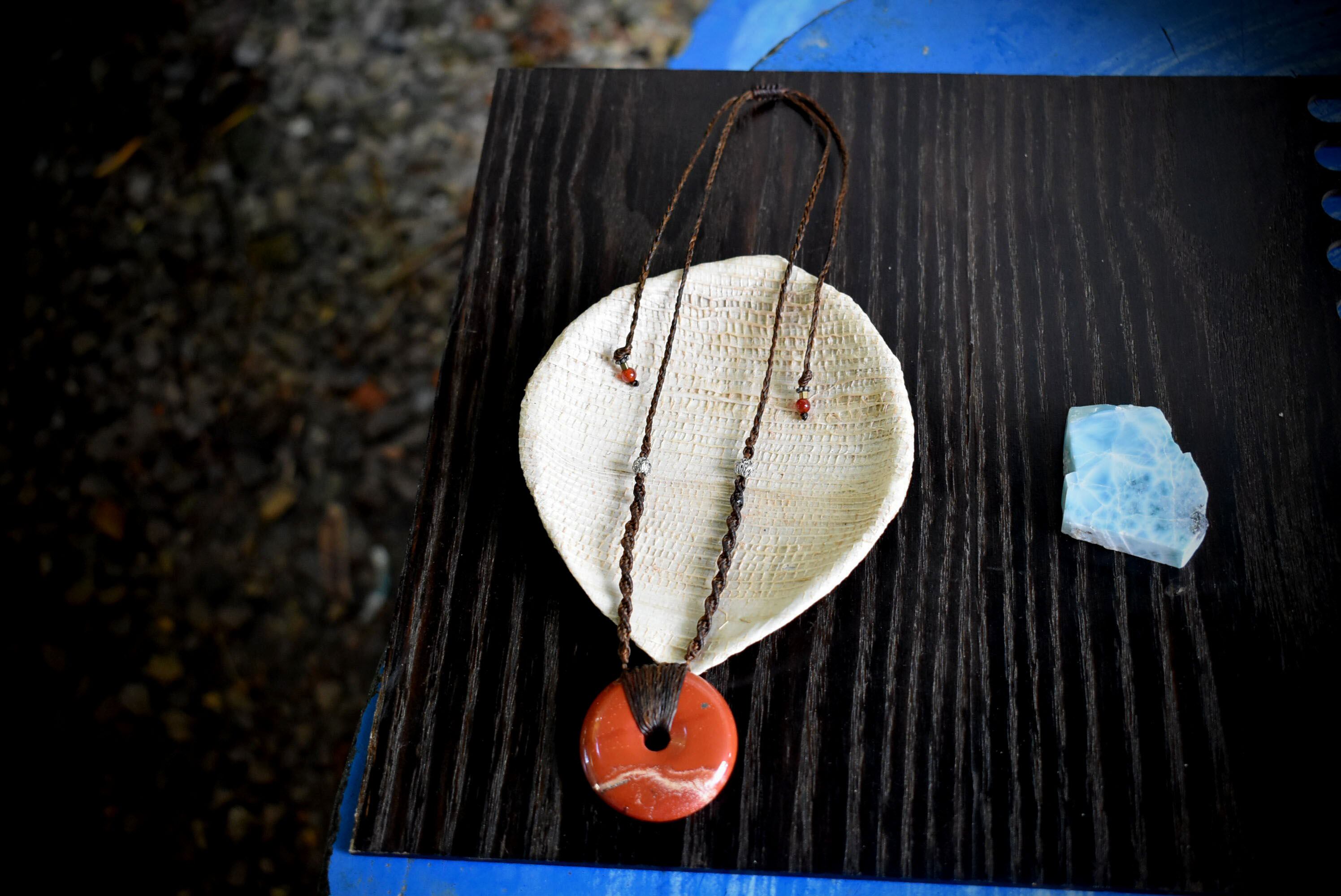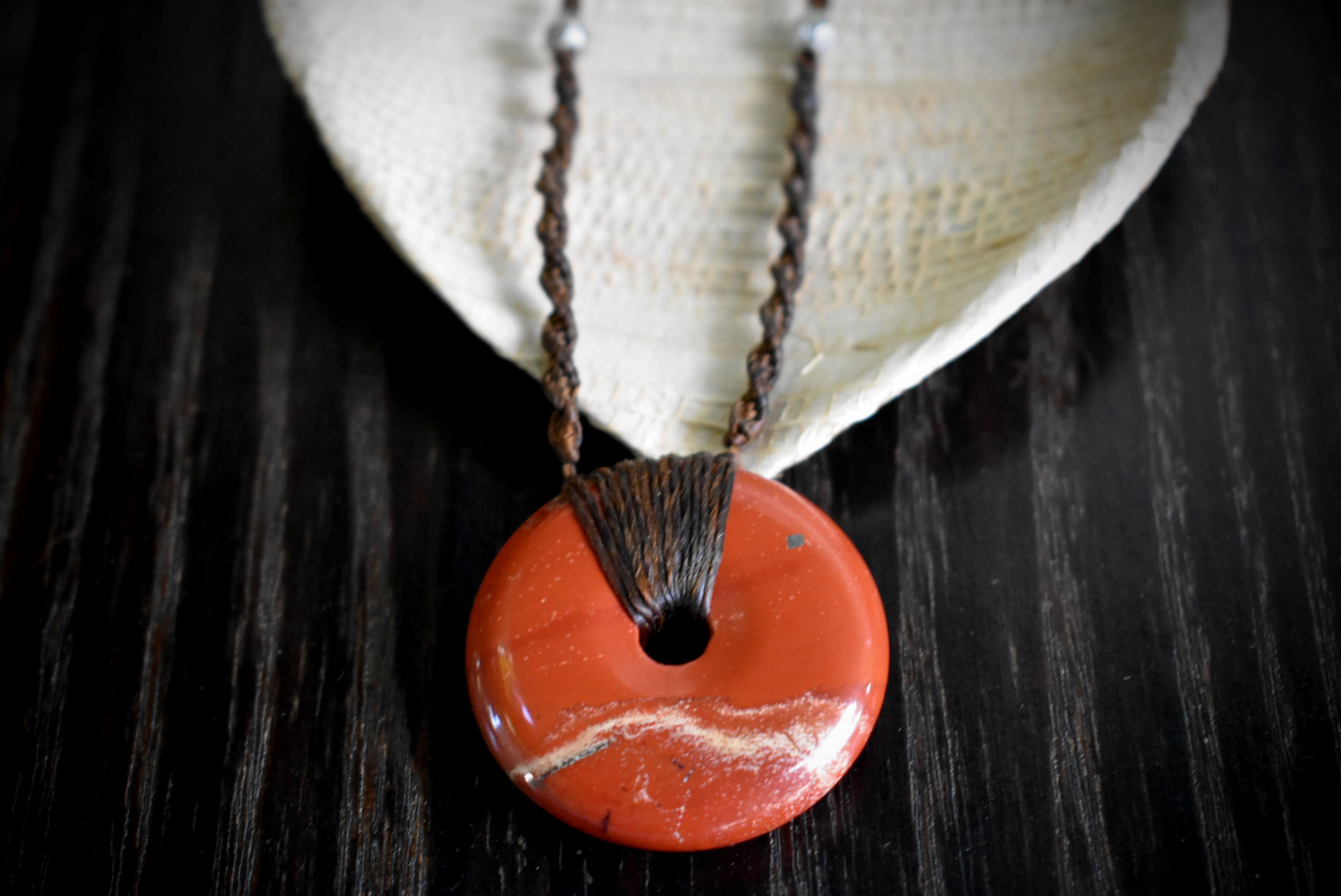 ドーナツ★レッドジャスパー★マクラメペンダントネックレス