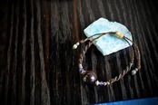 天然石レッドタイガーアイ、アメジスト、真鍮ビーズを組み合わせたブレスレットを制作しました。