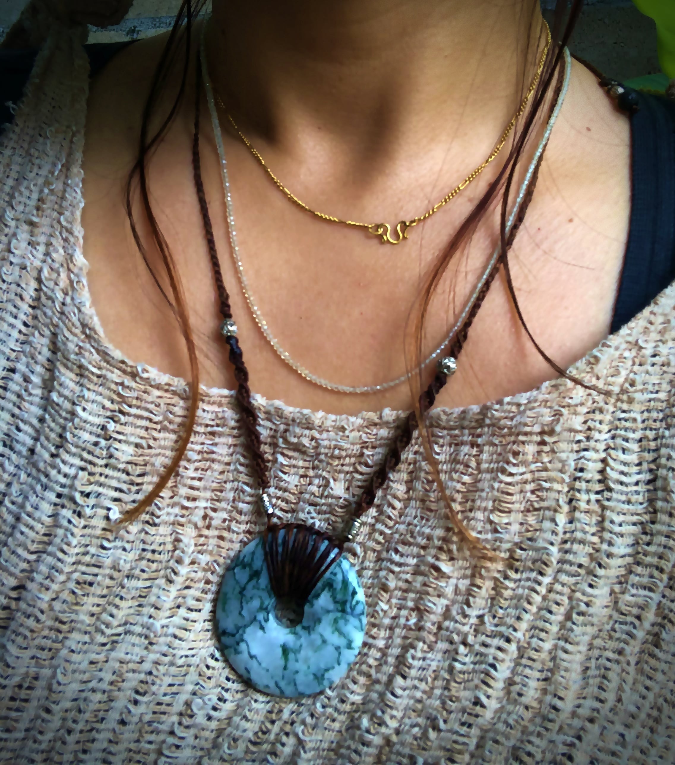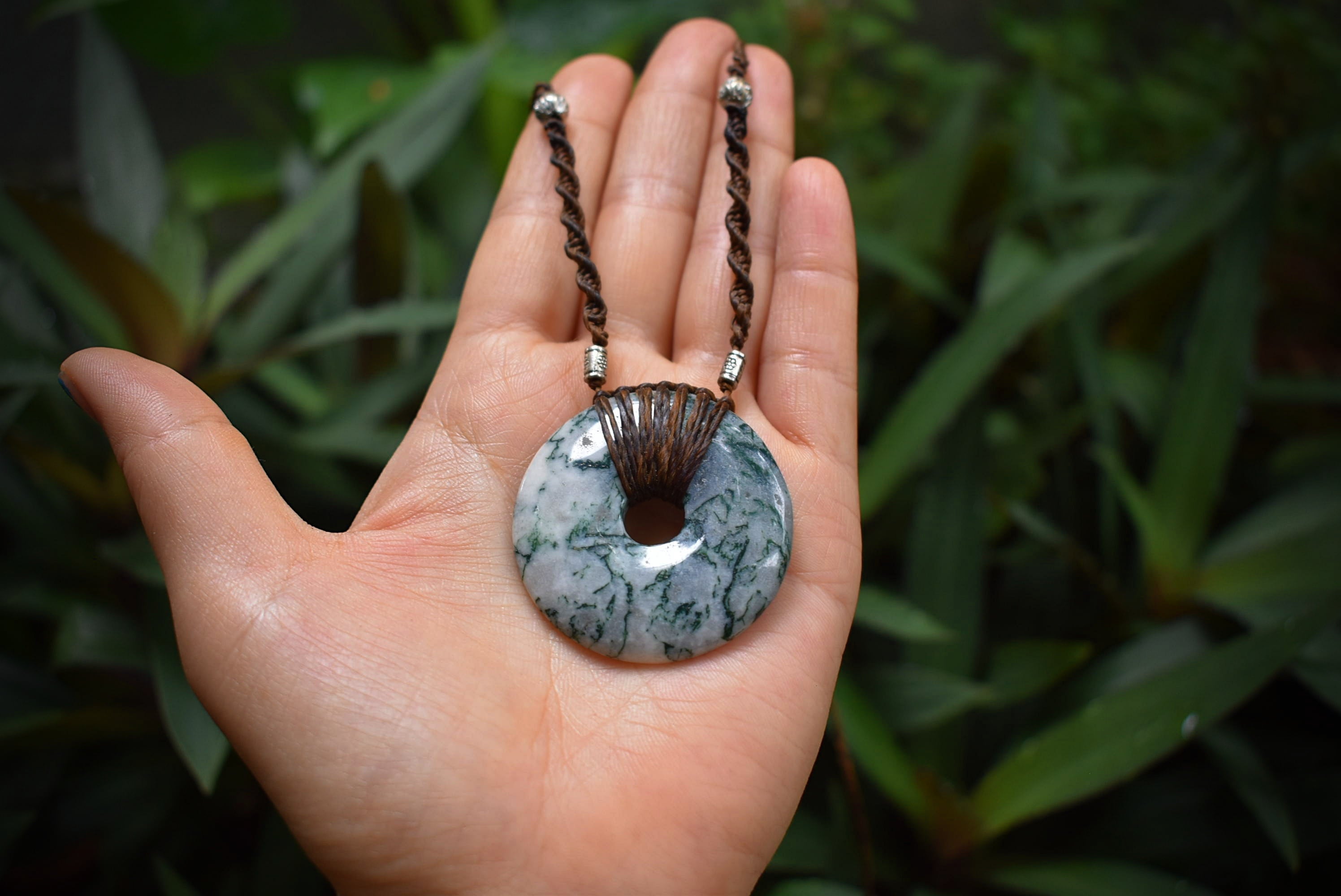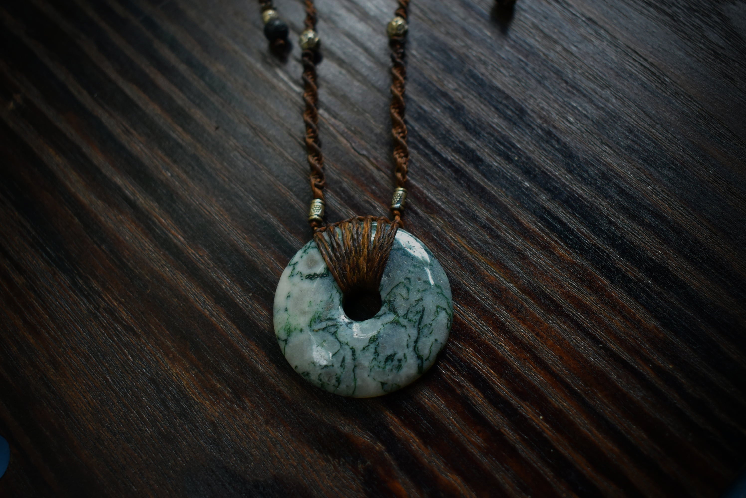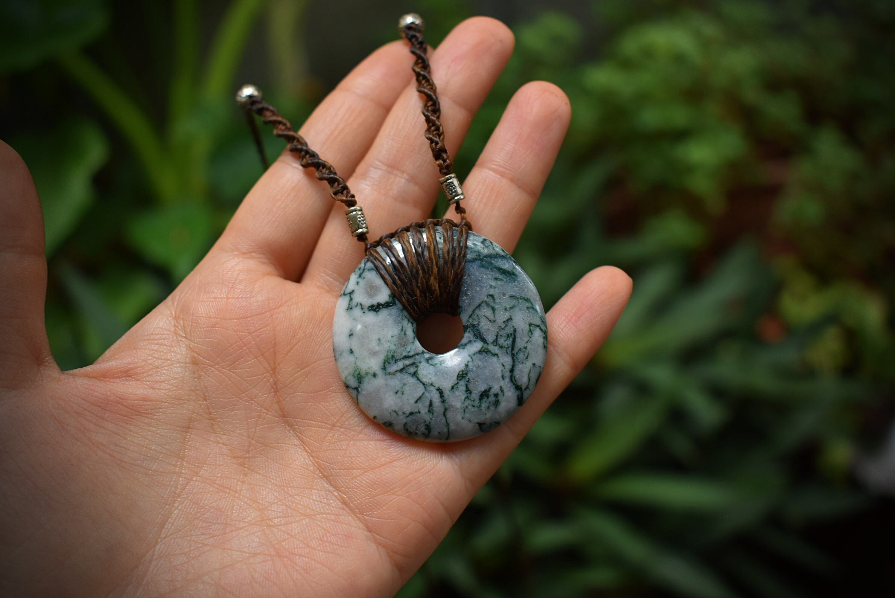 ドーナツ★ツリーアゲート★ マクラメペンダントネックレス