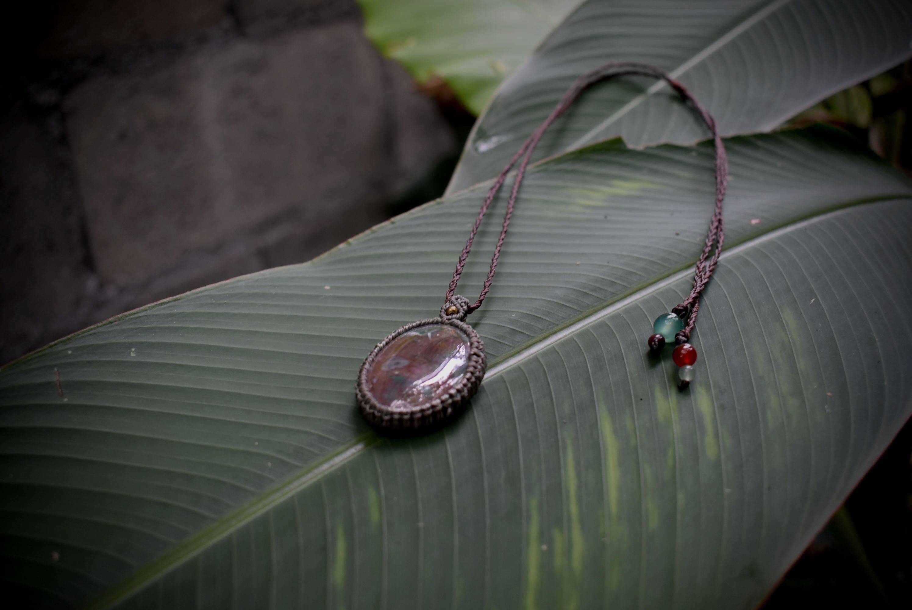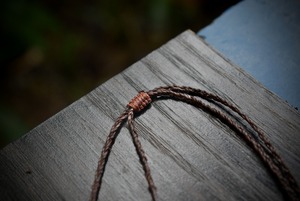 ◆このたびはレッドブラウン、ピンクブラウンの2色の蝋引き糸を使用しマクラメ編み装飾を施しました。
